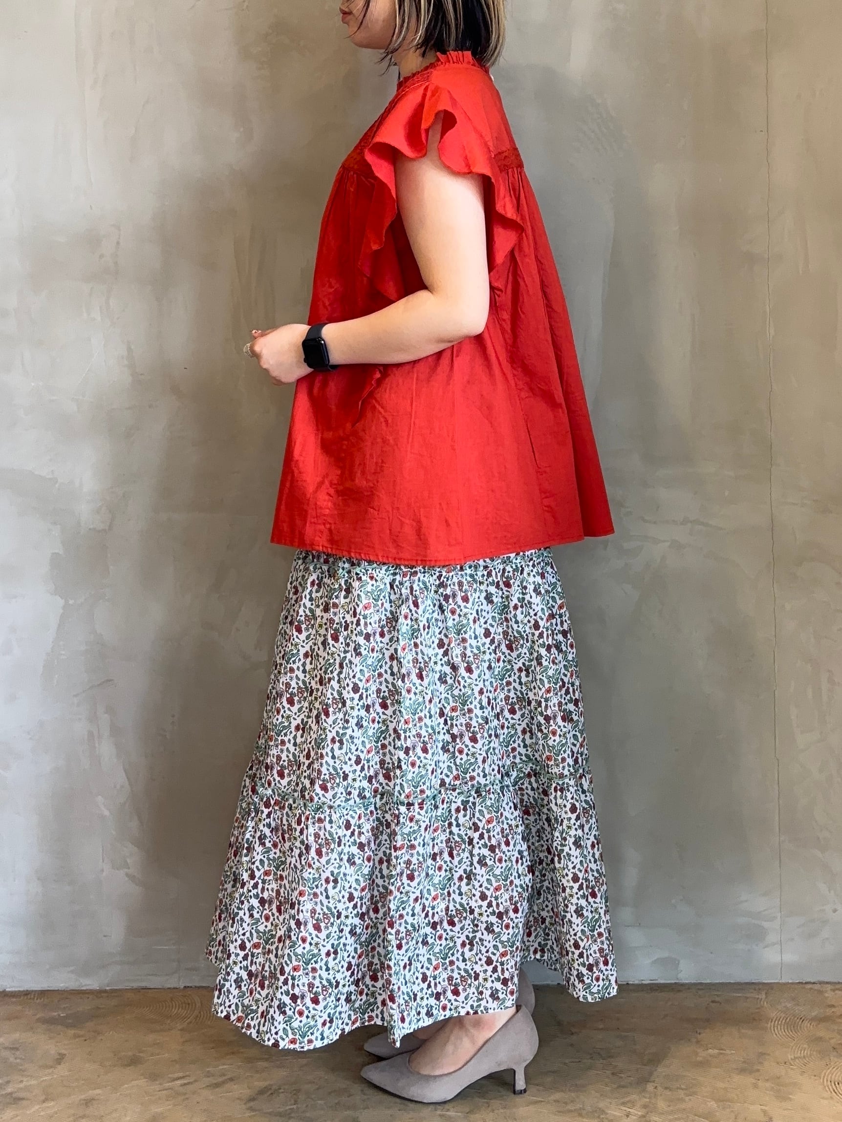 袖口のフリルは甘すぎず、程よく二の腕もカバーしてくれてすっきり見えます。