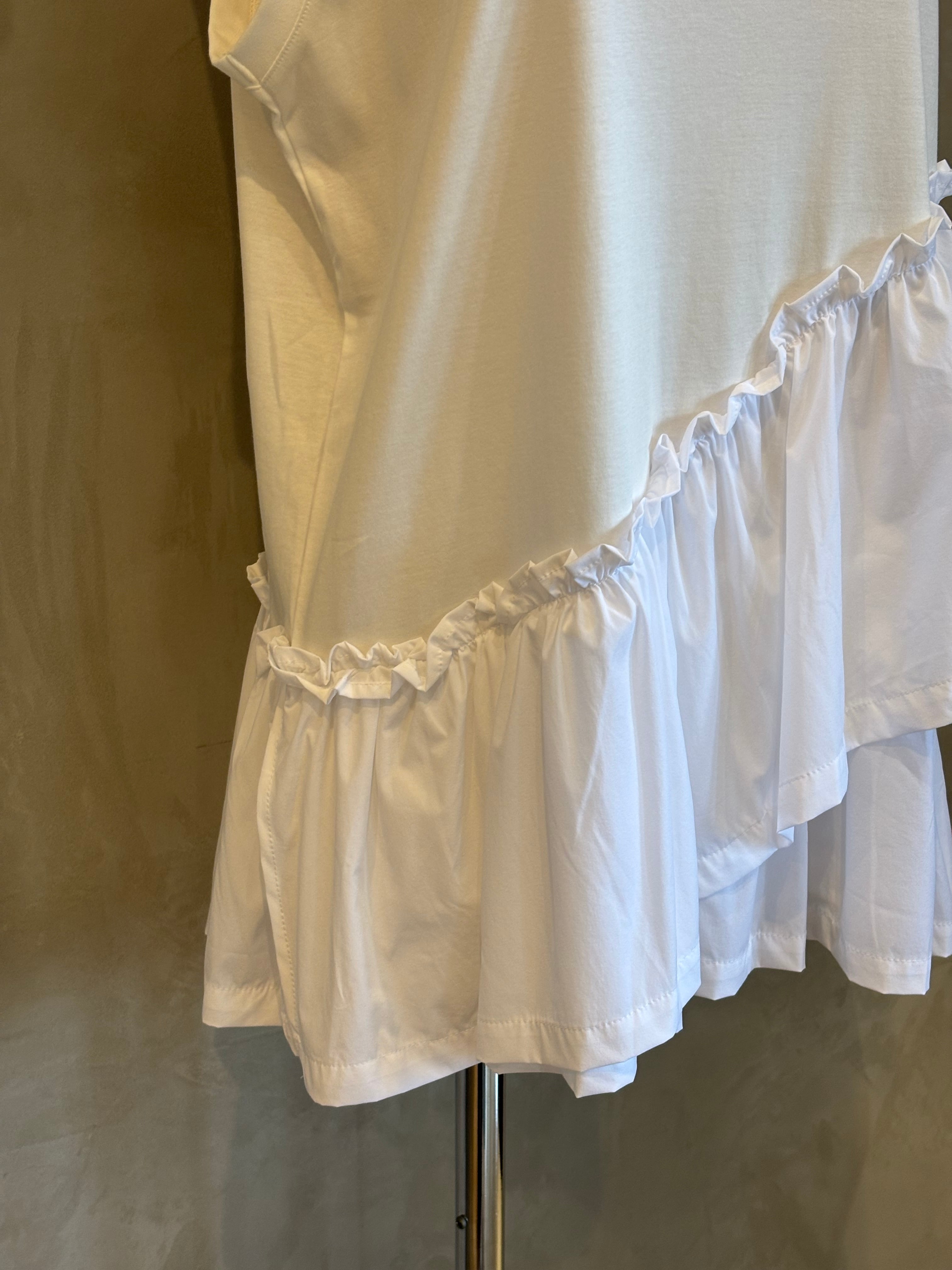 上に一枚羽織り、裾のフリル部分を出してレイヤードコーデを楽しむのも素敵です。