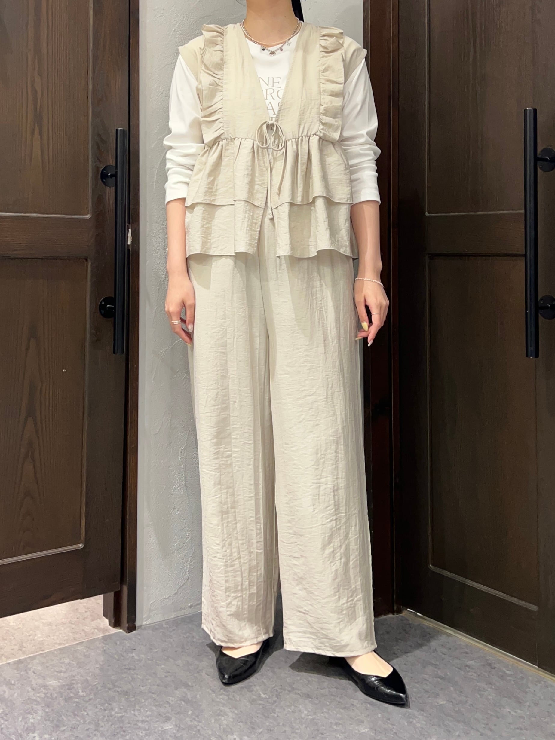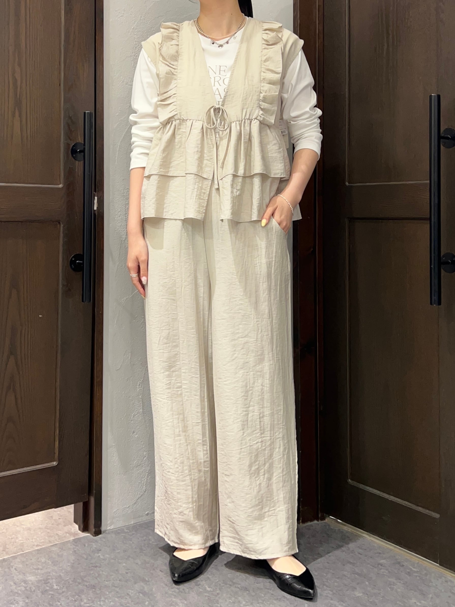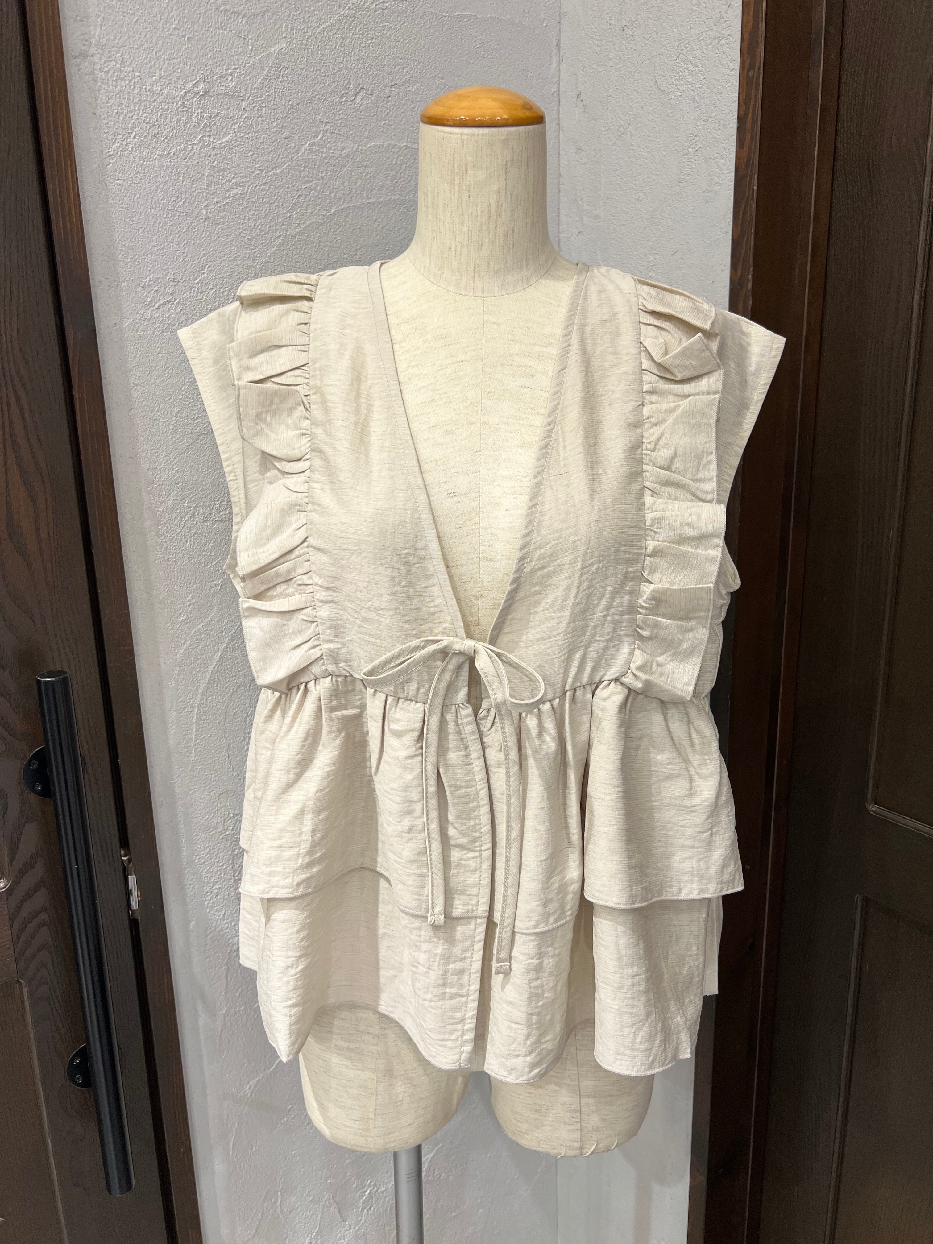 やわらかな風合いが魅力の、ナチュラルテイストなフリルベスト。