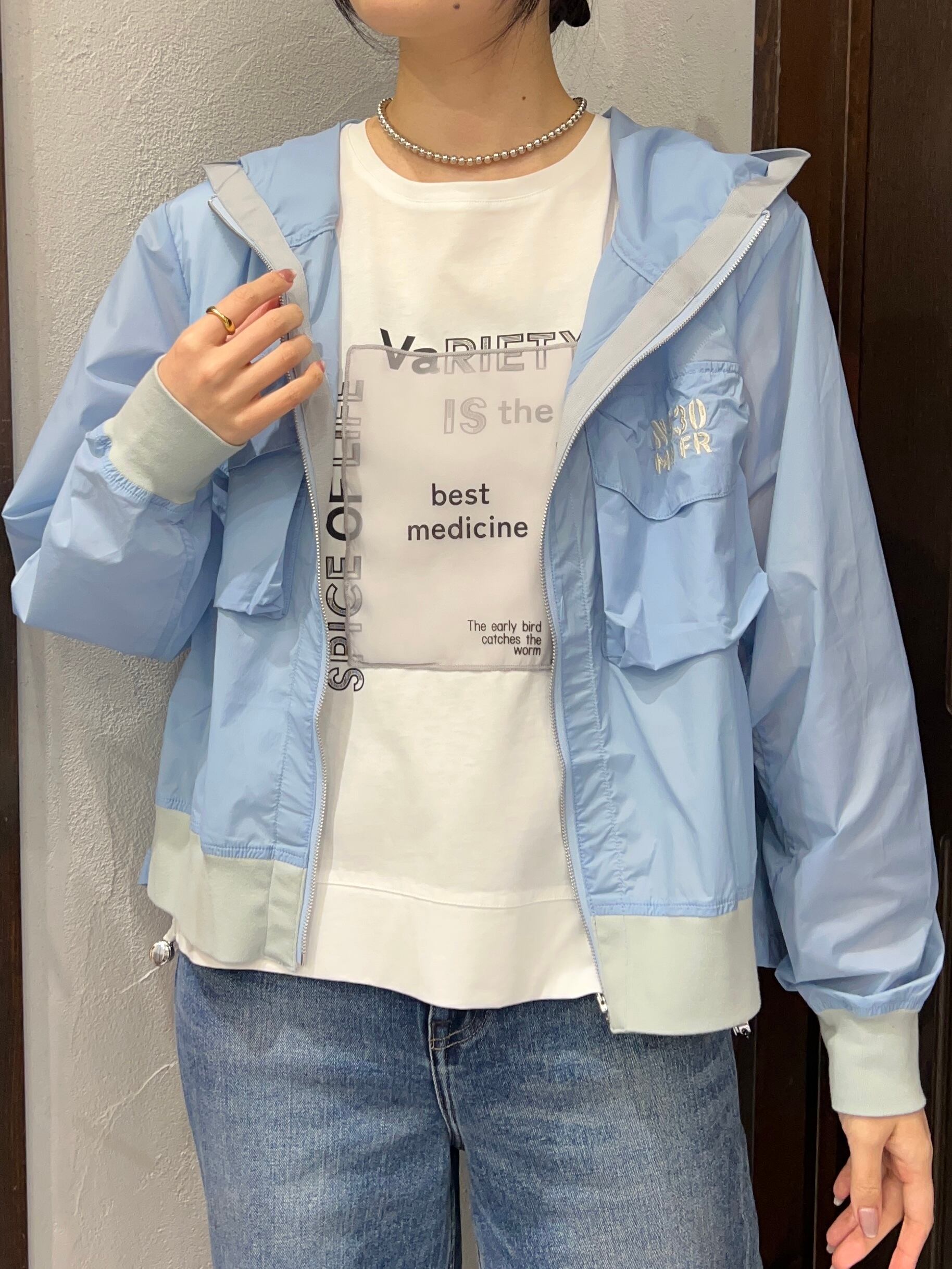 軽量素材で着心地がよく、季節の変わり目にも使いやすい一枚。