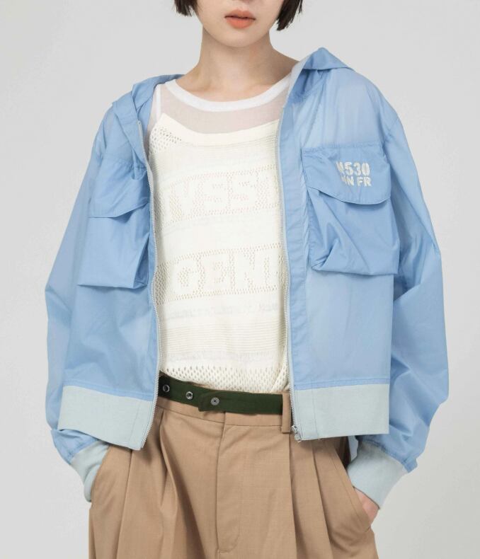 BLANC Basque/ロゴ刺繍ナイロンフードブルゾン フロントポケットデザイン
