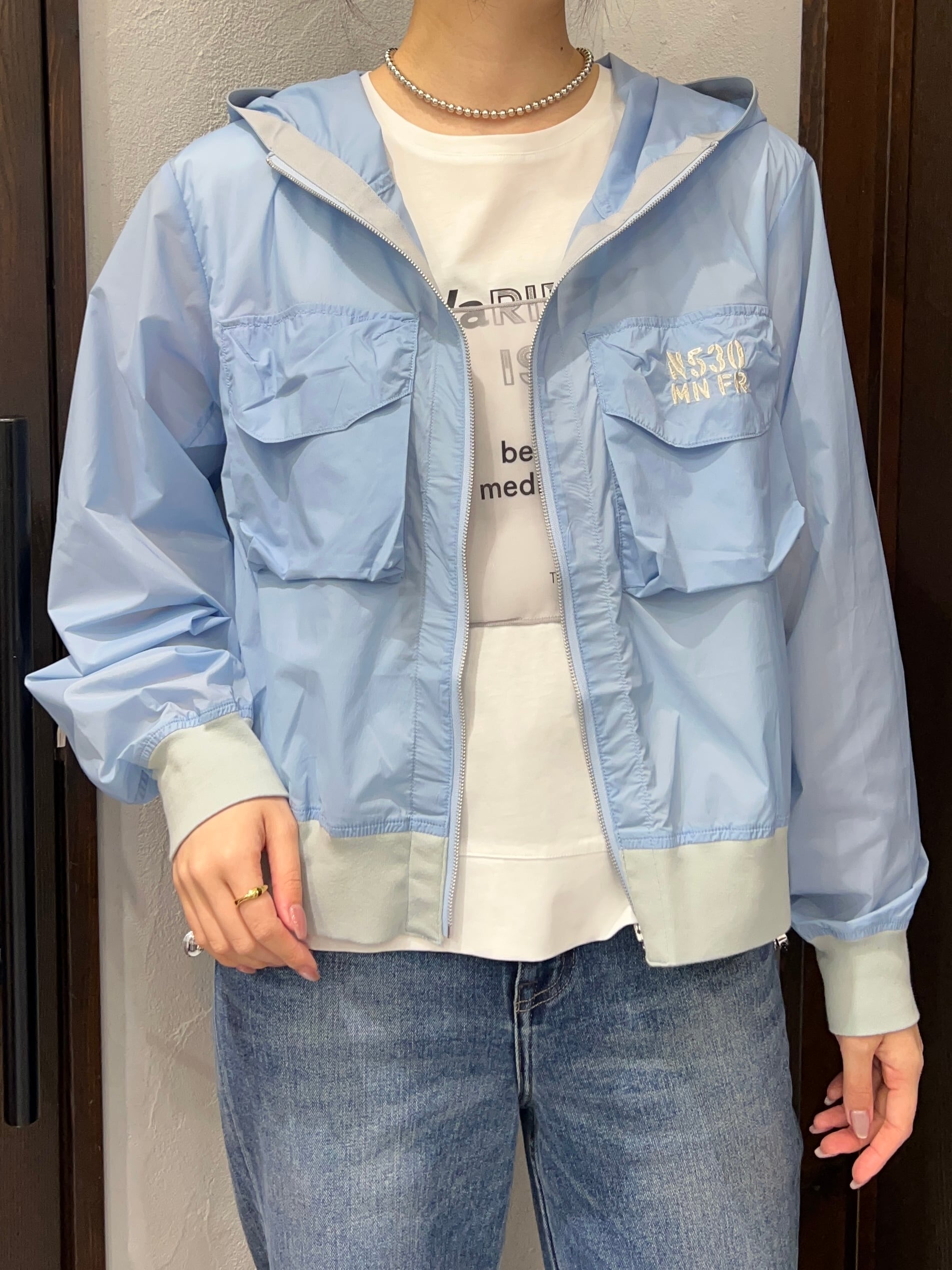 軽くてさらっと羽織れるナイロンフードブルゾン。