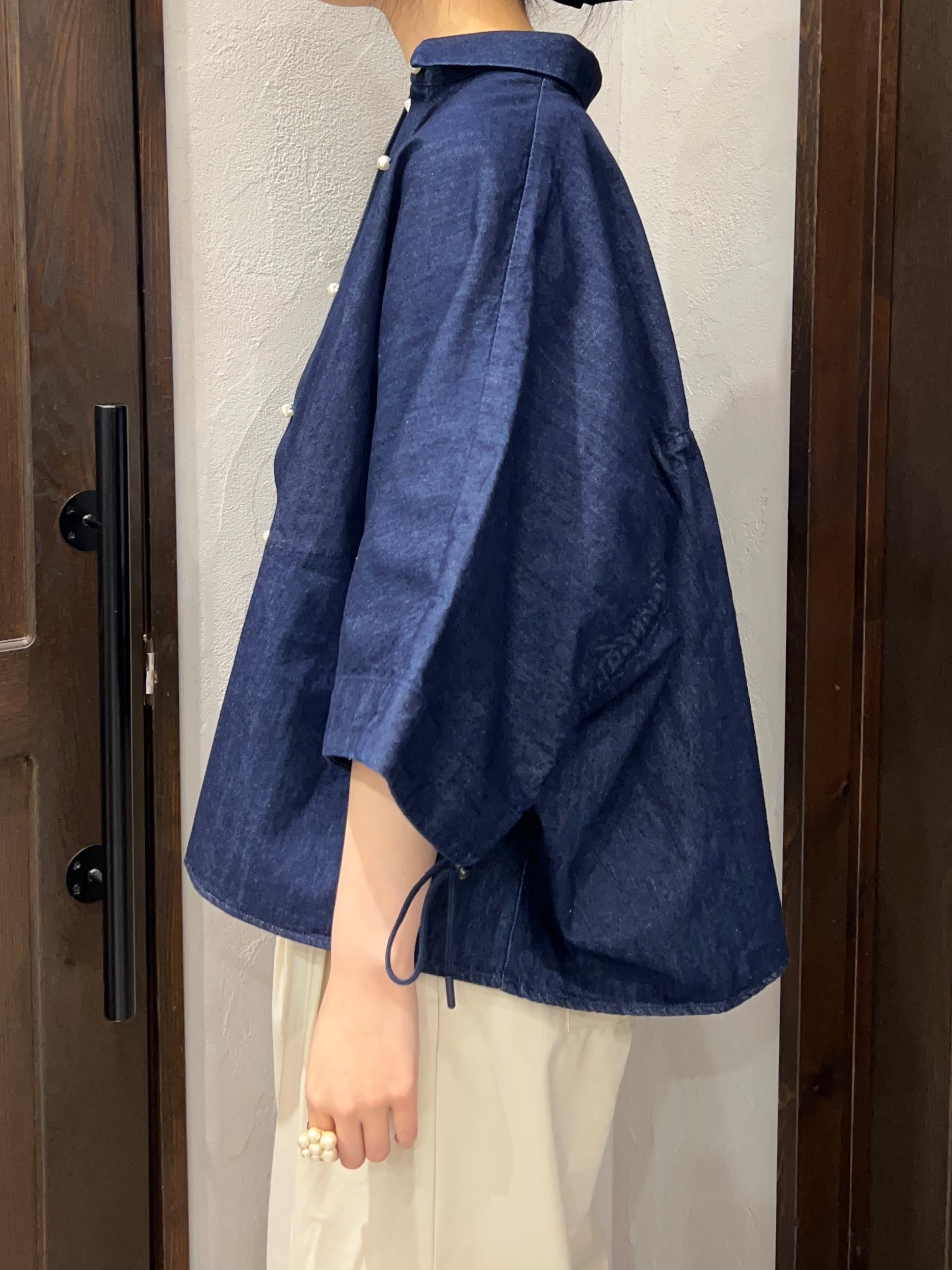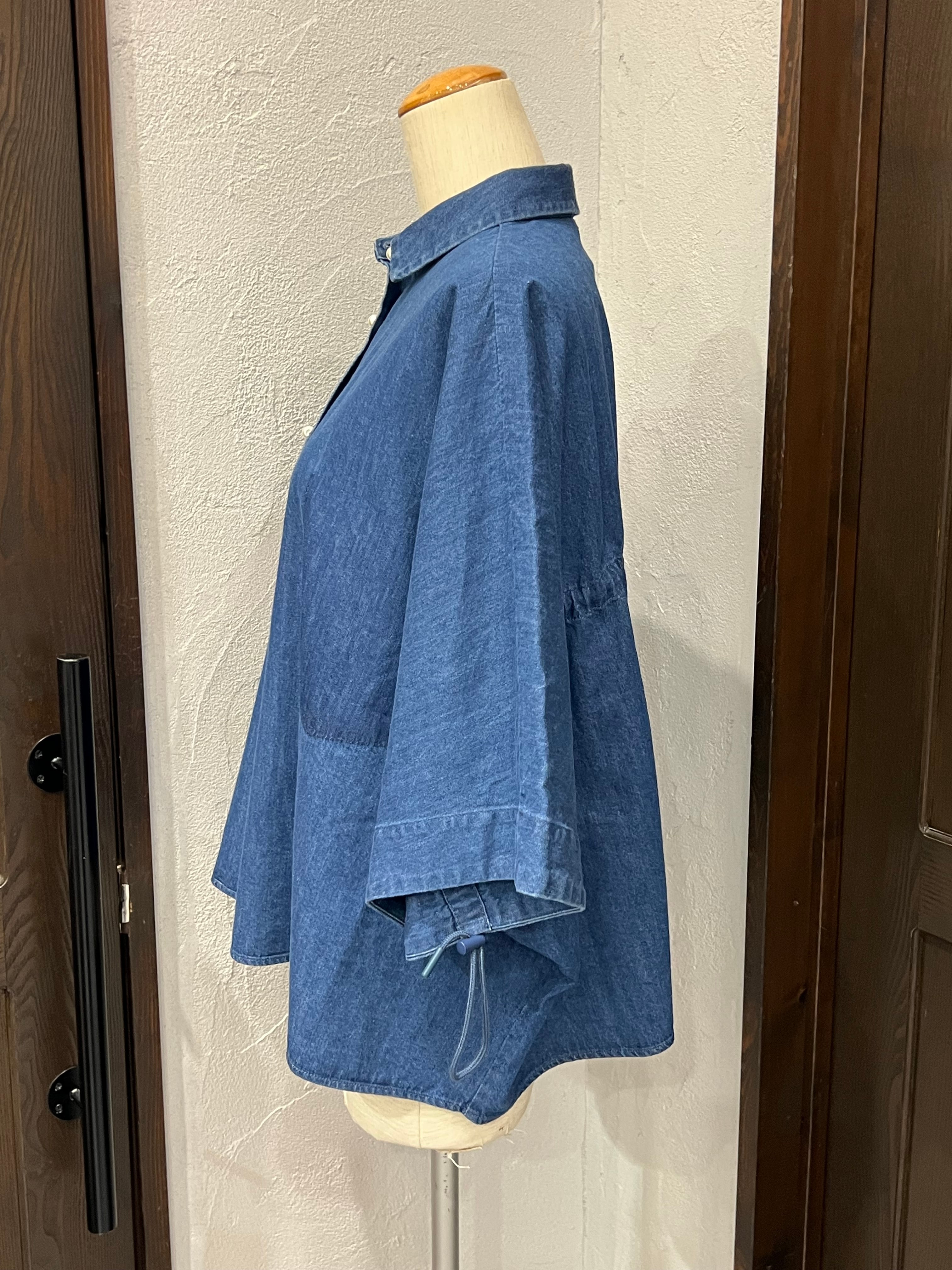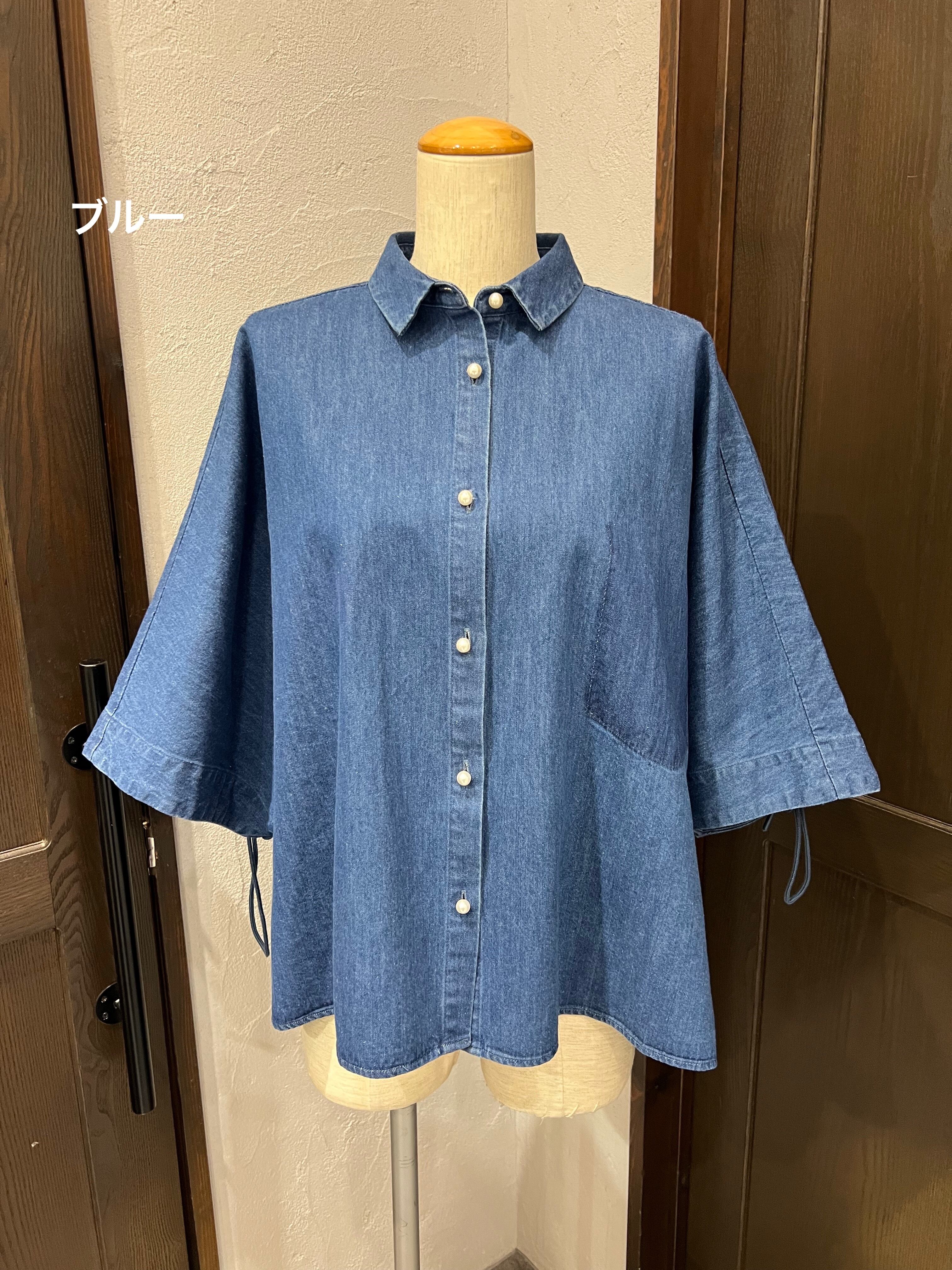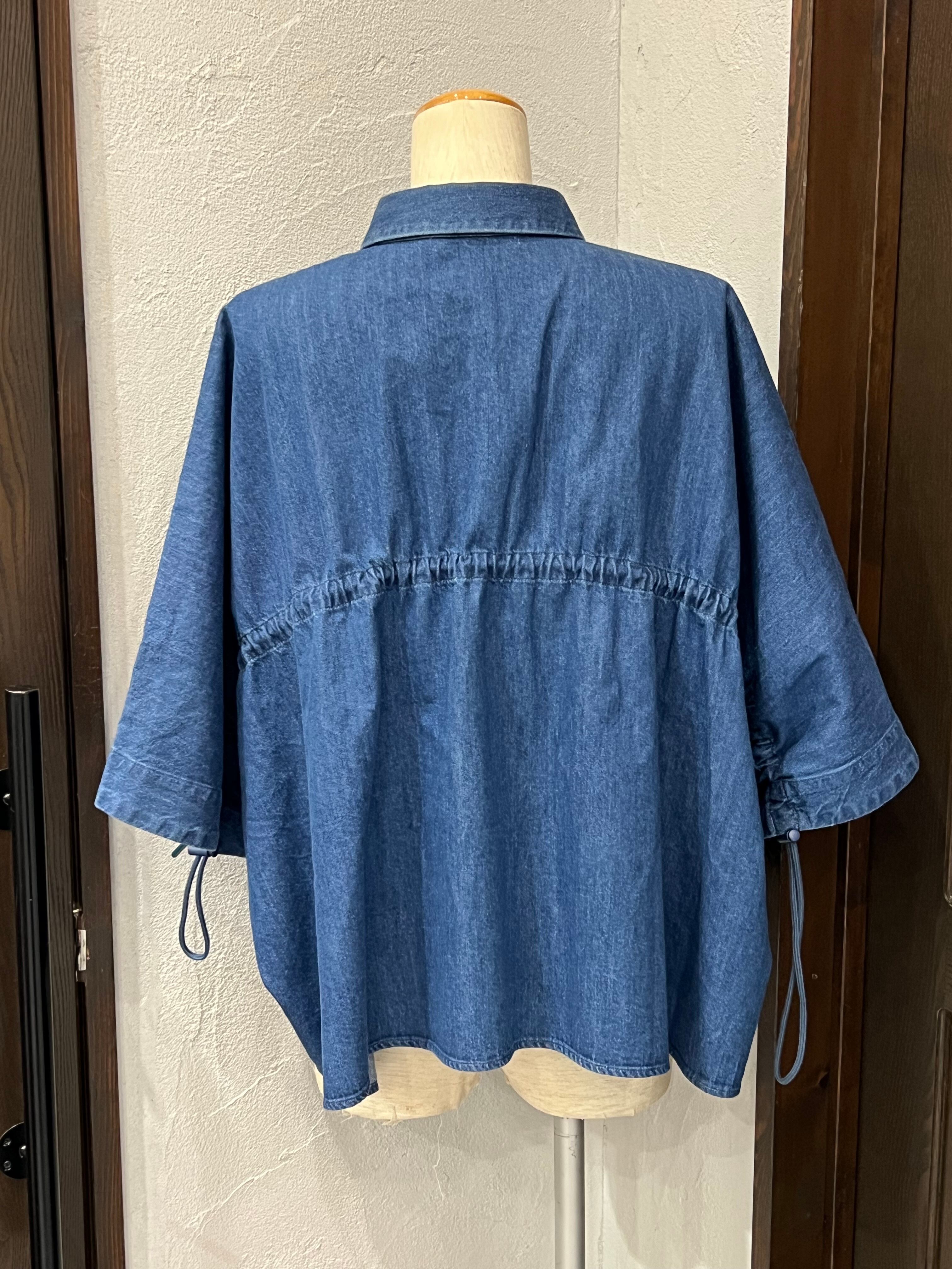 BLANC Basque/デニムワイドシャツ / 五分袖ドロースリーブデザイン