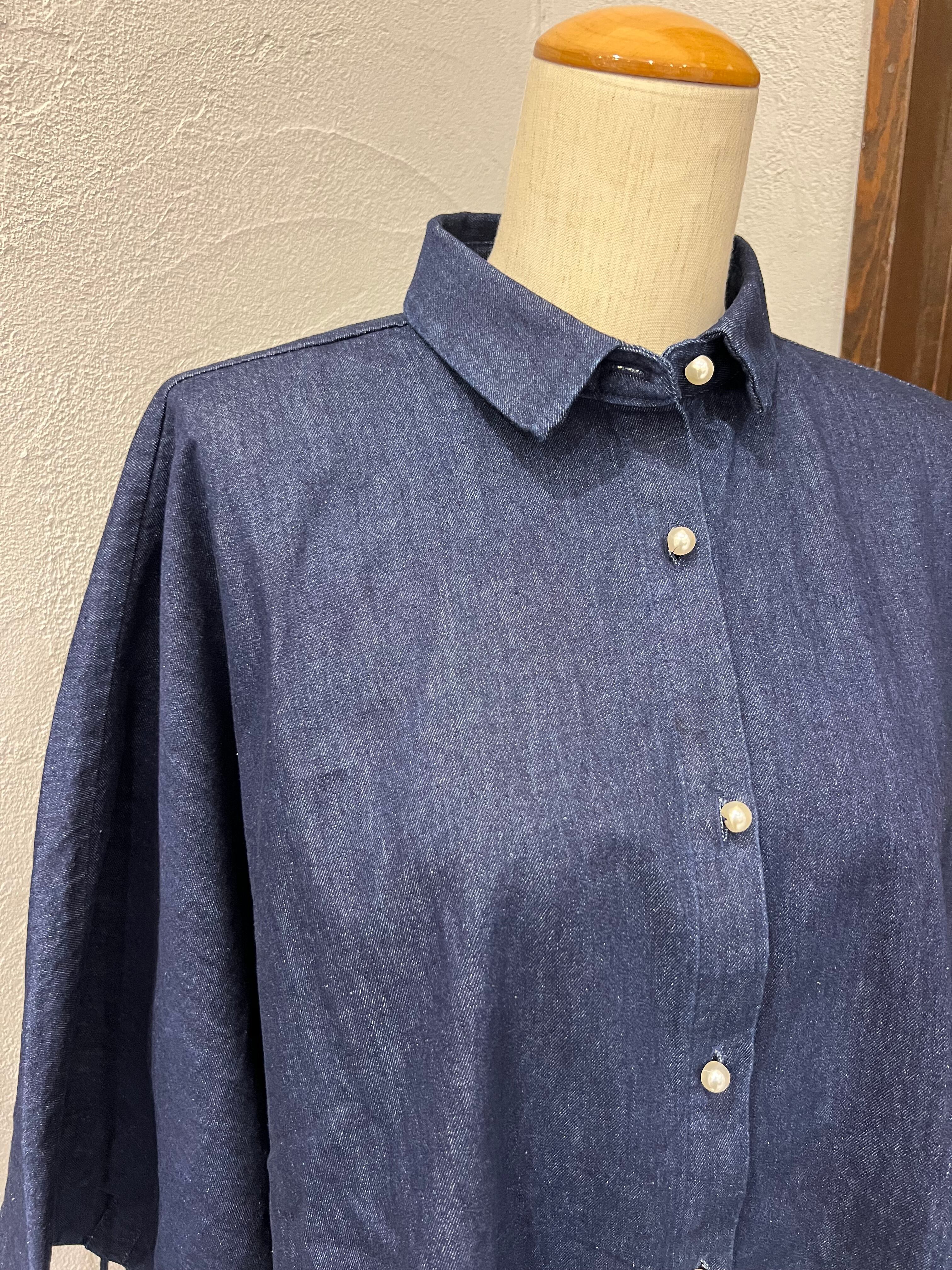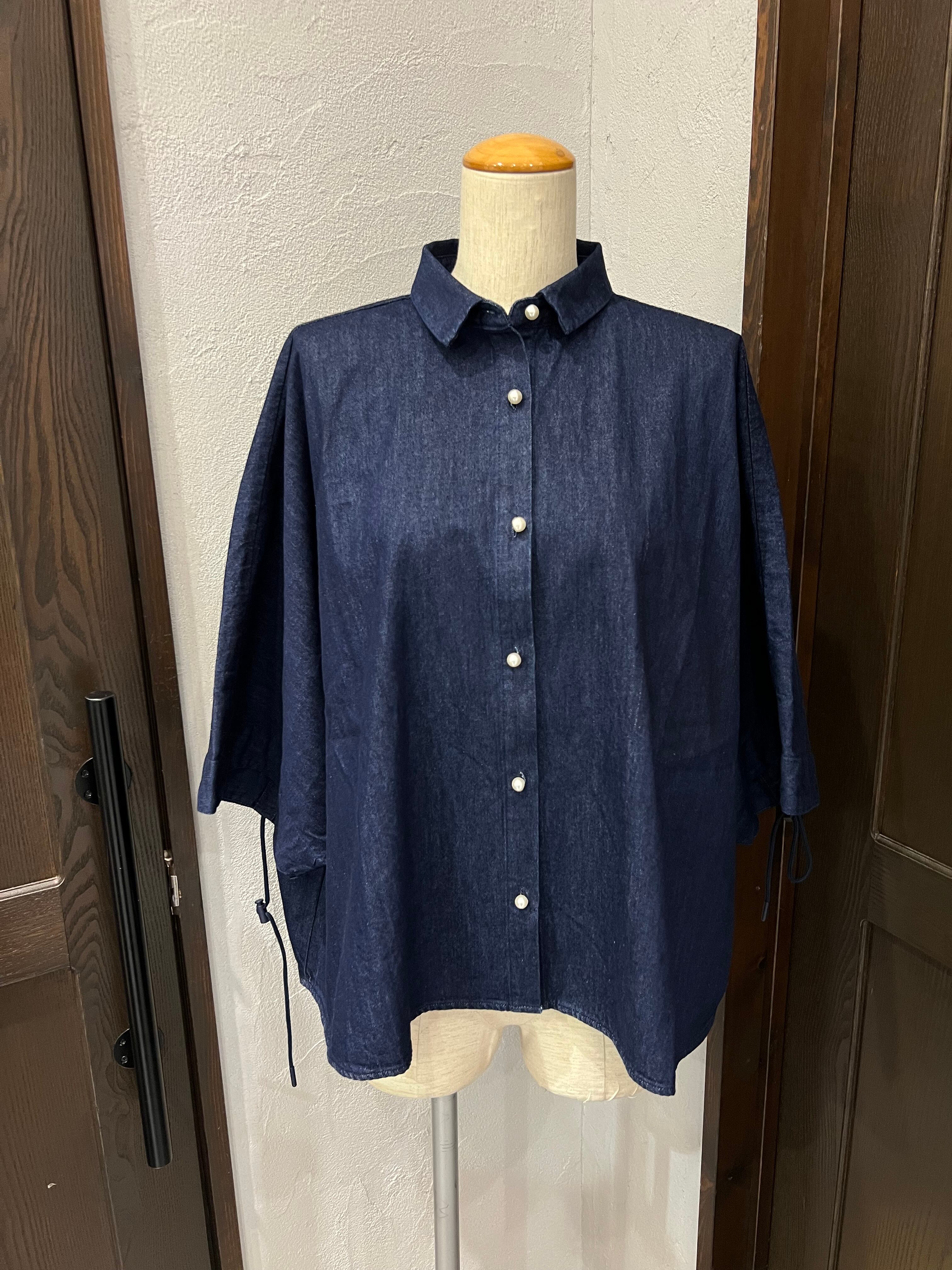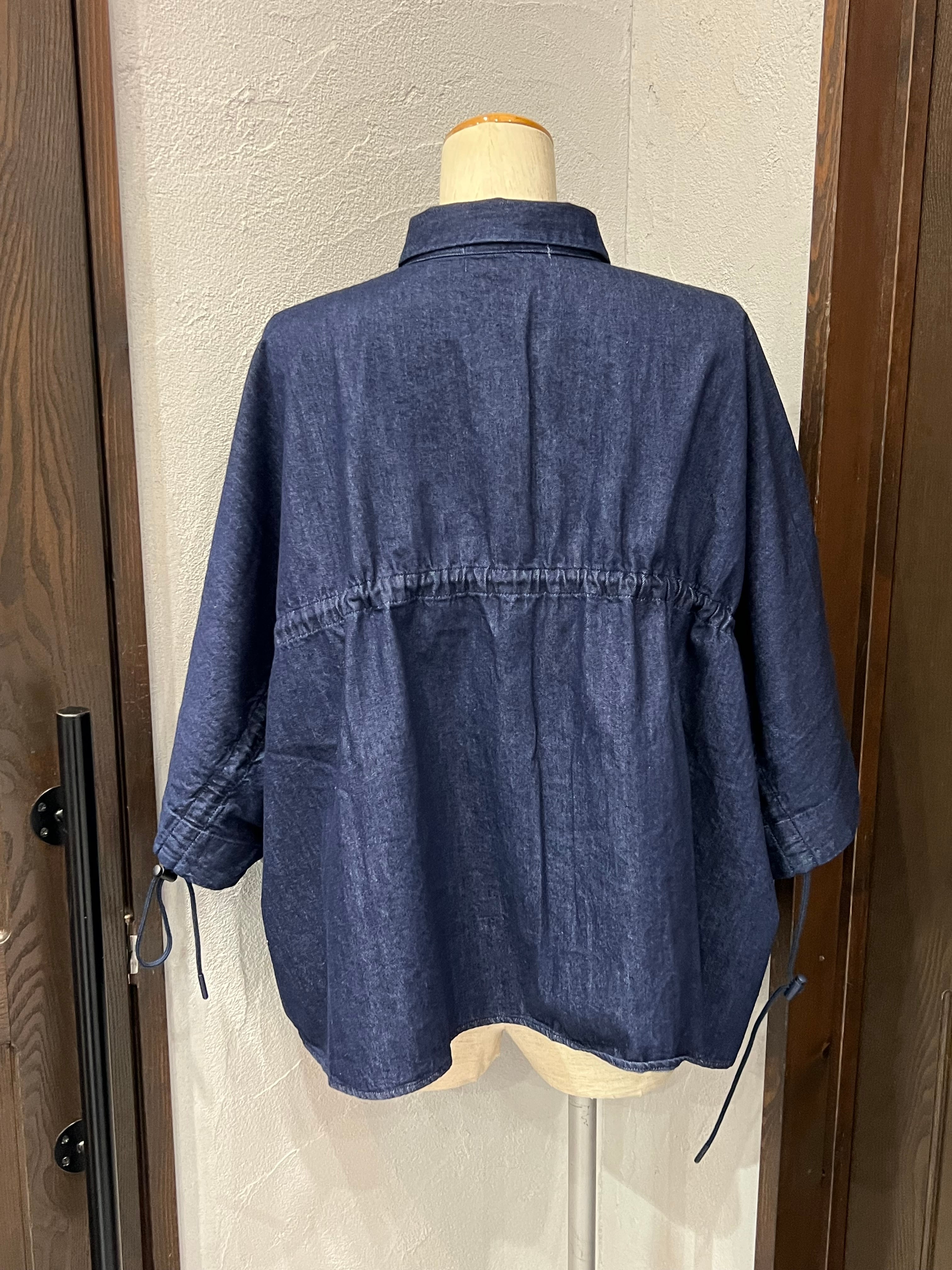 BLANC Basque/デニムワイドシャツ / 五分袖ドロースリーブデザイン