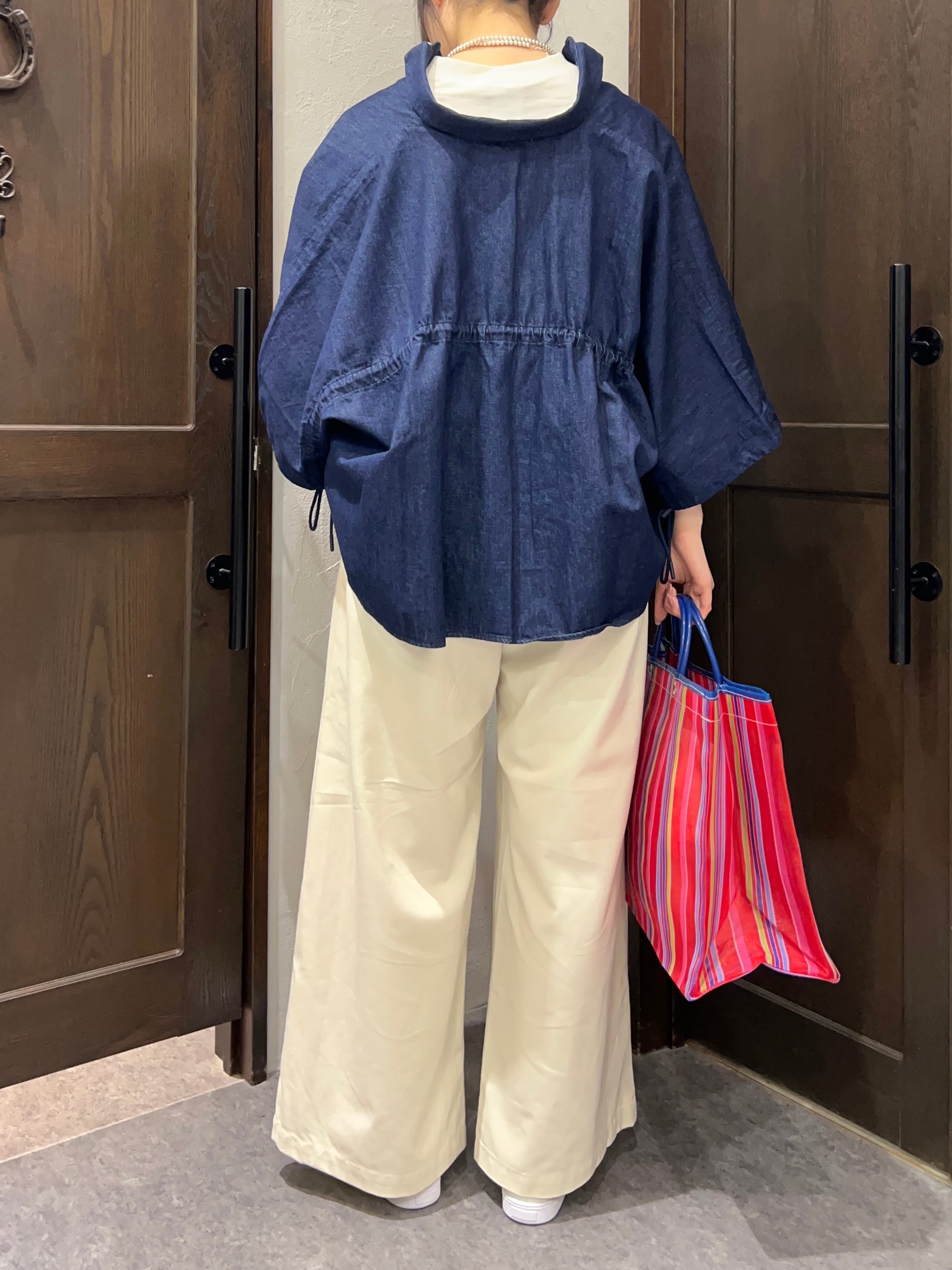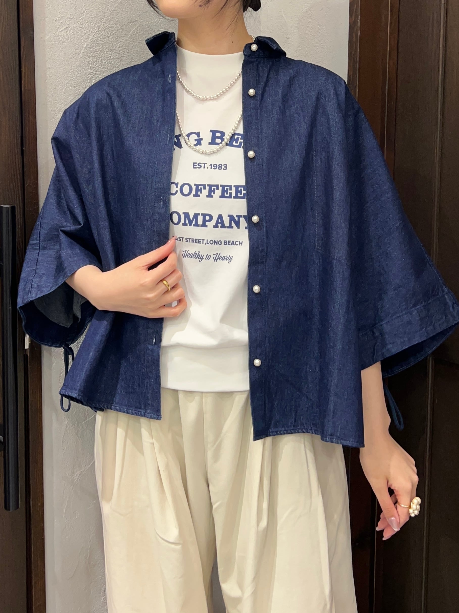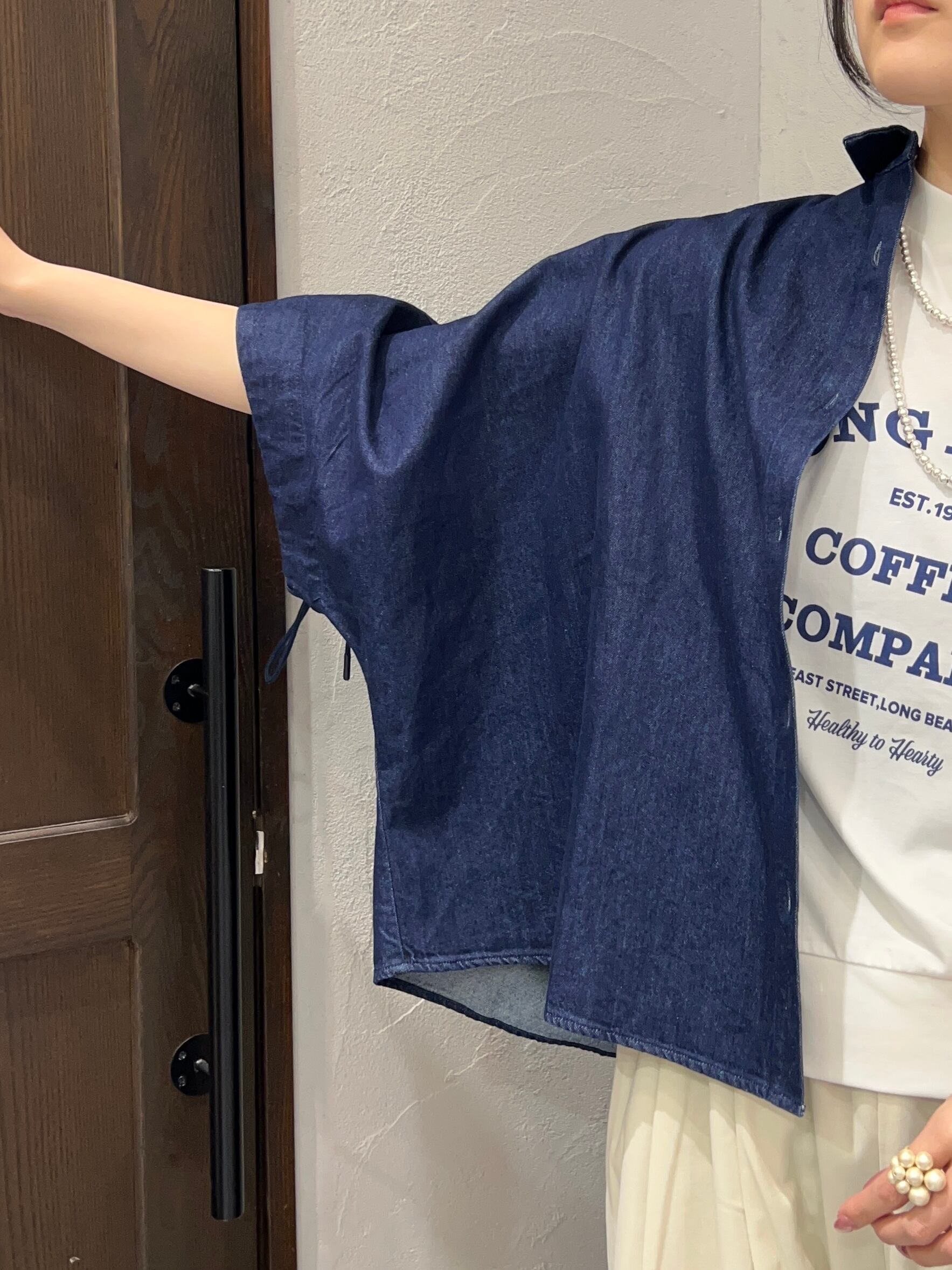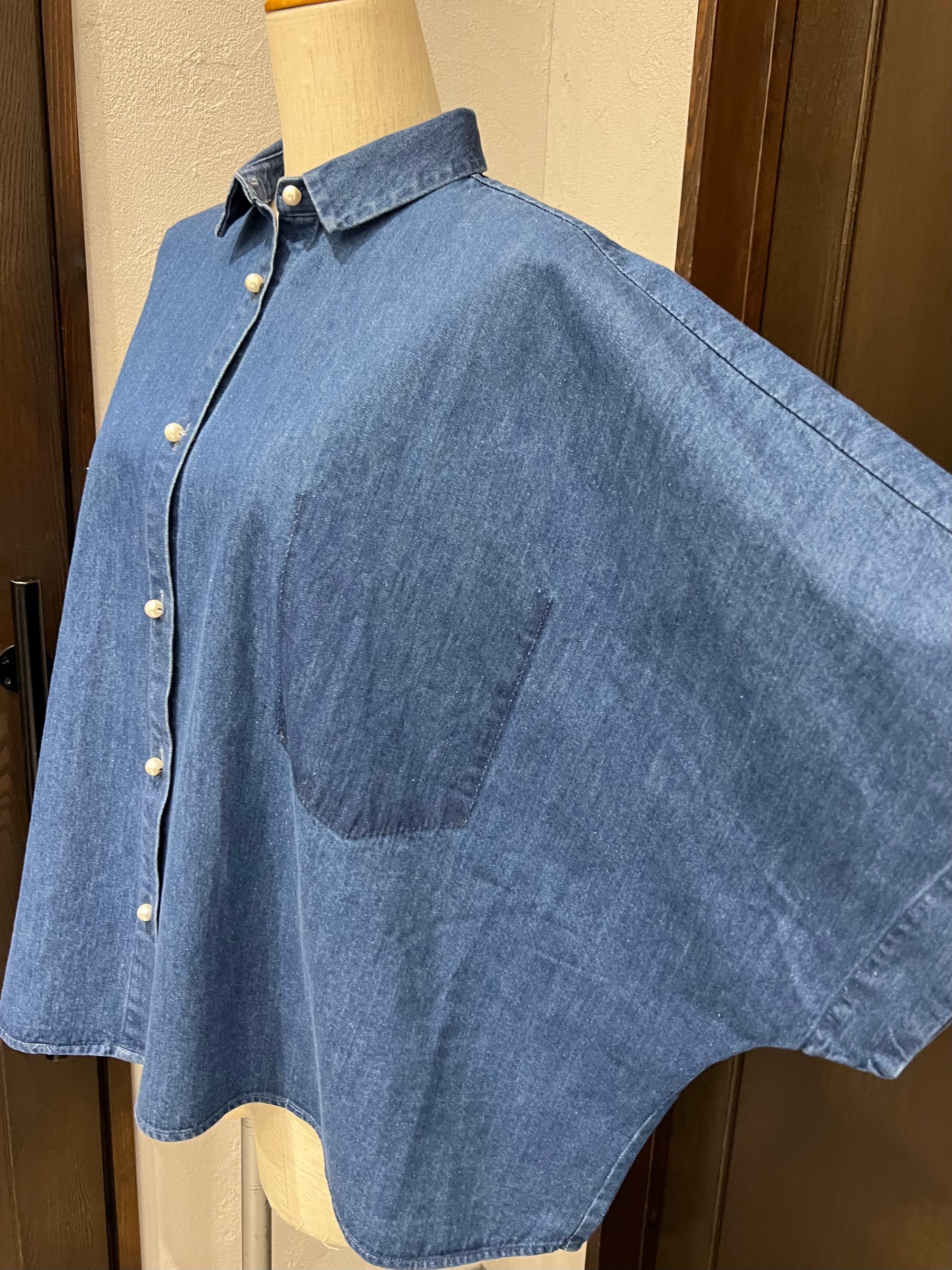 BLANC Basque/デニムワイドシャツ / 五分袖ドロースリーブデザイン