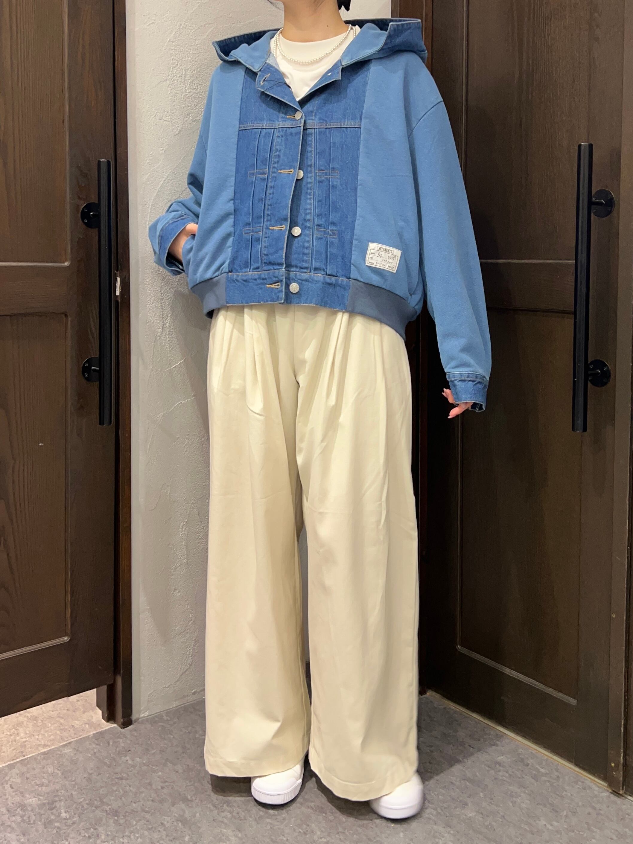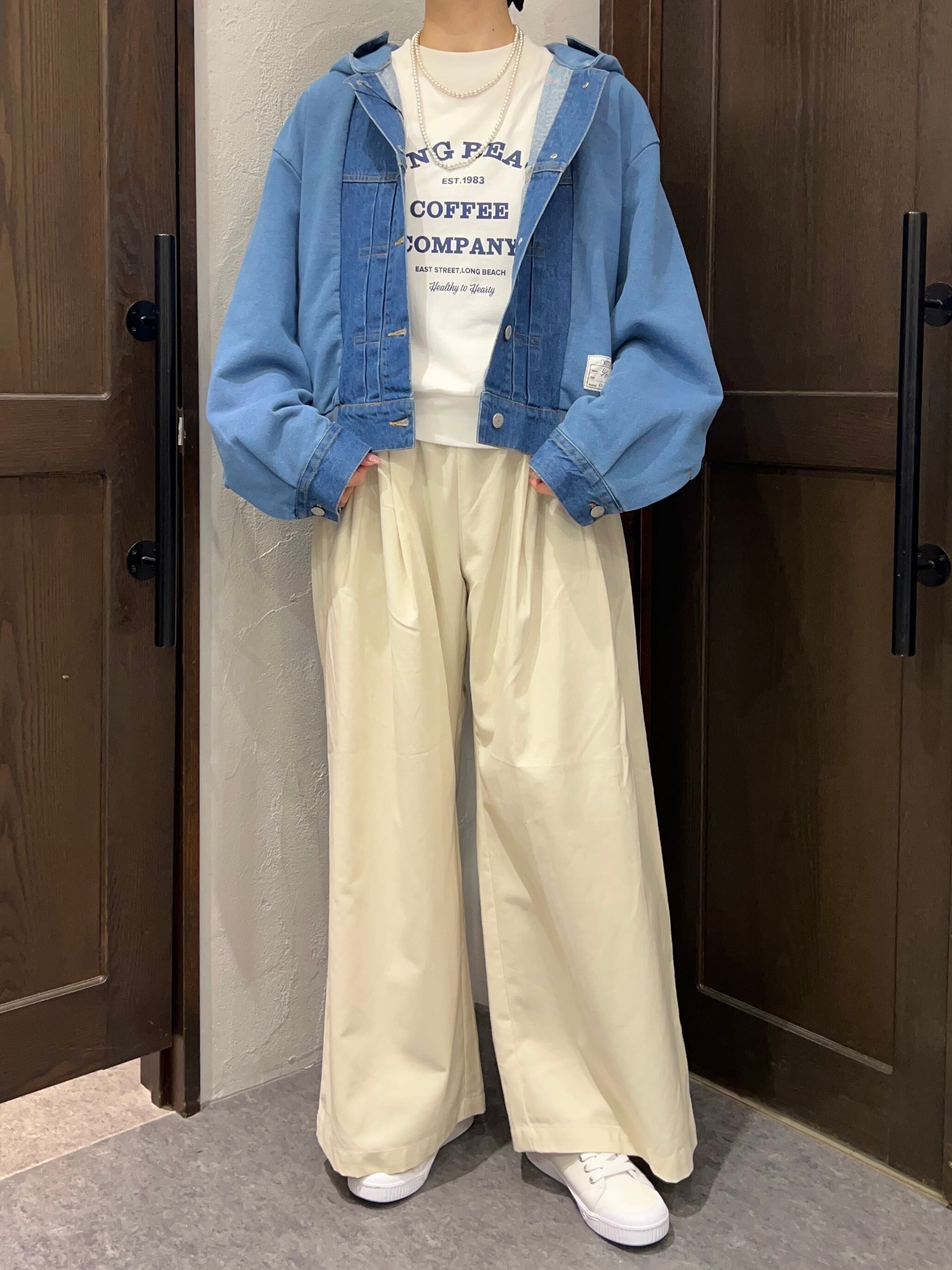 ワイドパンツやデニム、スカートなど幅広いスタイリングに合わせやすく、デイリーコーデに取り入れやすい一枚です。