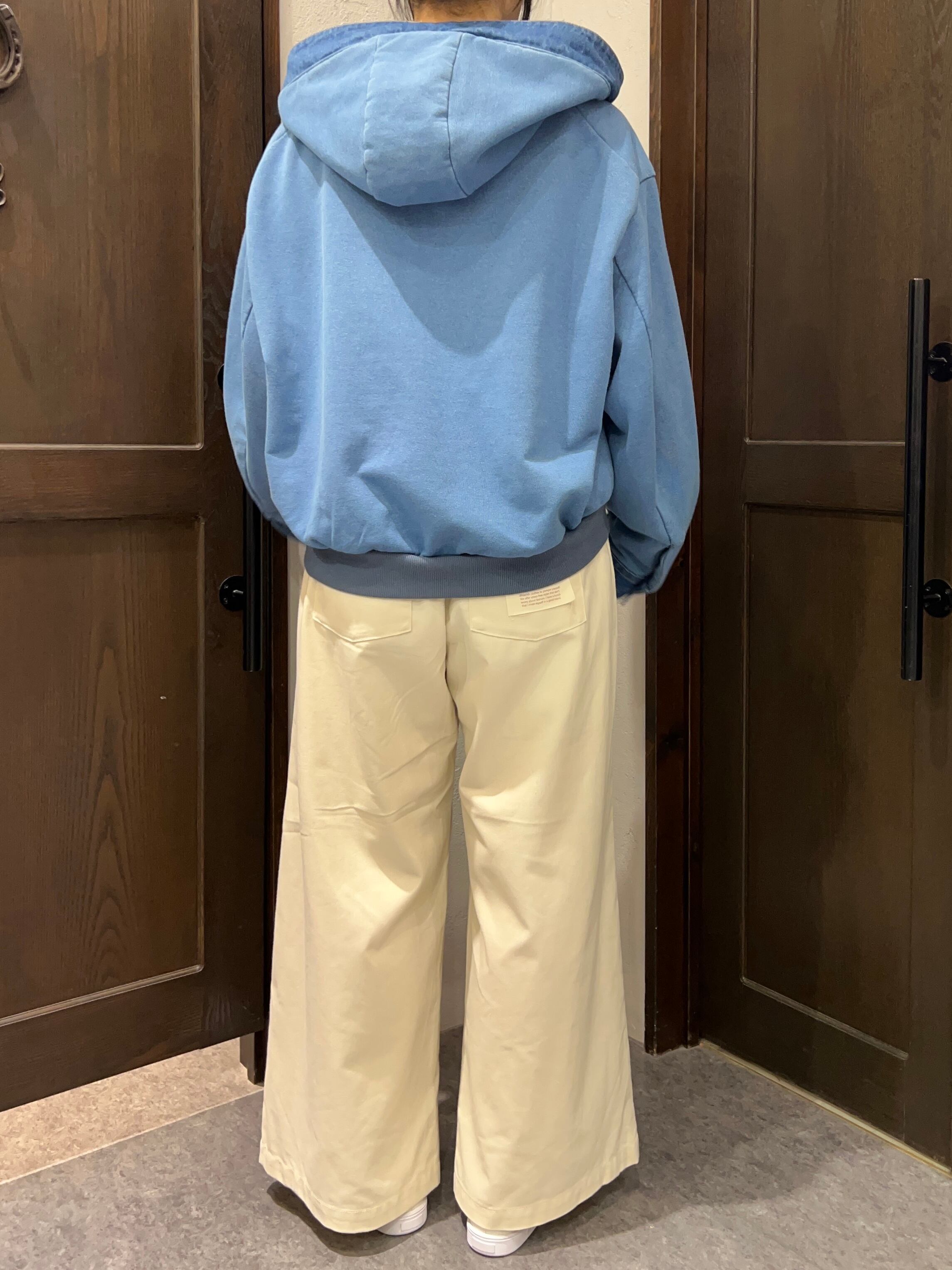 フード付きのデザインで、季節の変わり目の軽いアウターとしても活躍します。
