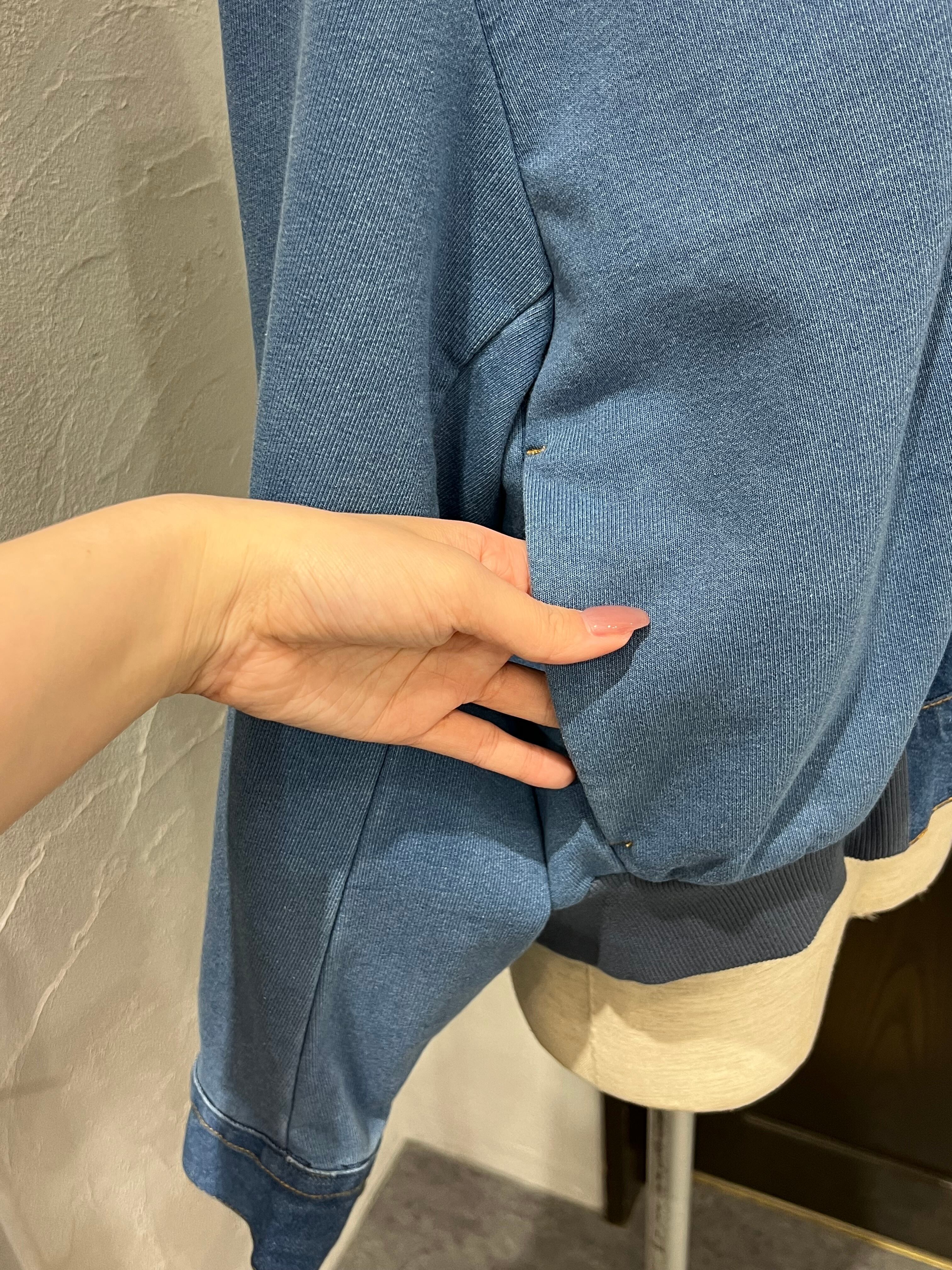 BLANC Basque/デニム×デニム裏毛 ドッキングパーカー