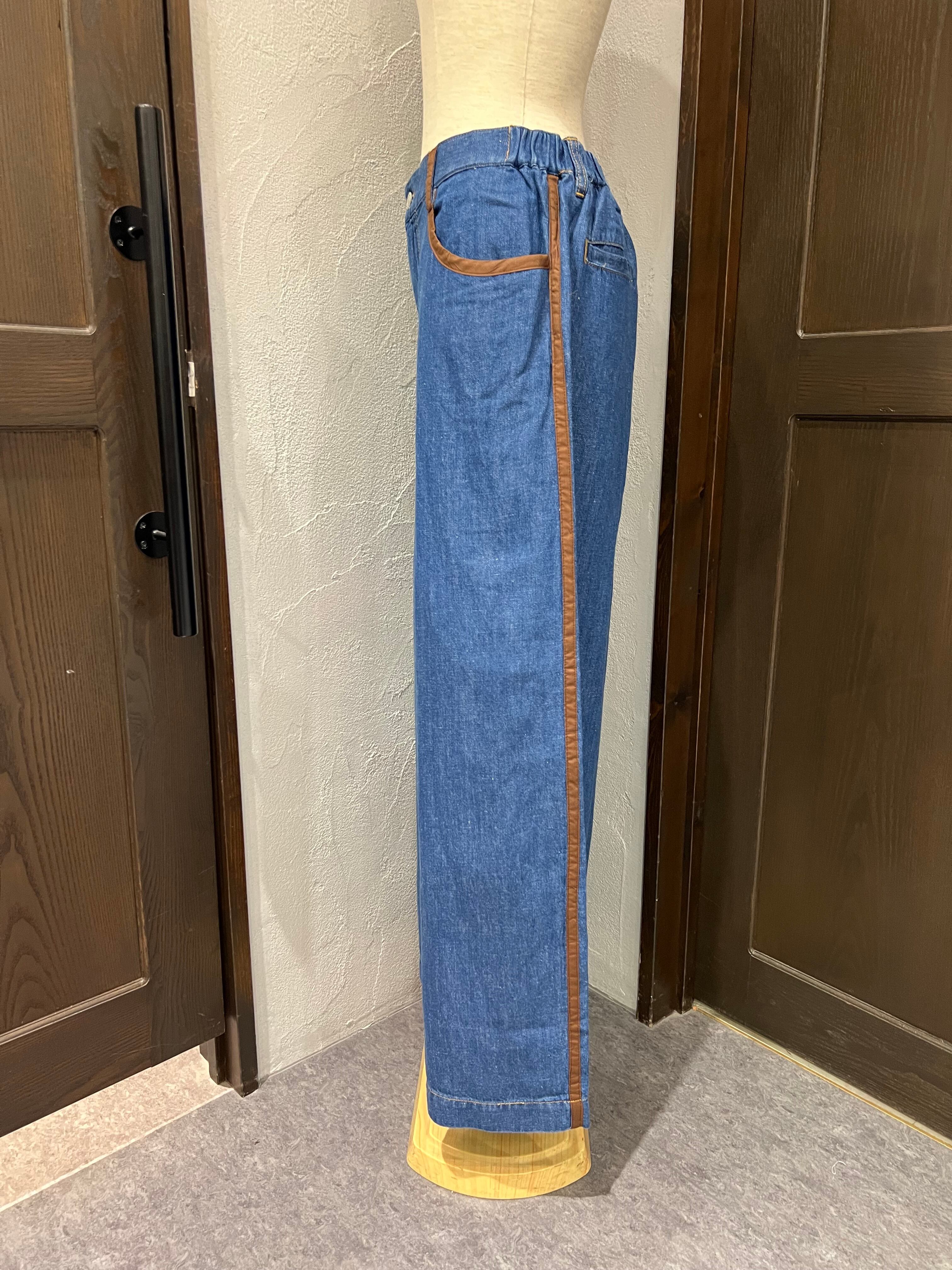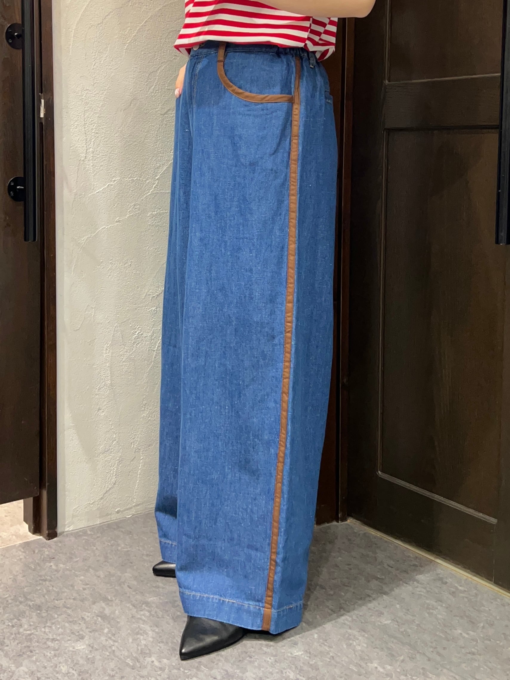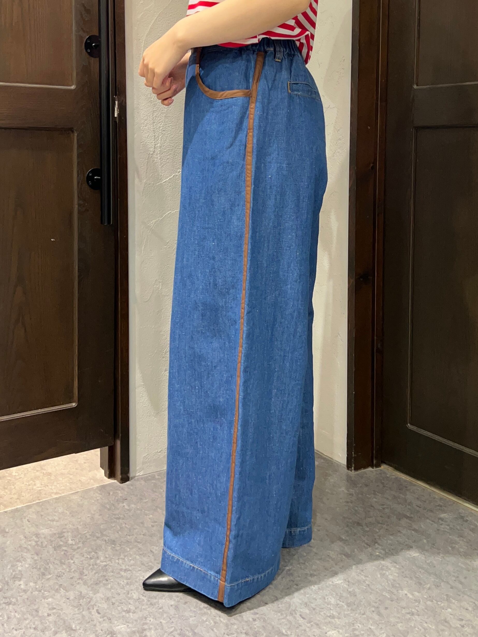 BLANC Basque/配色ラインデザインデニムワイドパンツ