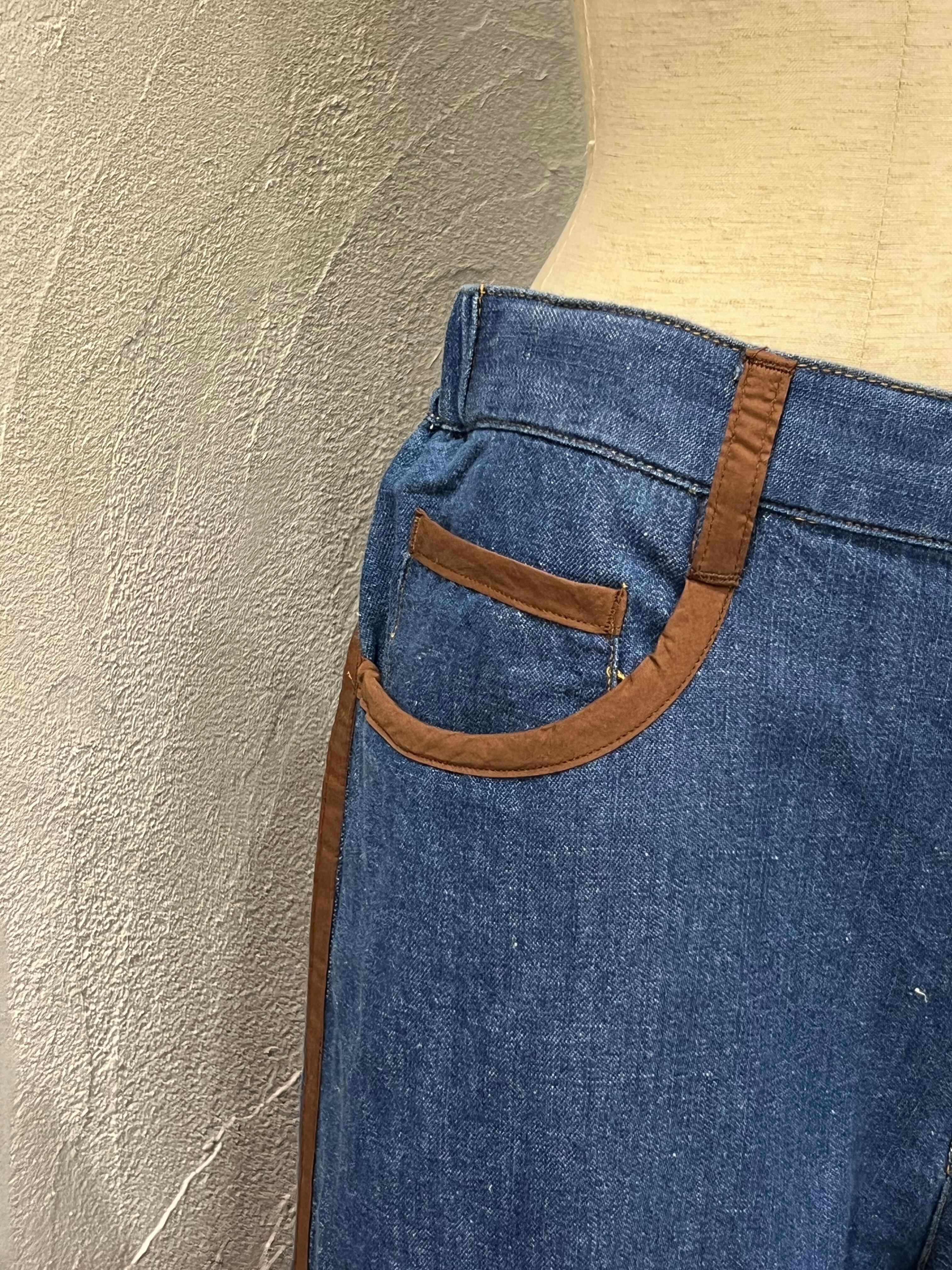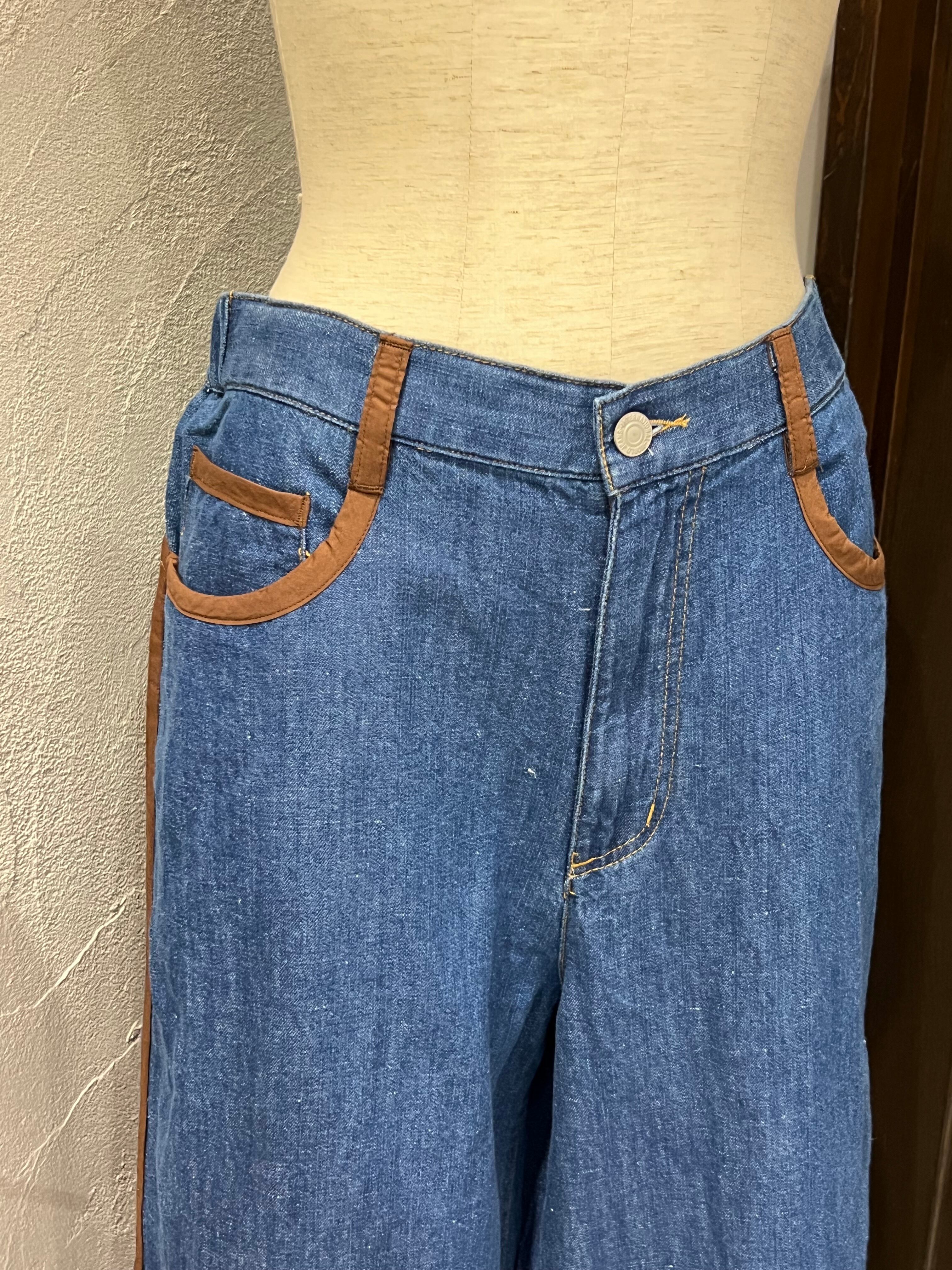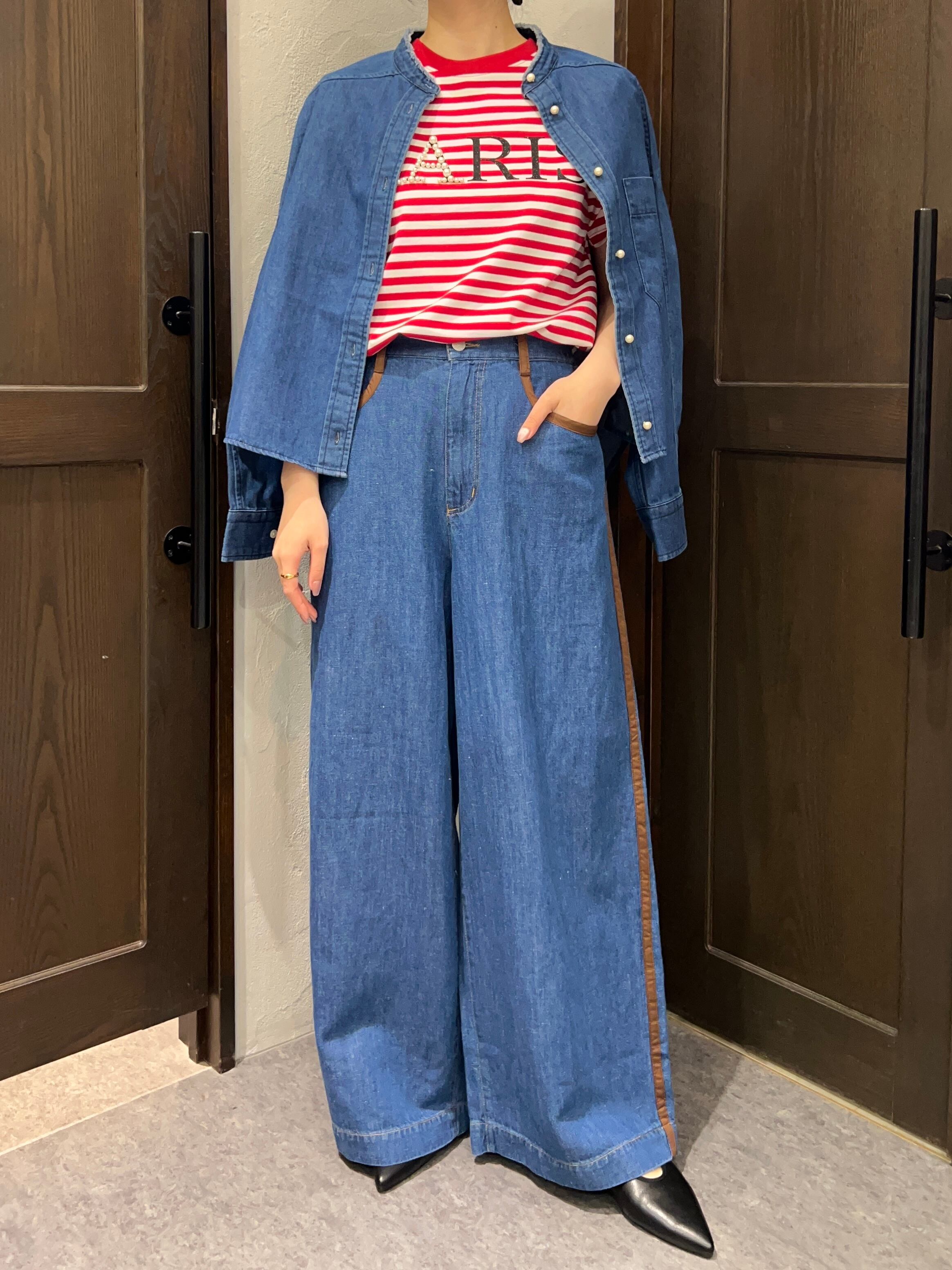 BLANC Basque/配色ラインデザインデニムワイドパンツ