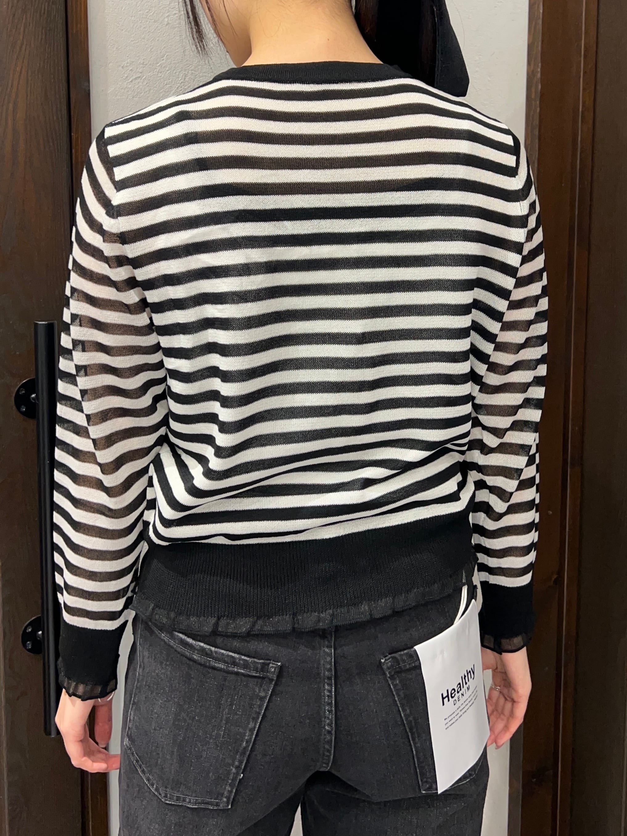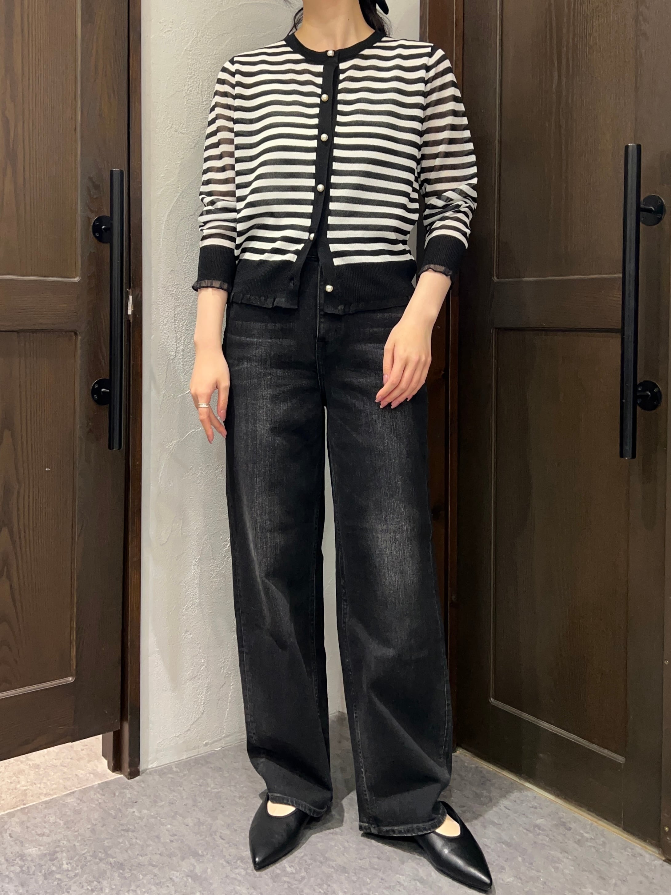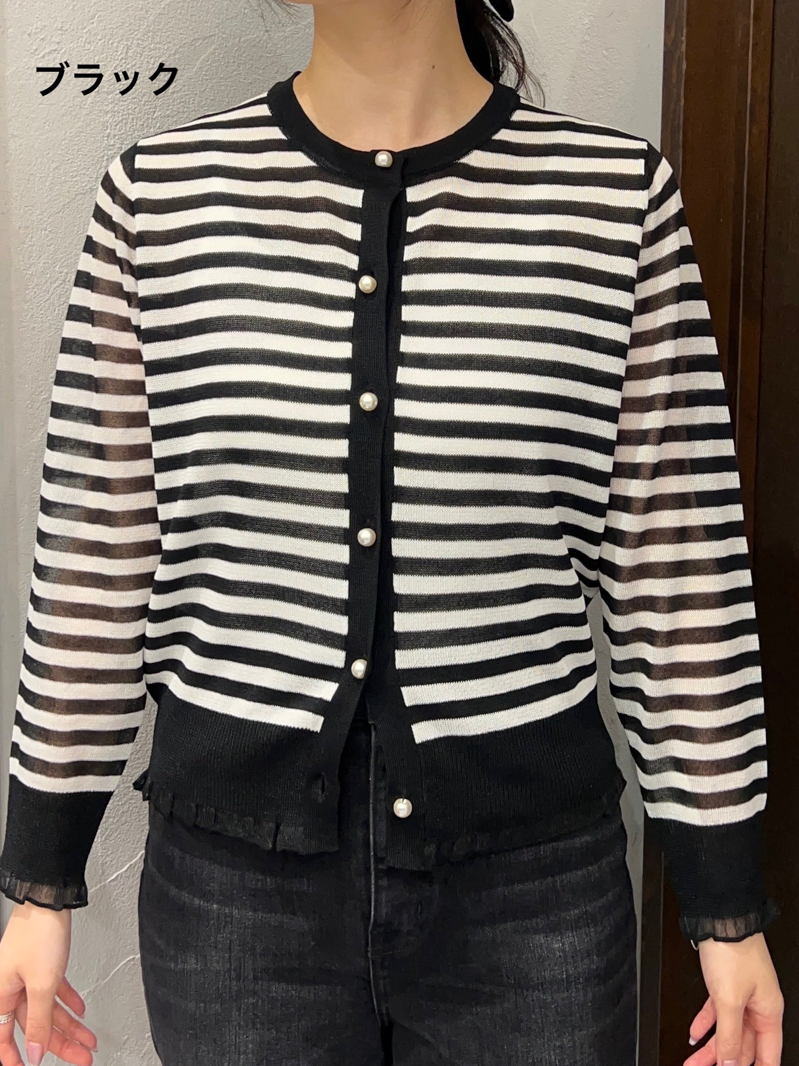 botanical/パールボタンボーダーカーディガン