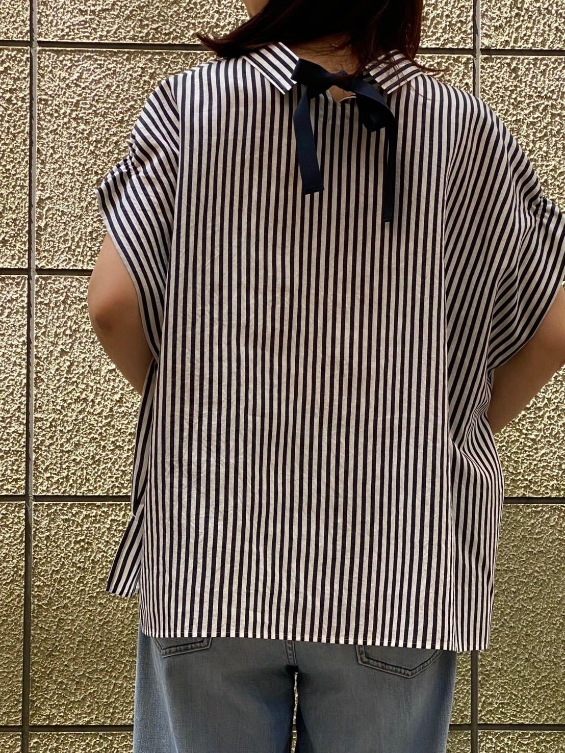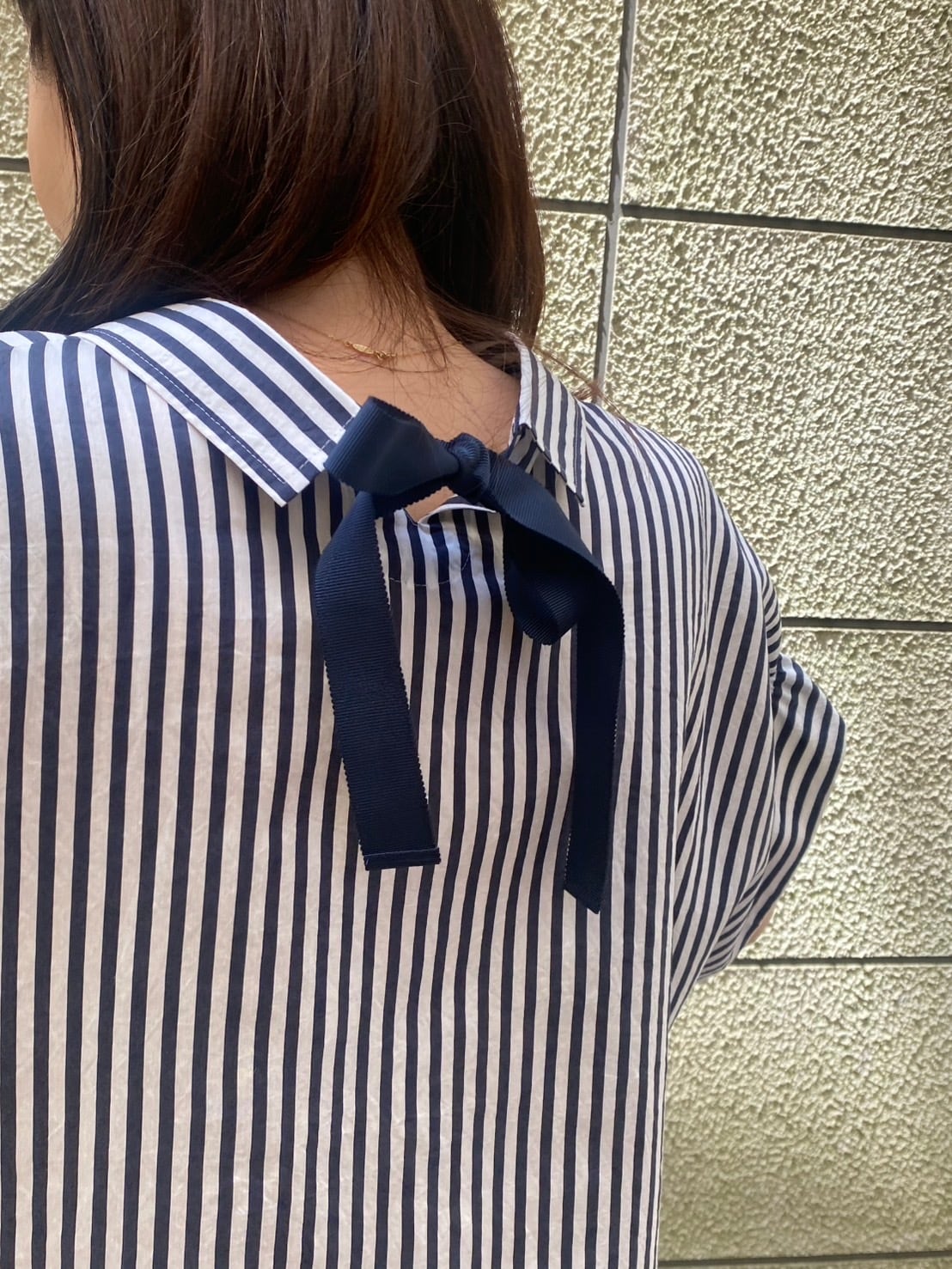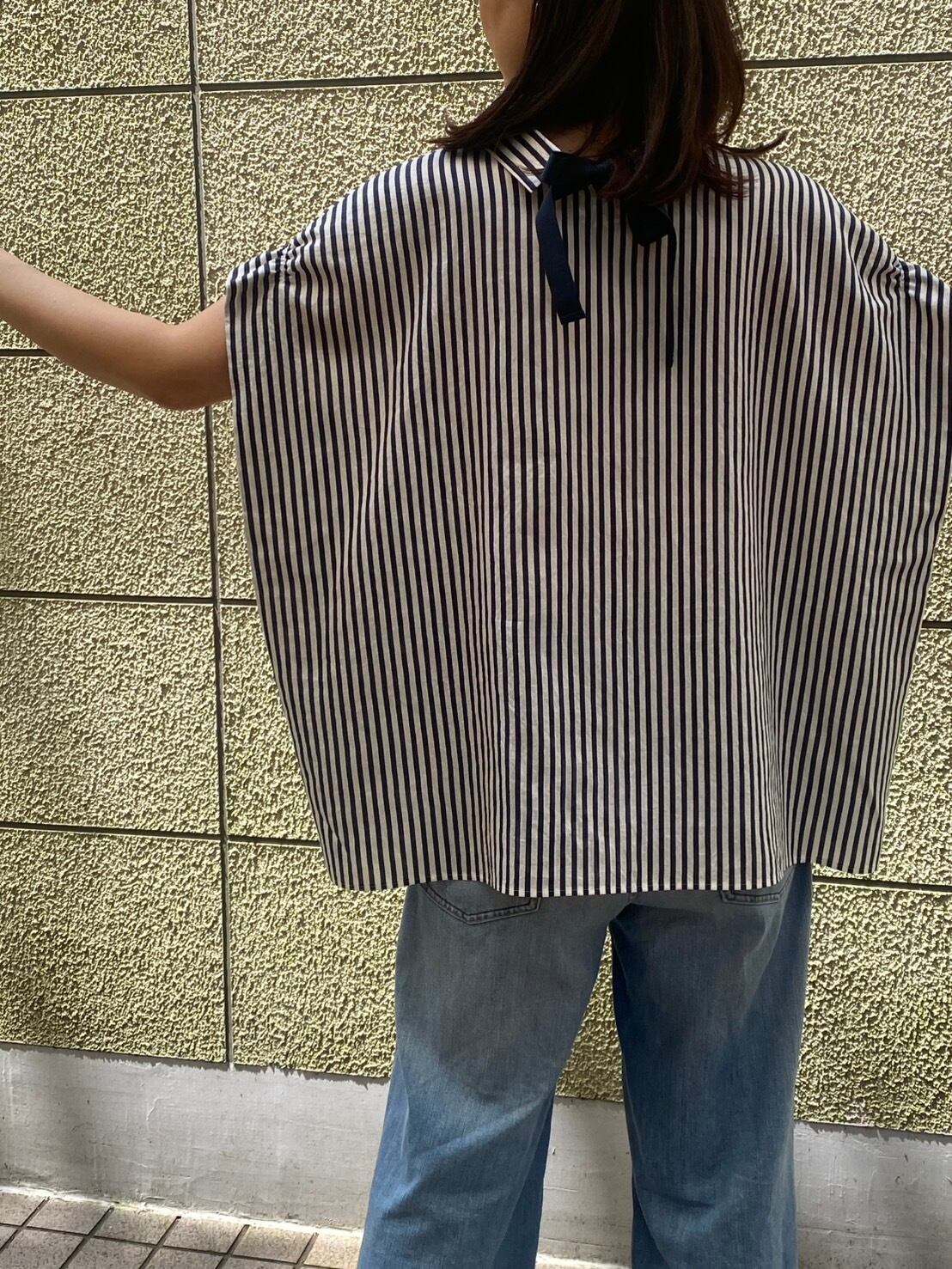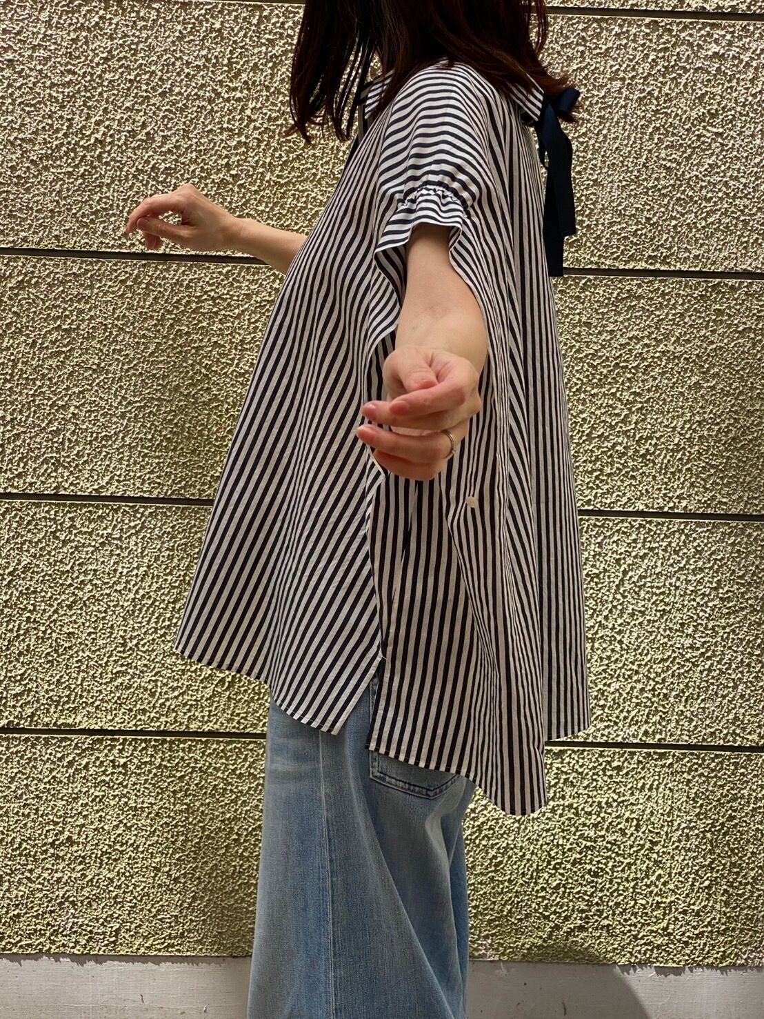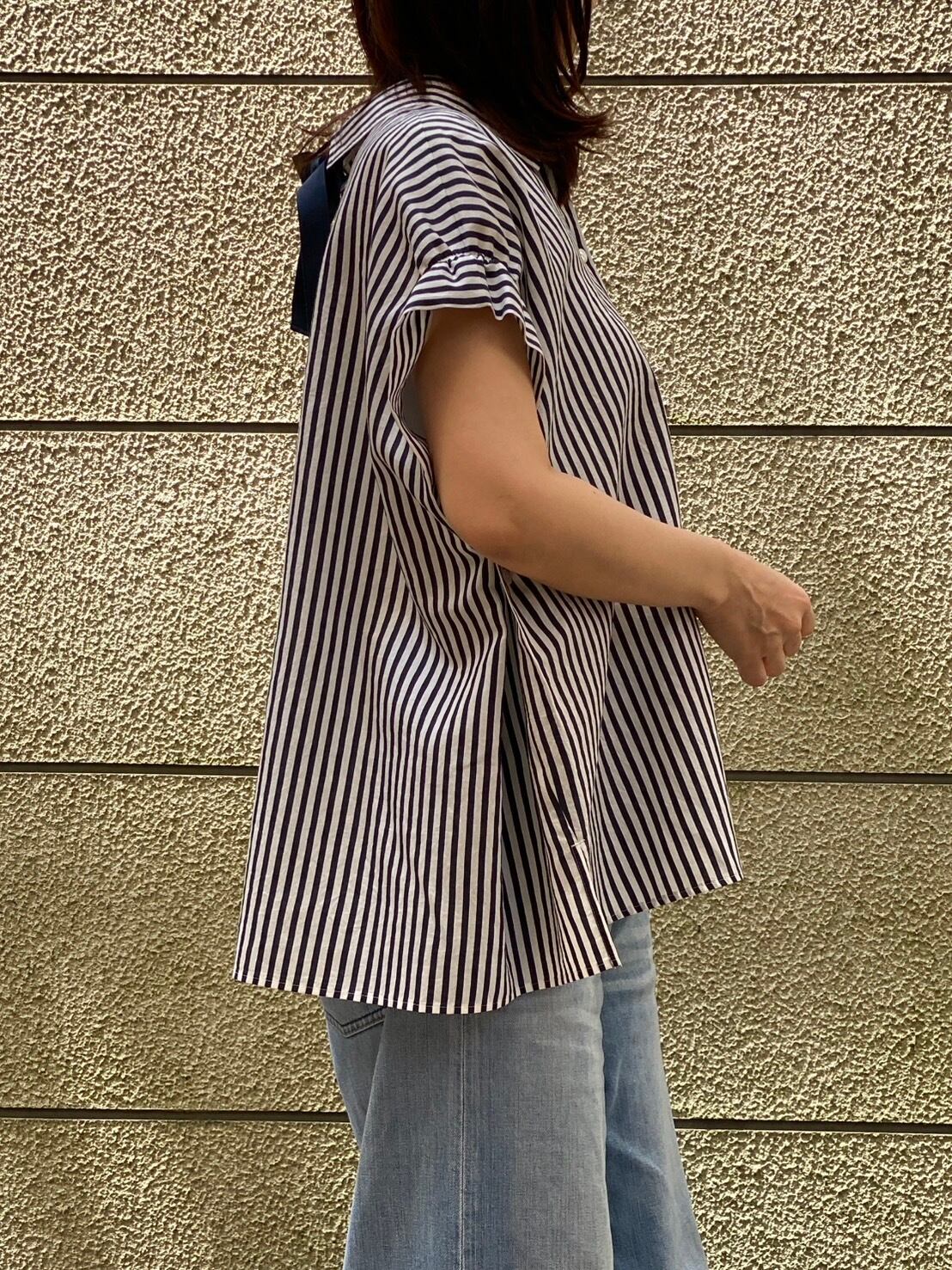 BLUE FRONCE/バックリボンストライプシャツ