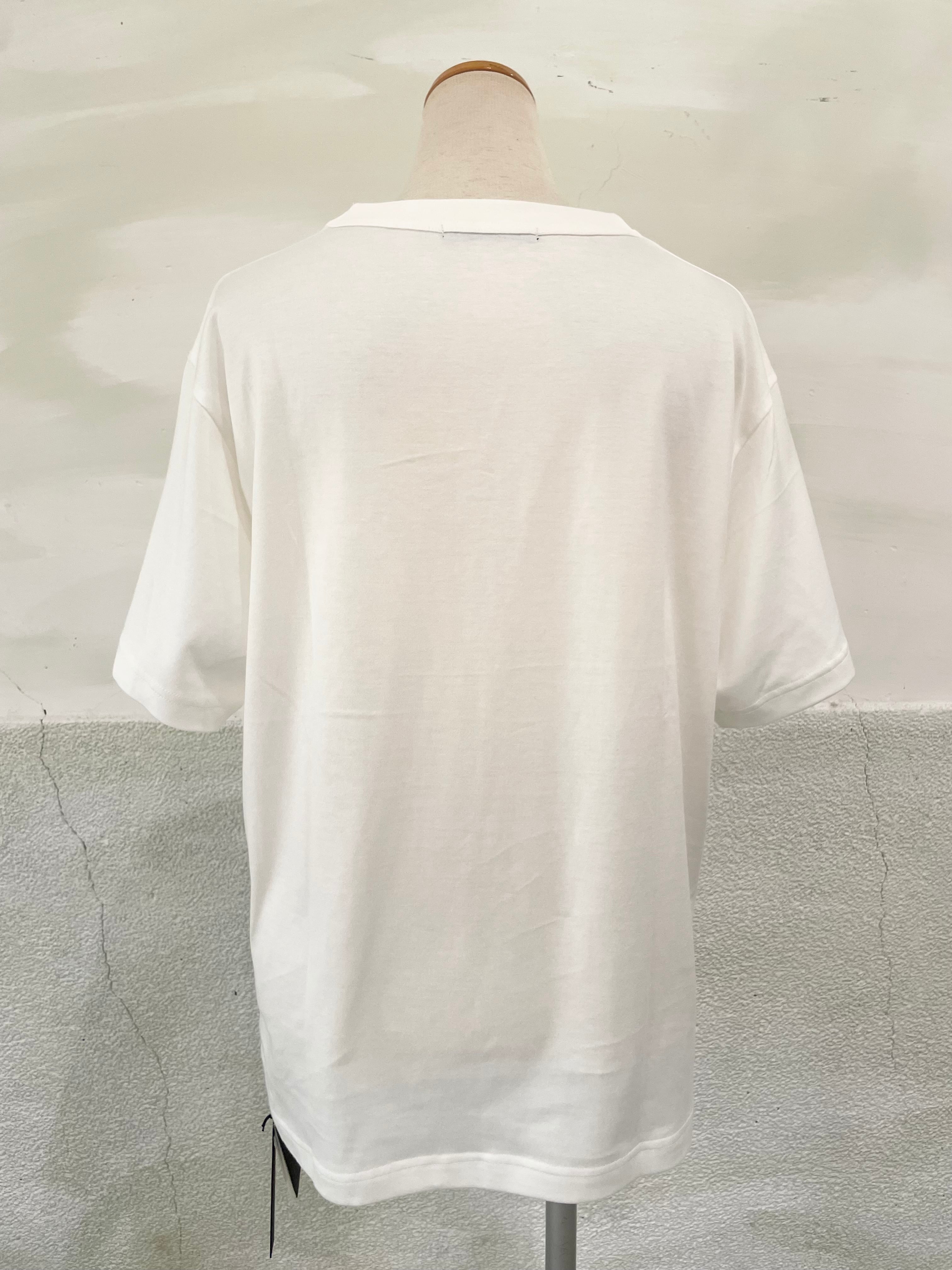 縦のラインを意識したシルエットのおかげで、さらっと被るだけでスッキリとしたスタイルが完成。あらゆるボトムスと相性のよいきれいめカジュアルTEEです。