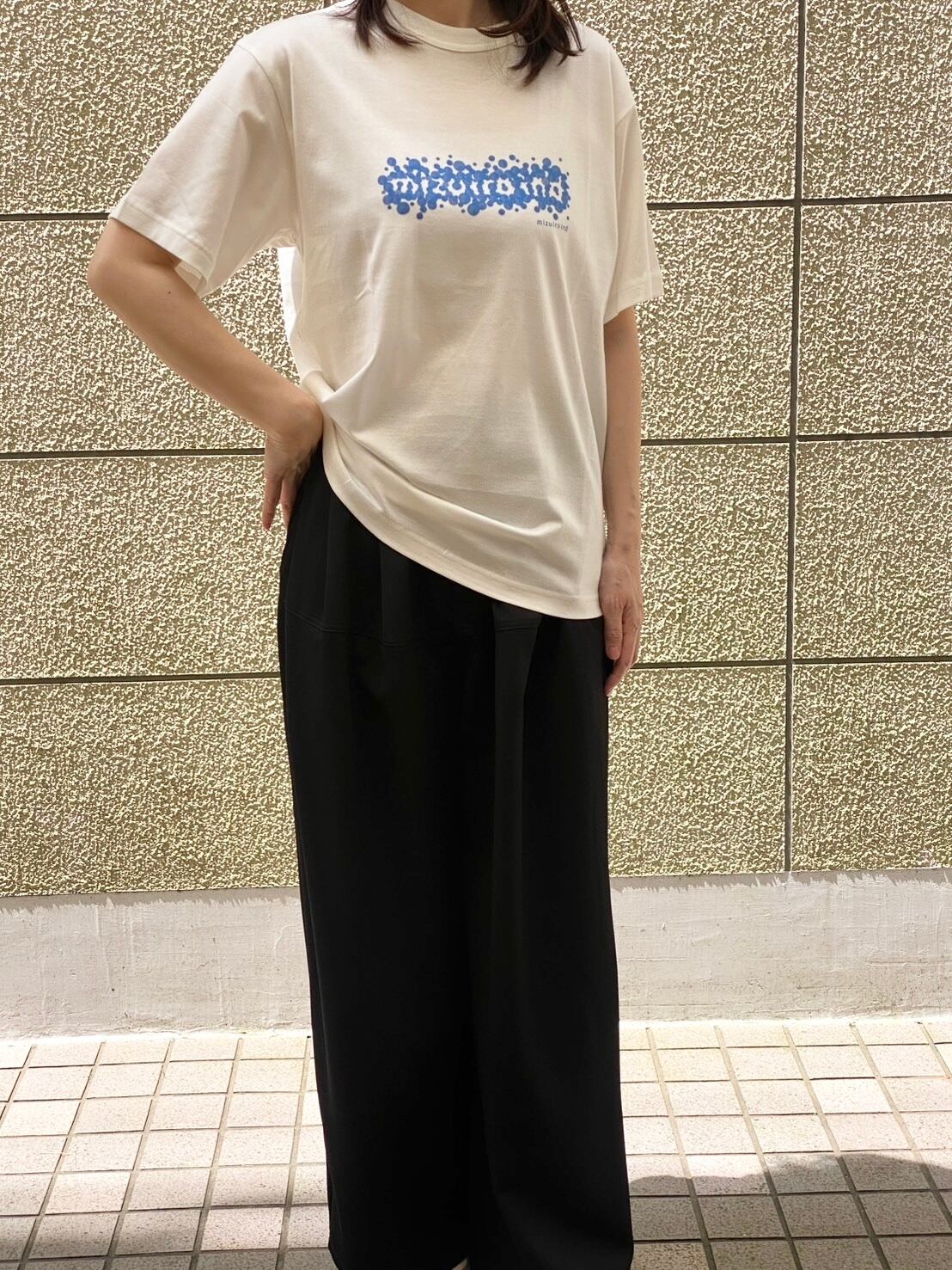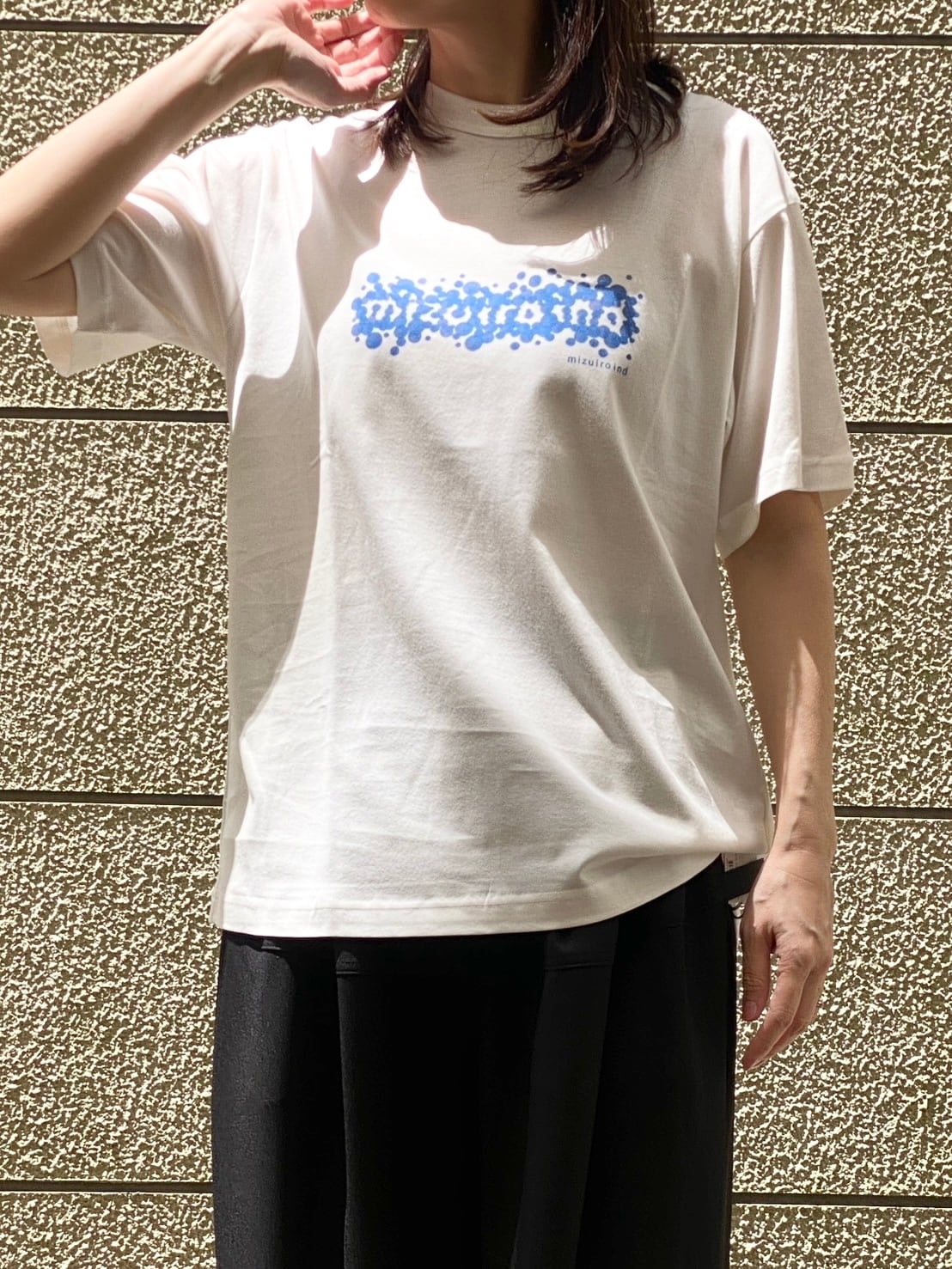 水たまりが浮かんだようなmizuiro indのロゴTシャツ