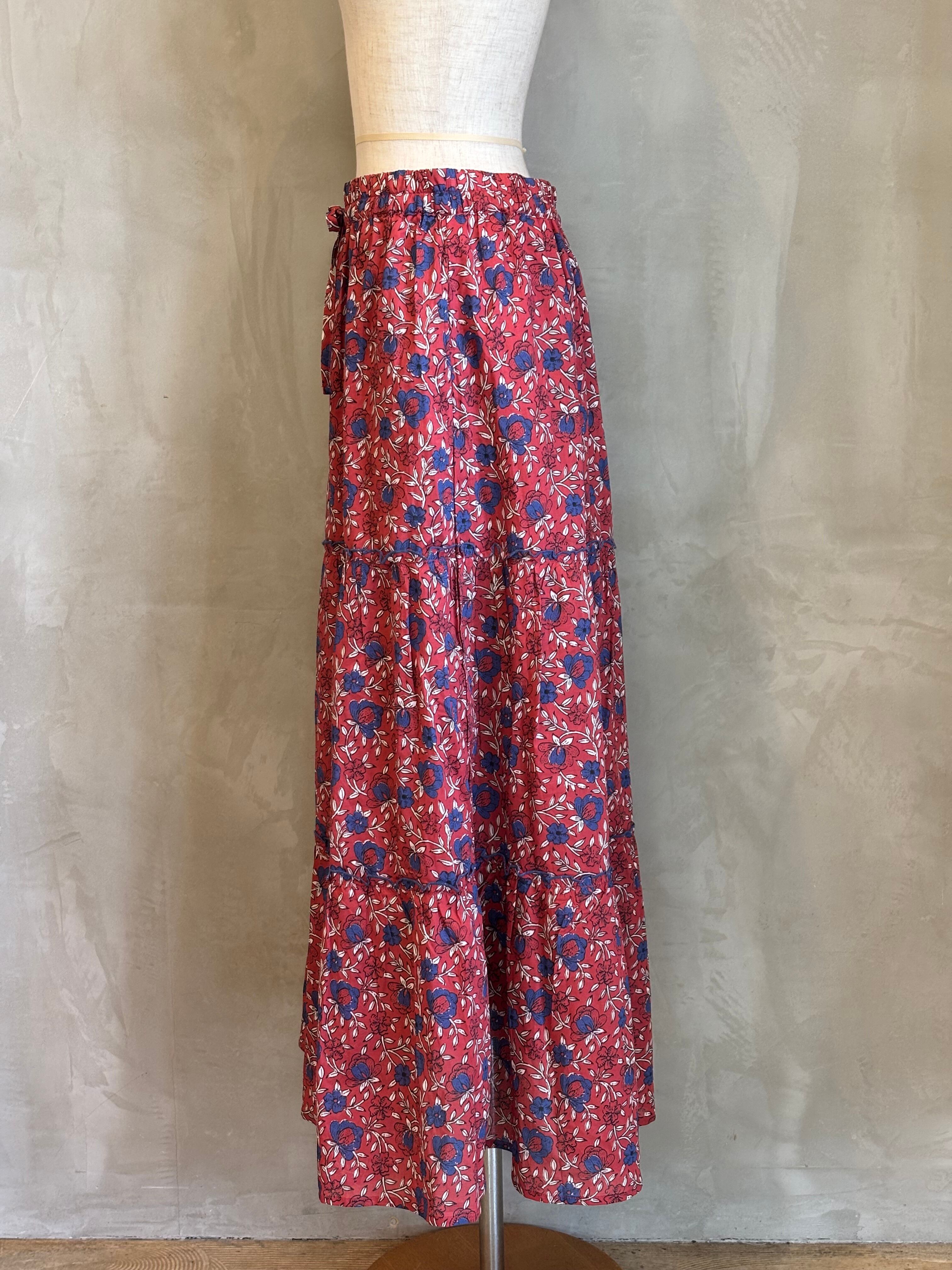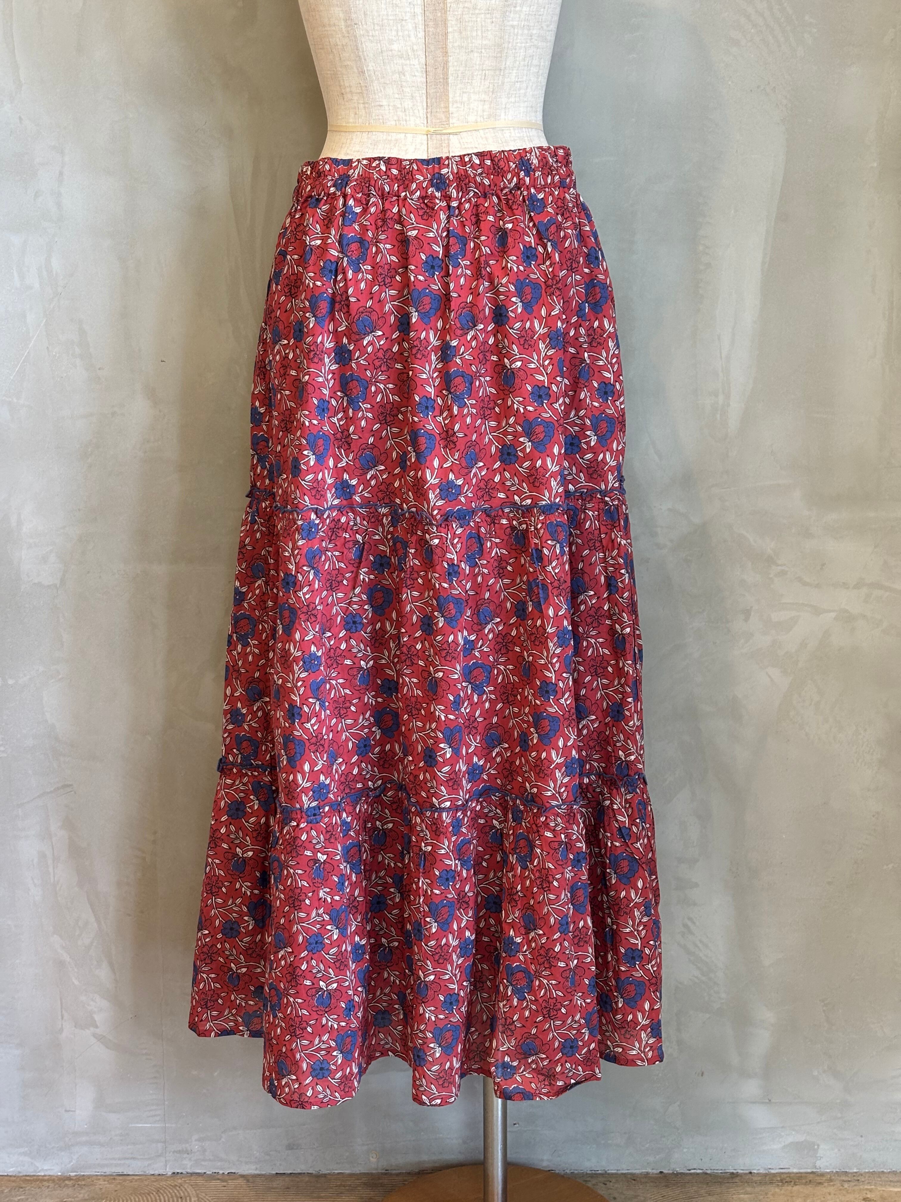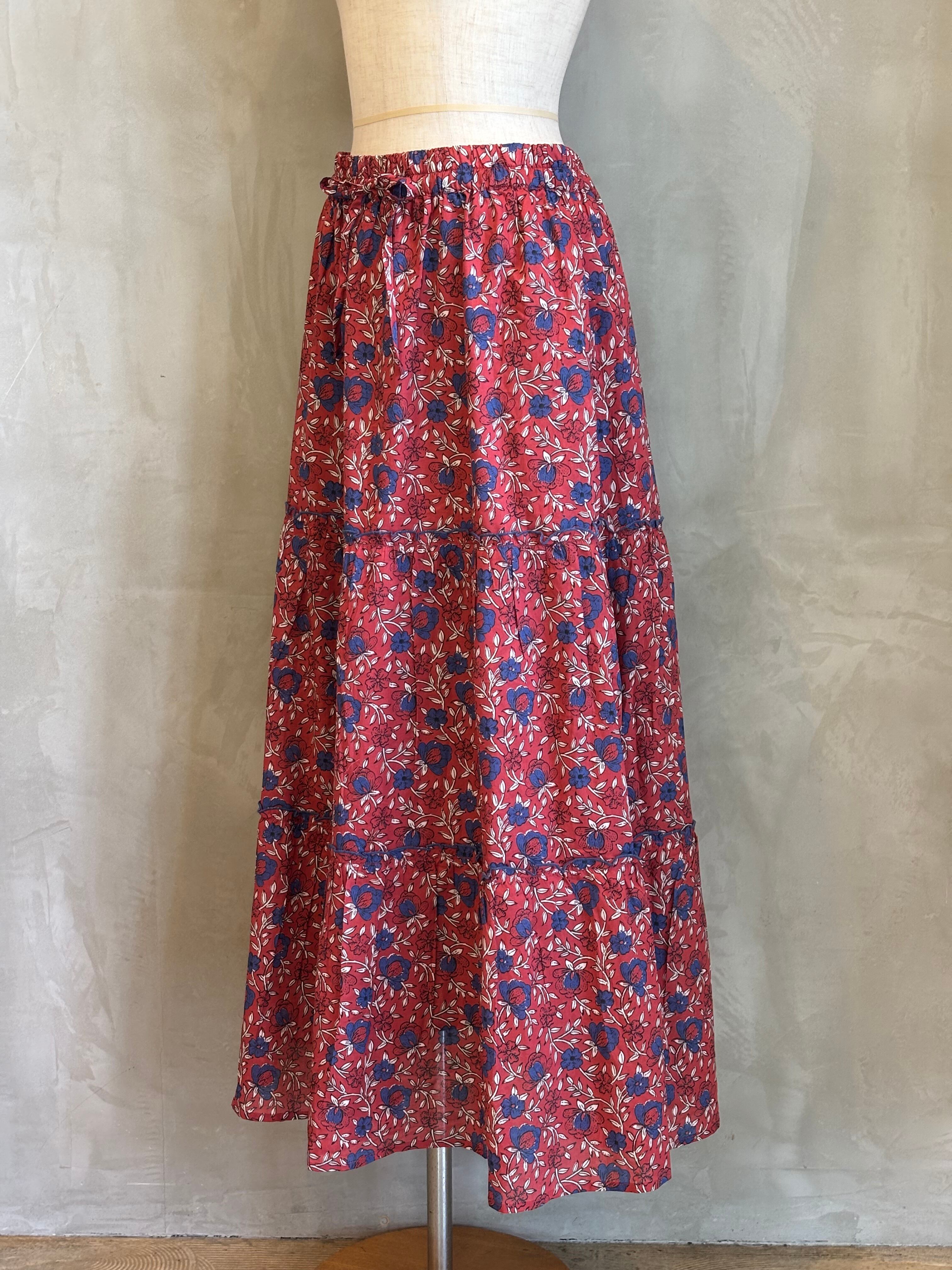 柔らかなインド綿を使用した、軽やかで透け感のあるコットンボイル素材のスカートです。