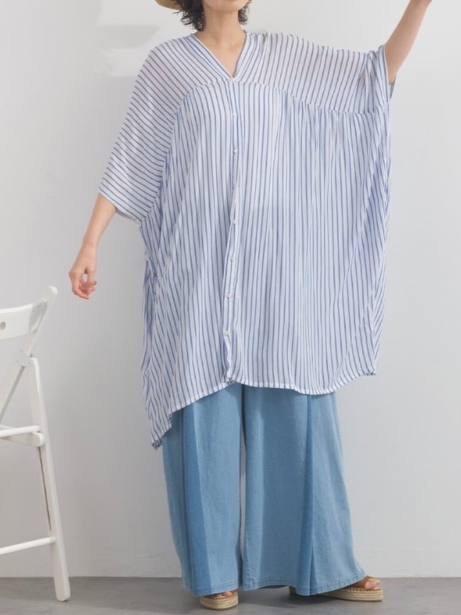 シワになりにくいレーヨンクレープは、冷房対策や旅行先での羽織りとしても最適。日常の様々なシーンに寄り添う、大人のためのマルチな一着です。