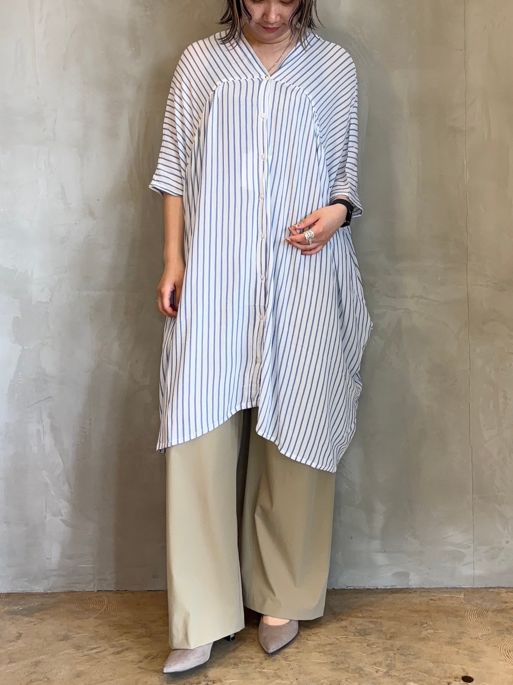 一枚で纏えば、すとんと落ちるシルエットが際立つエレガントな装いに。