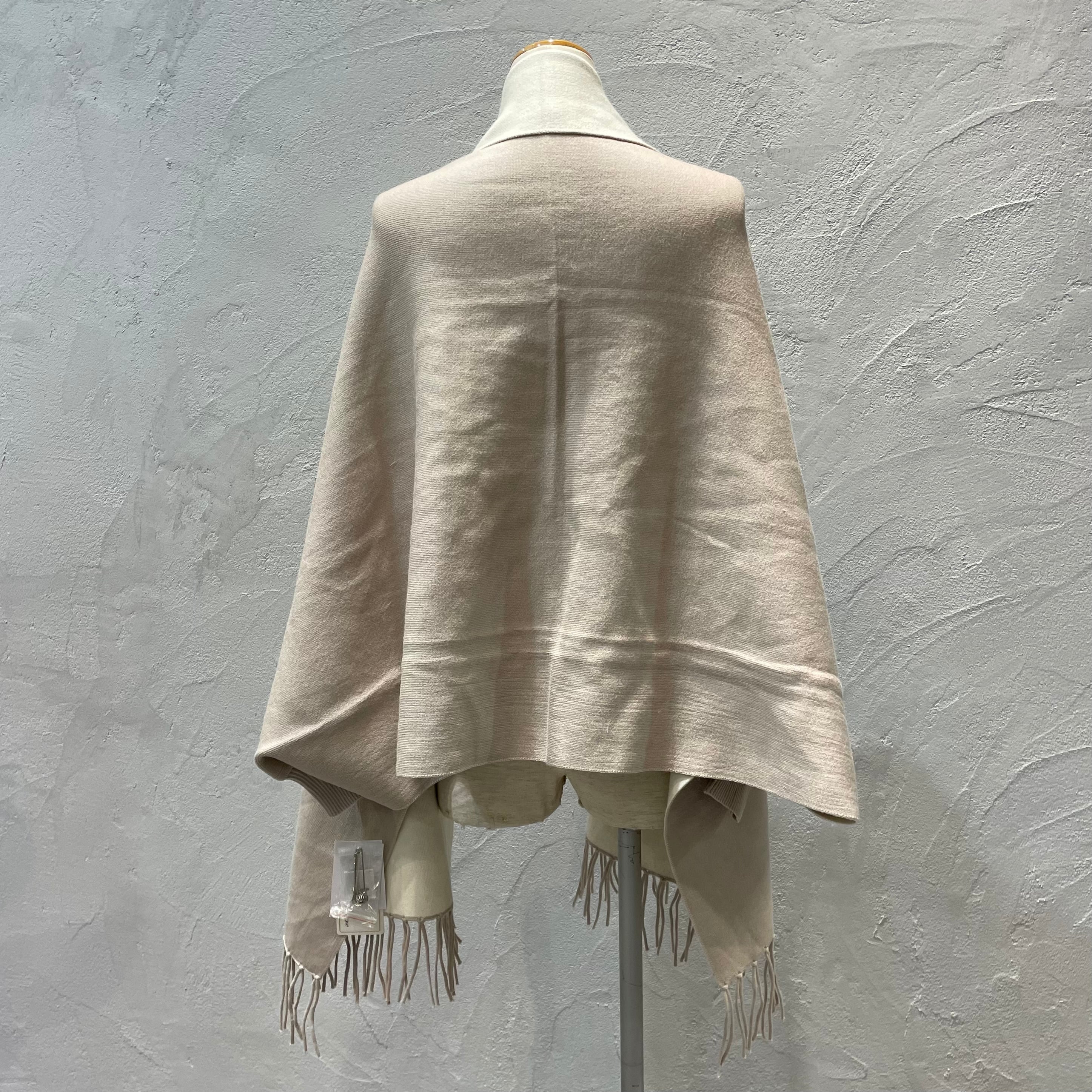どんなシーンにも活躍するカーディガンにもなるニットストールです。