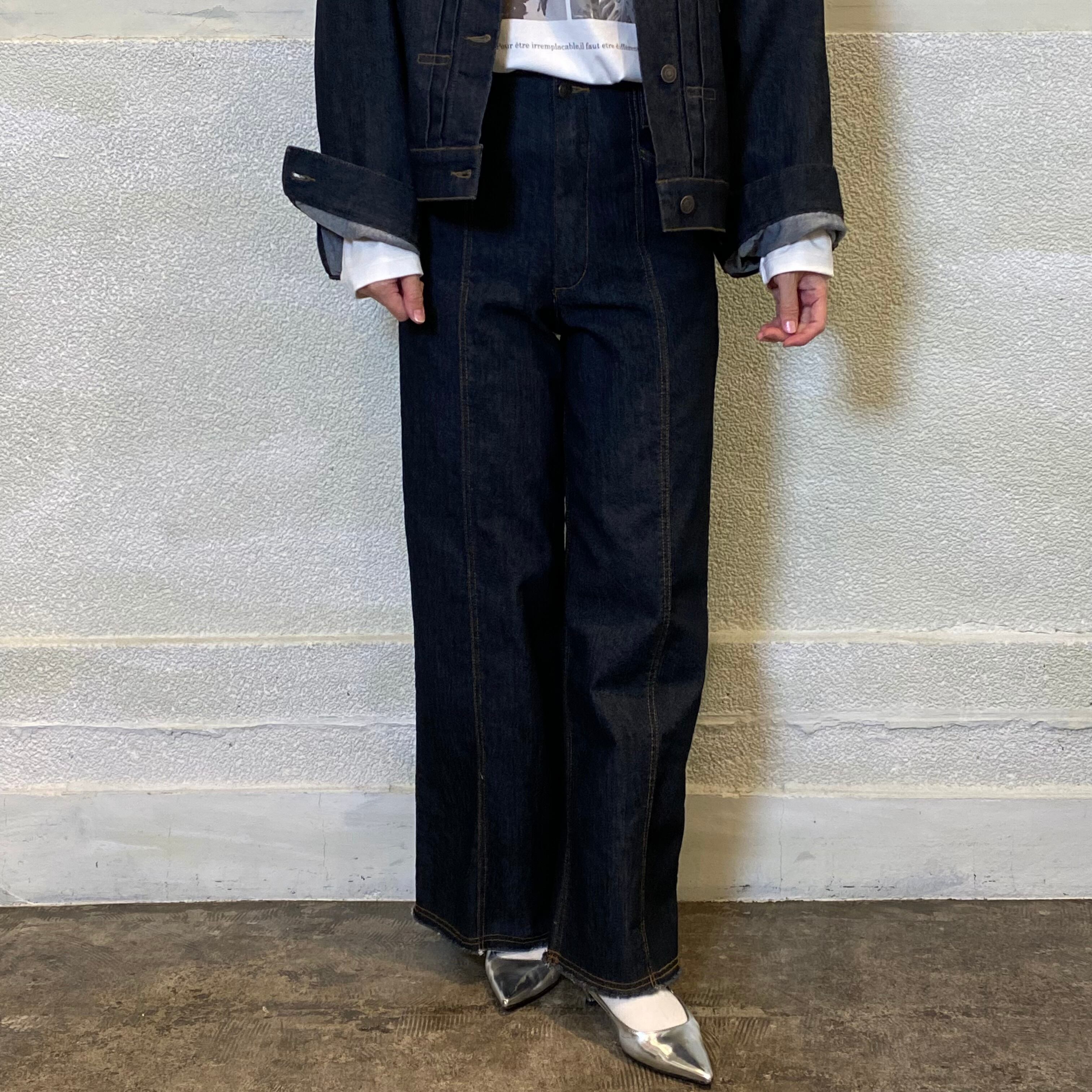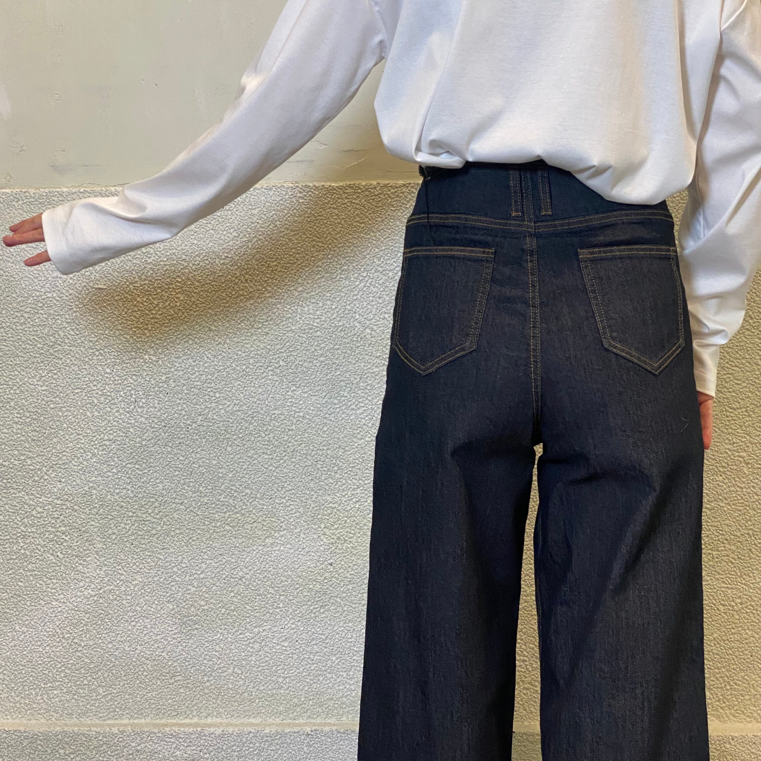 ハイウエスト+フロント中心にステッチをいれ、Iラインを強調しスタイルアップを◎