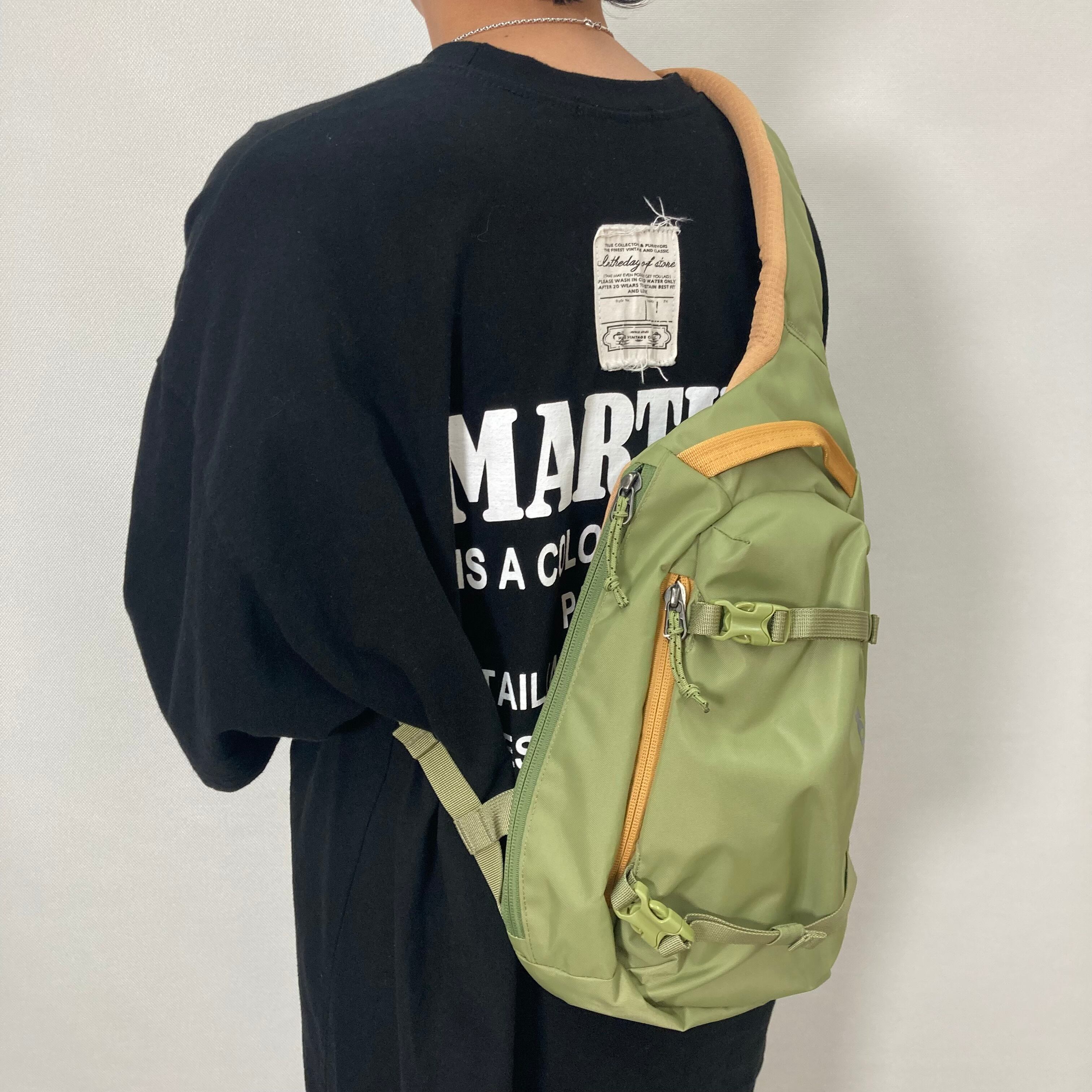 自転車でも徒歩でもバスでも、適度な大きさと整頓機能によりどこへでも携帯でき、体にぴったりとフィットして快適なスリング型のデザイン。