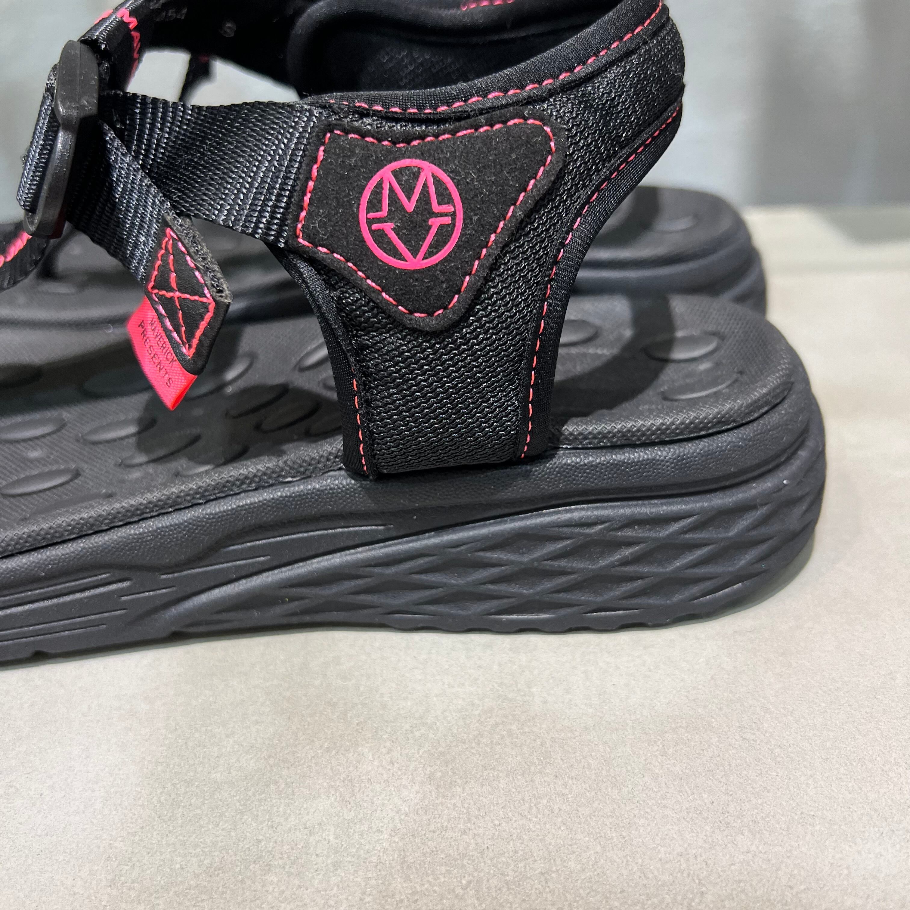 ベルトに印字されたロゴも新鮮で、アウトソールは発砲素材の軽量リゾートサンダルです。