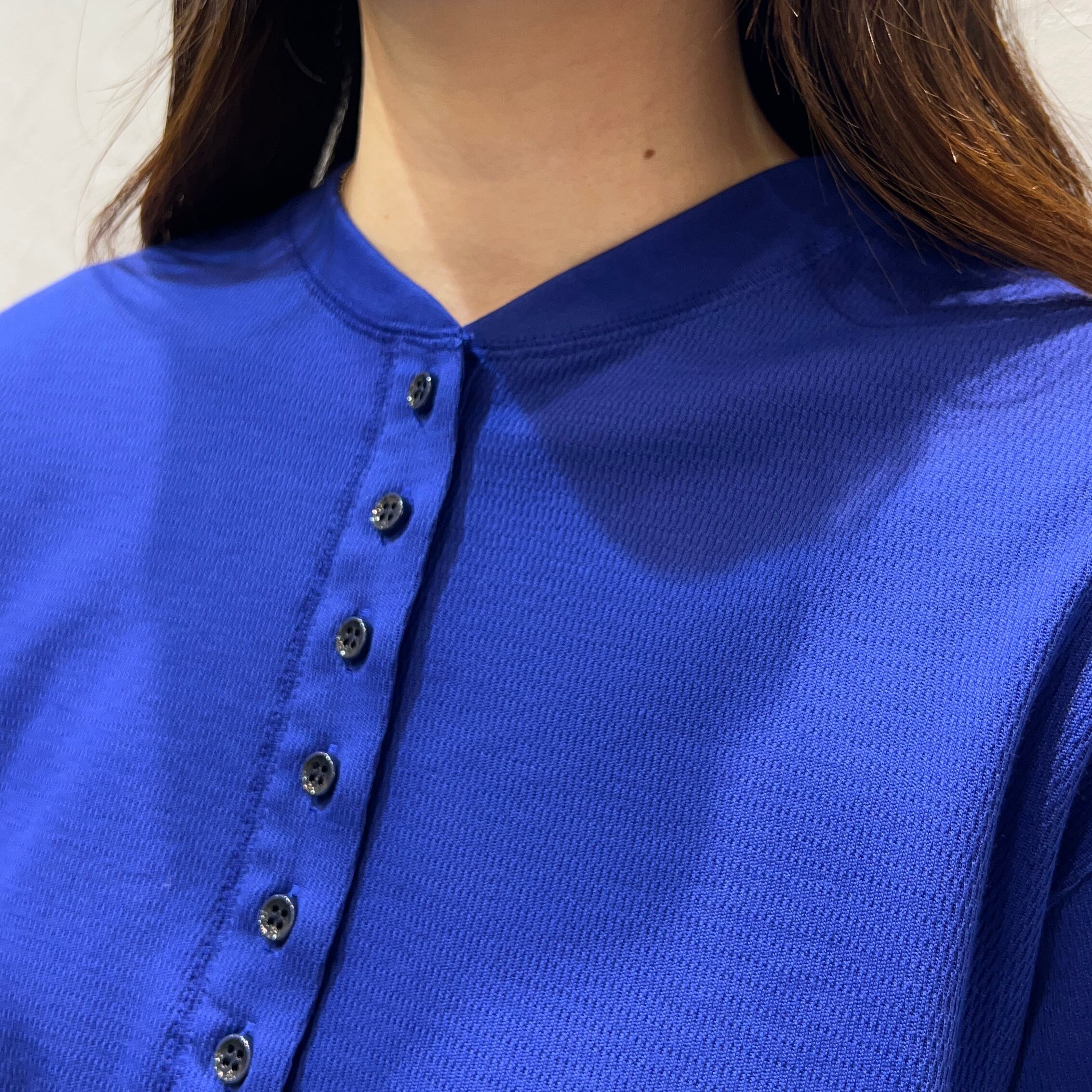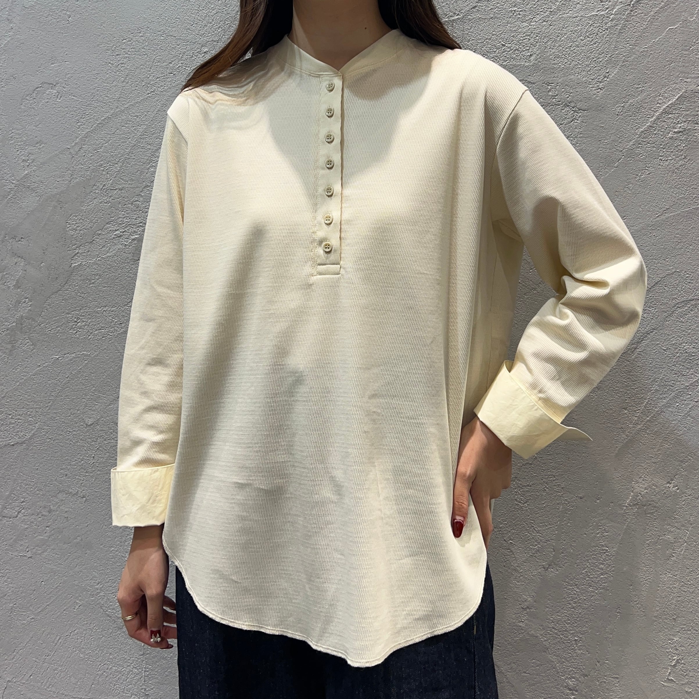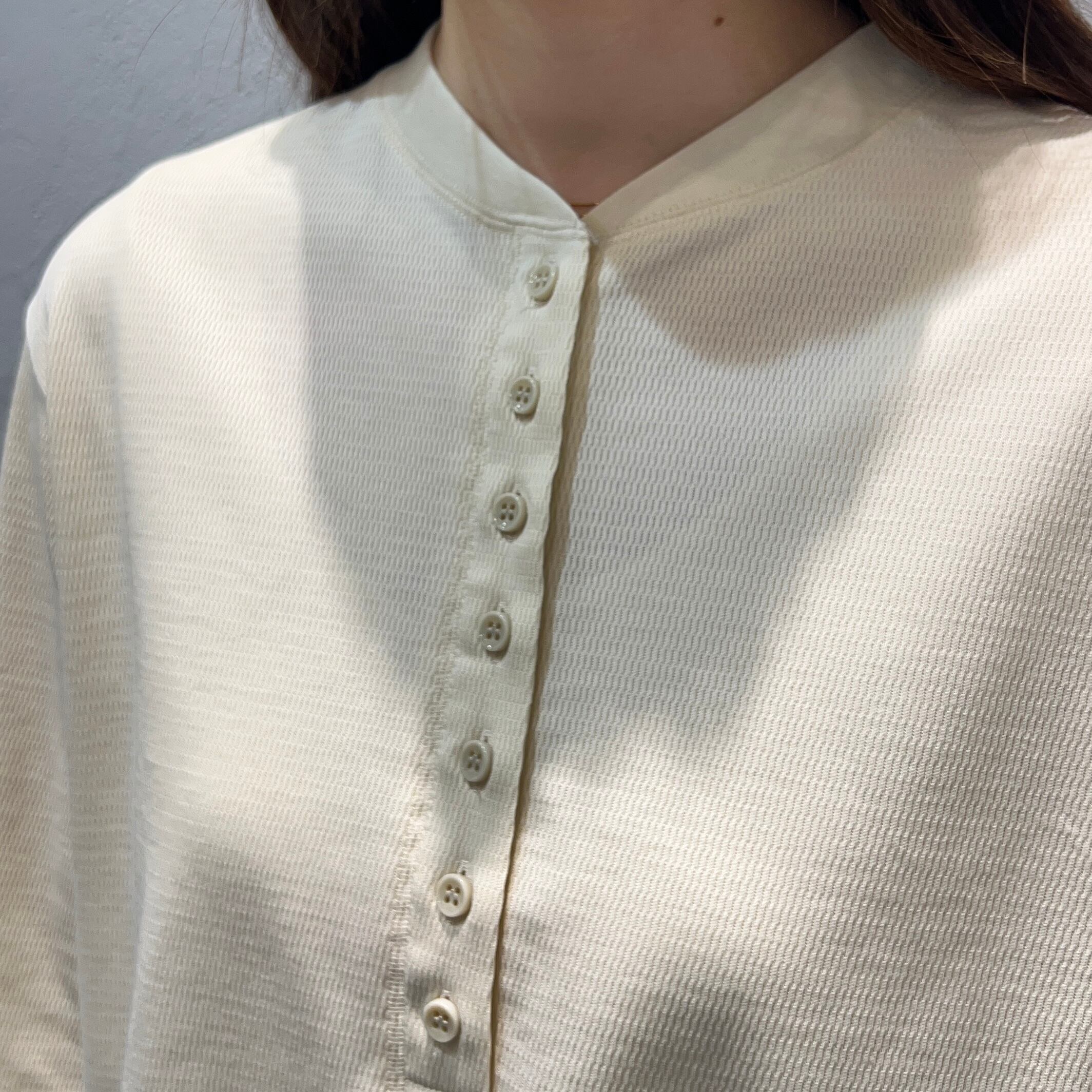 特徴的なハニカム(蜂の巣)状の凹凸は奥行きのある表情だけでなく、直接肌に触れる面が少ないので見た目以上にサラッとした着心地で、オールシーズン使えるアイテムに。