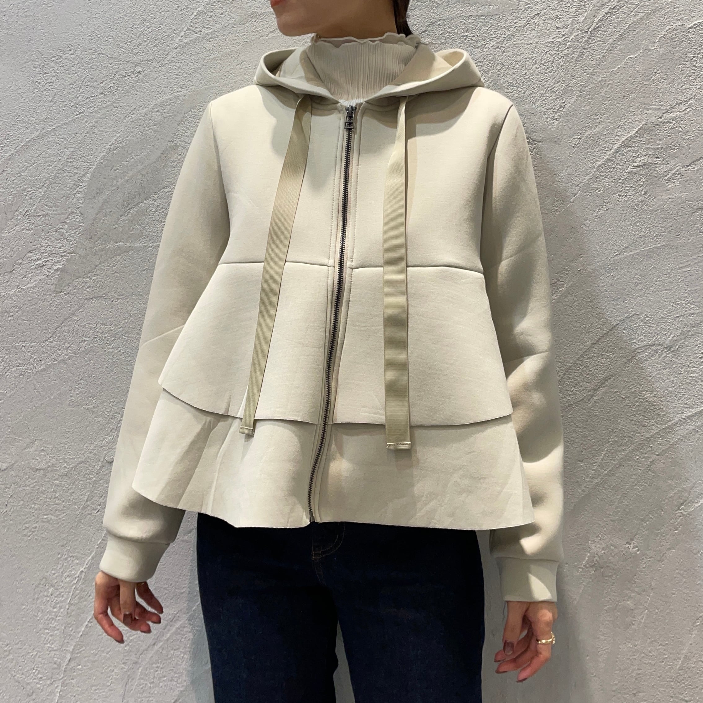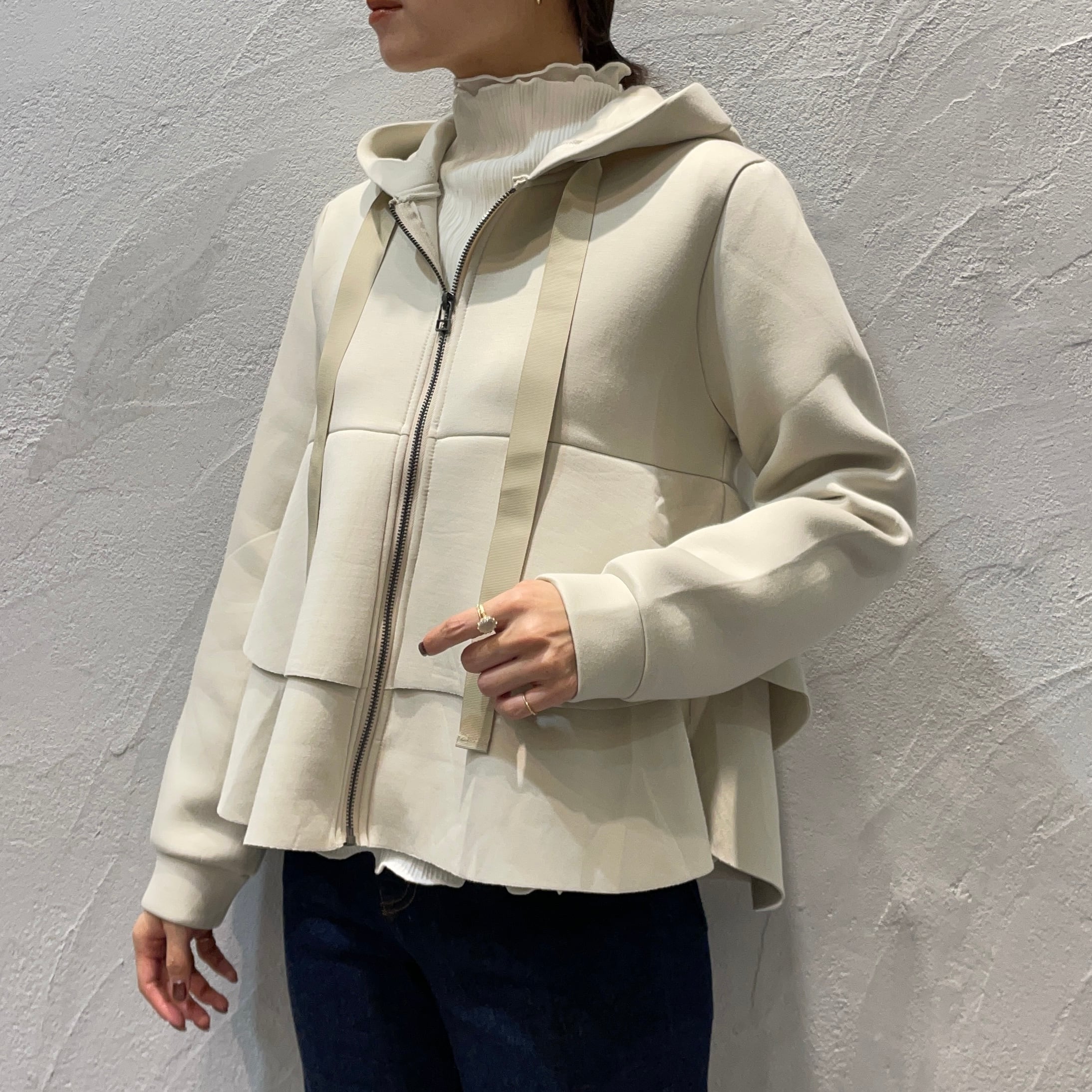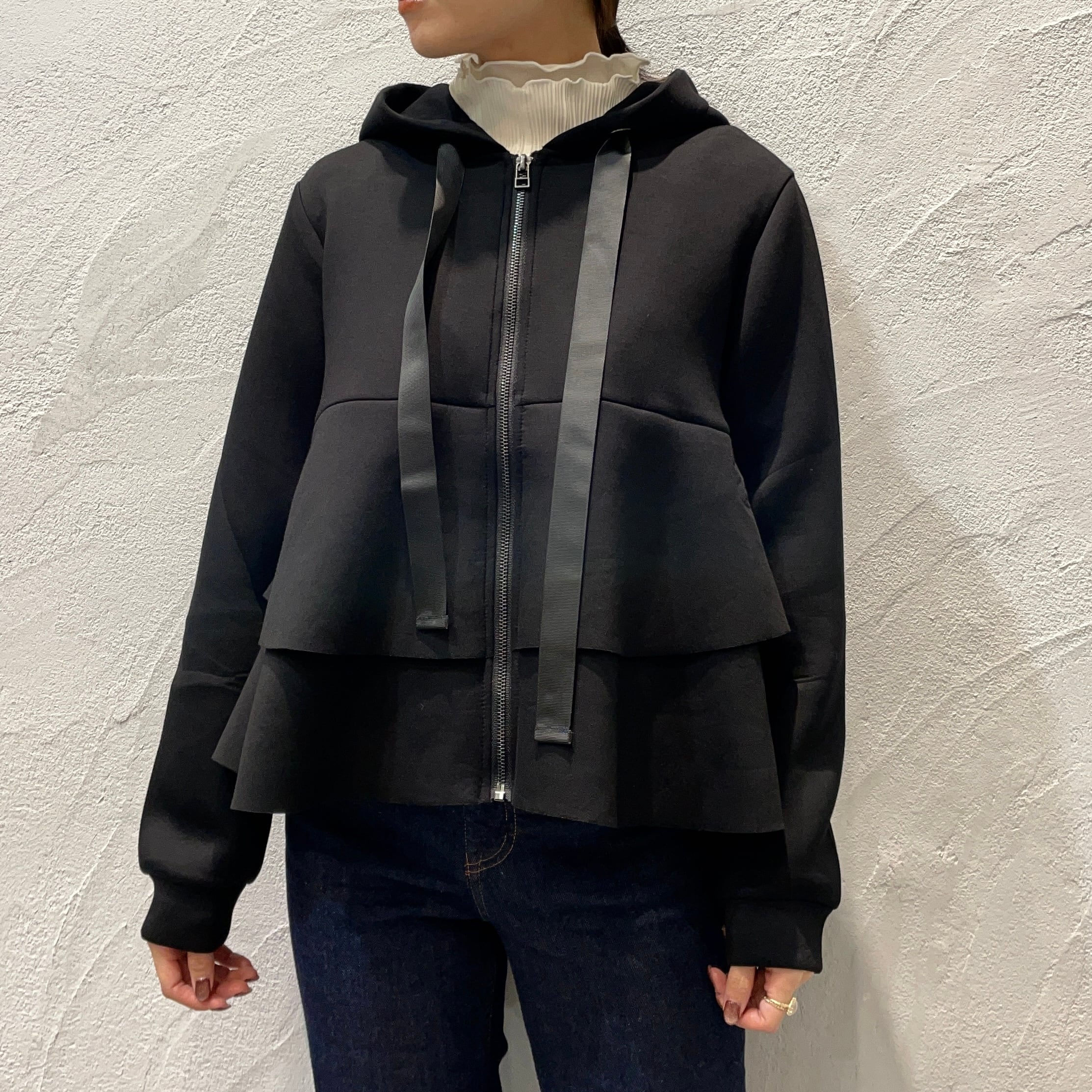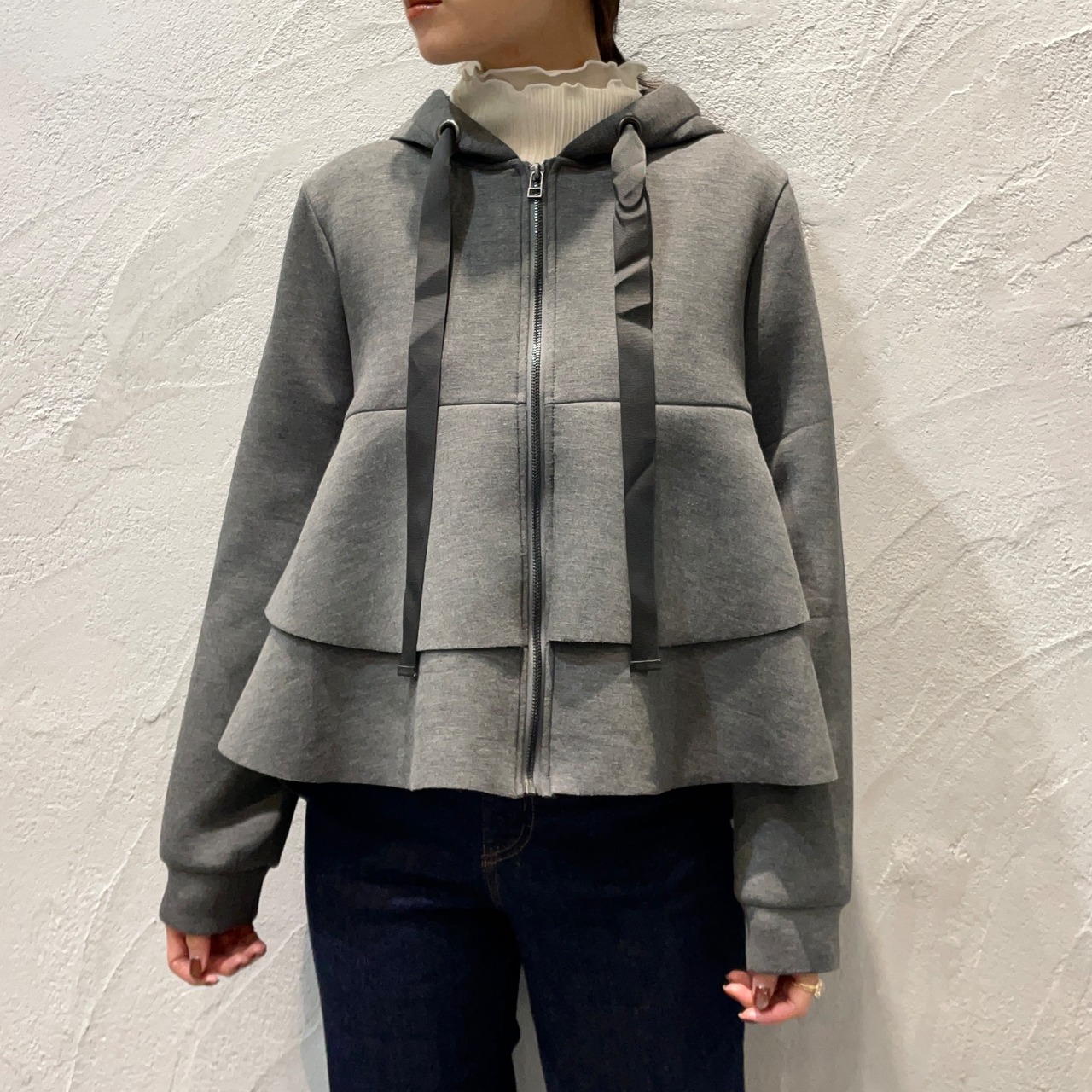 ウエストで2段になったフリルが、後ろから見ても、横から見てもとびきりキュートで、可愛いらしい印象のボンディングフリルパーカーです(*^◯^*)
