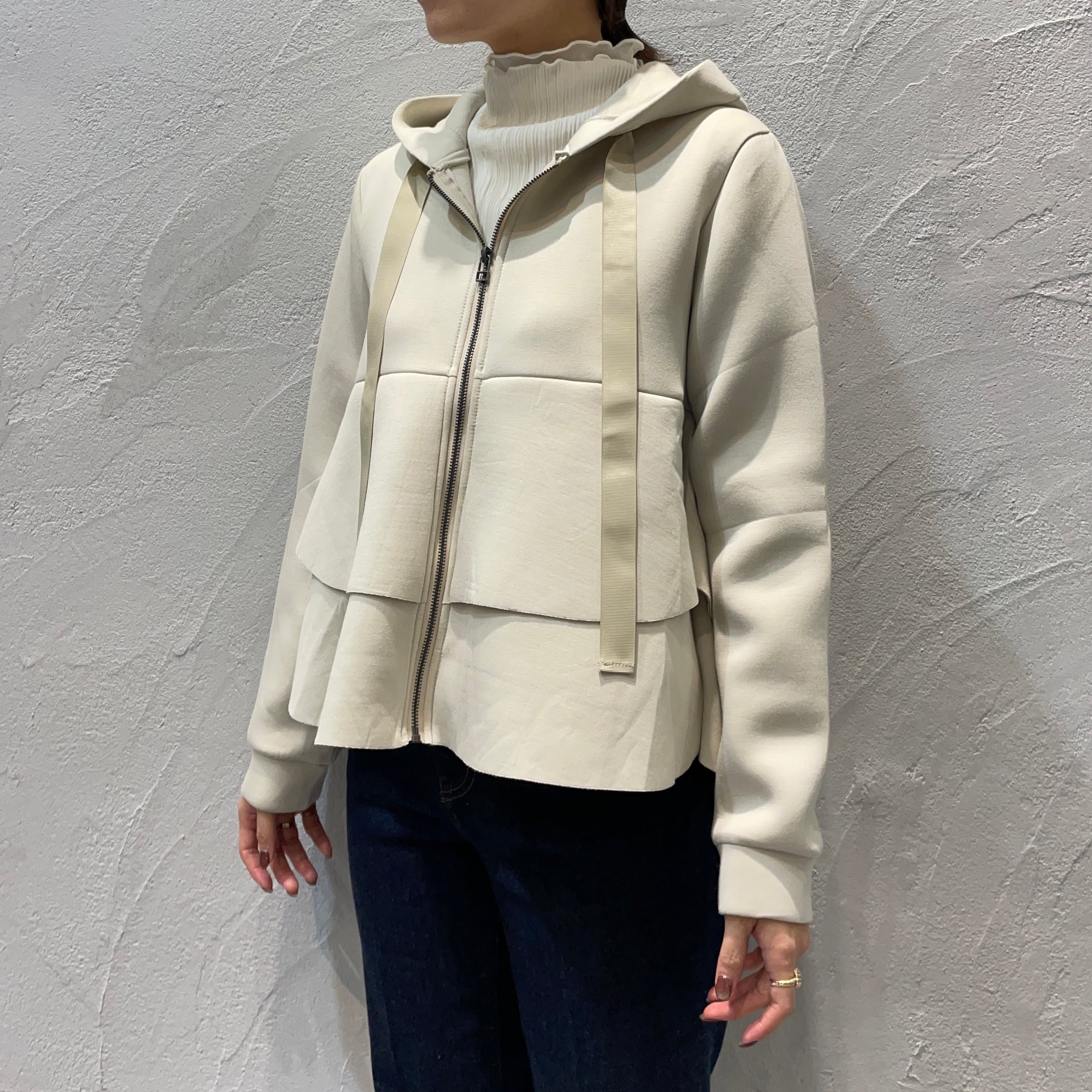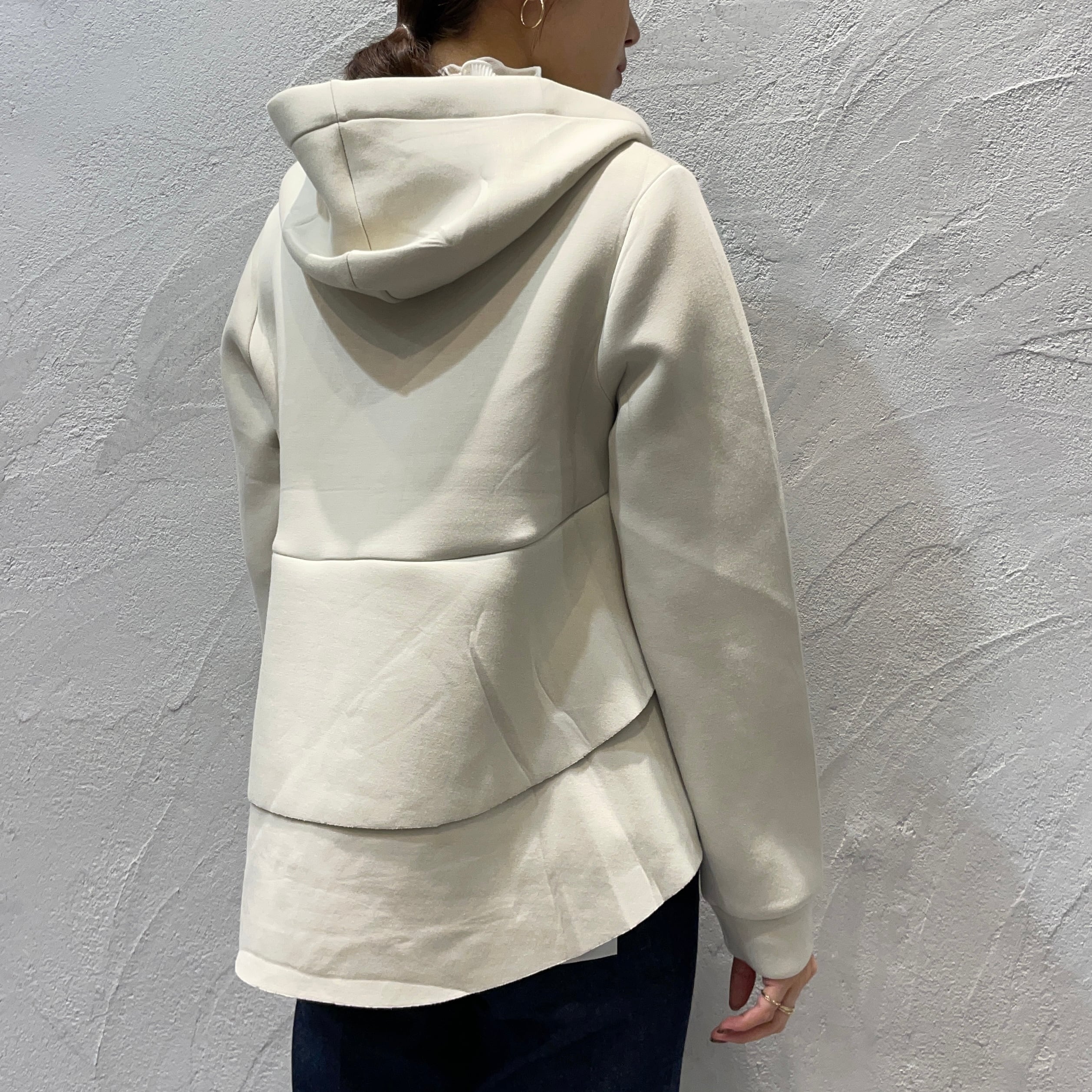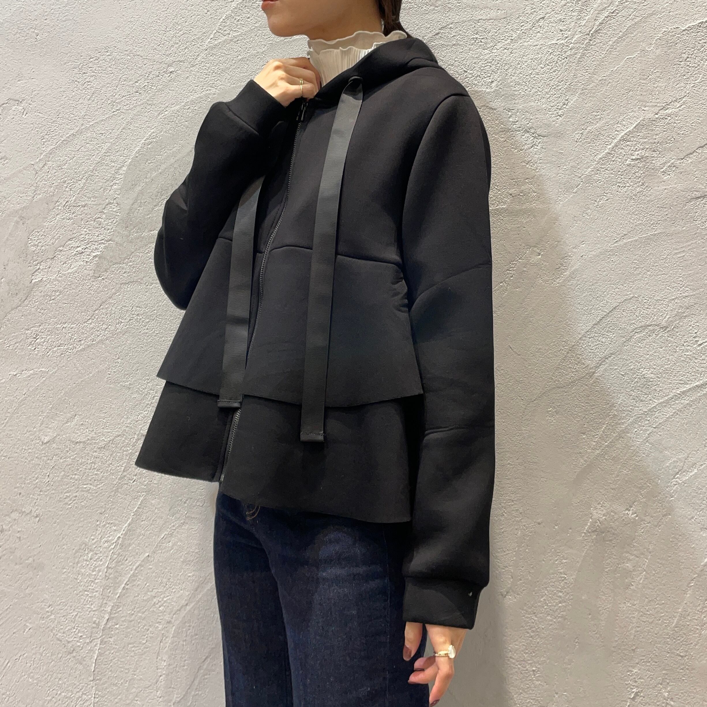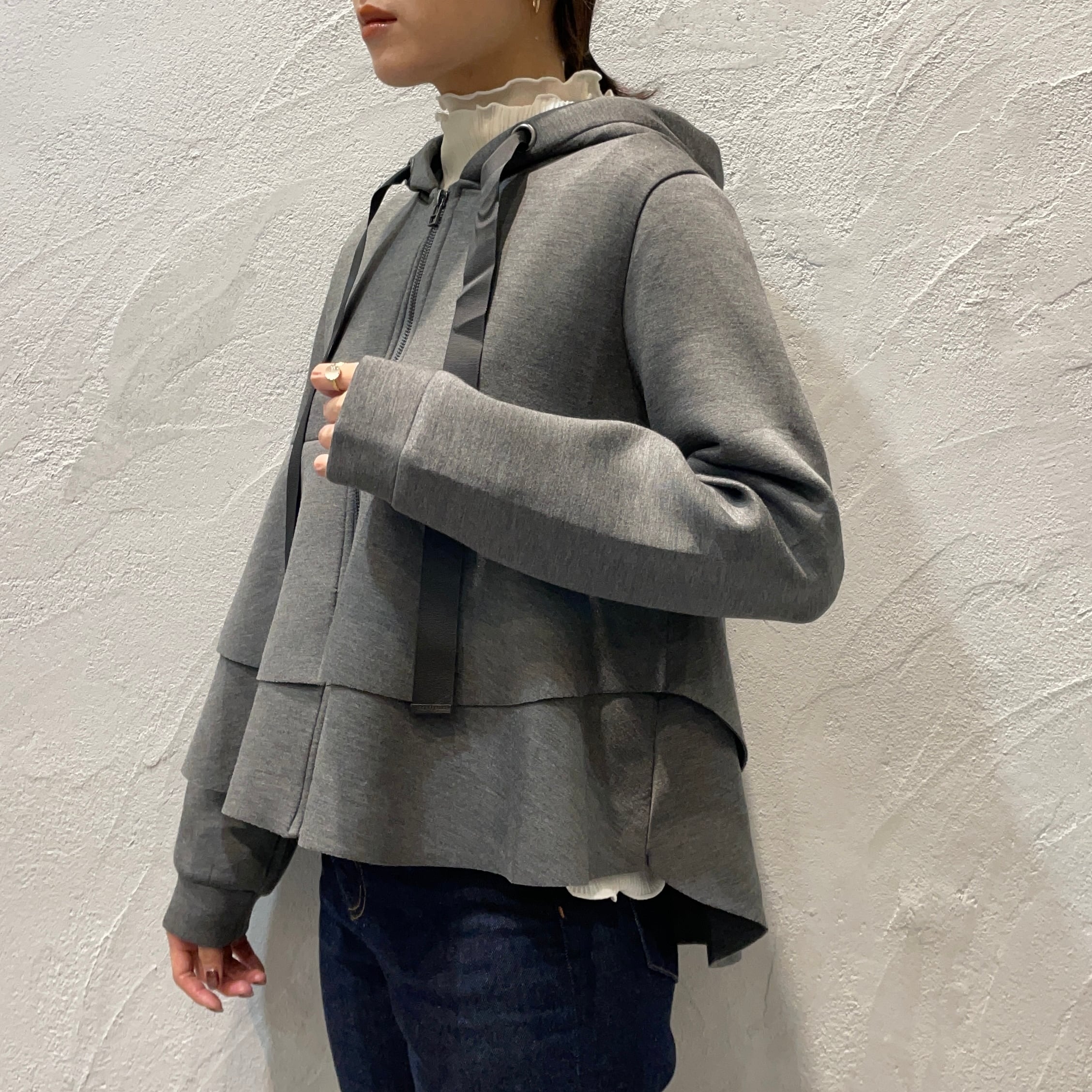 ウエストで2段になったフリルが、後ろから見ても、横から見てもとびきりキュートで、可愛いらしい印象のボンディングフリルパーカーです(*^◯^*)