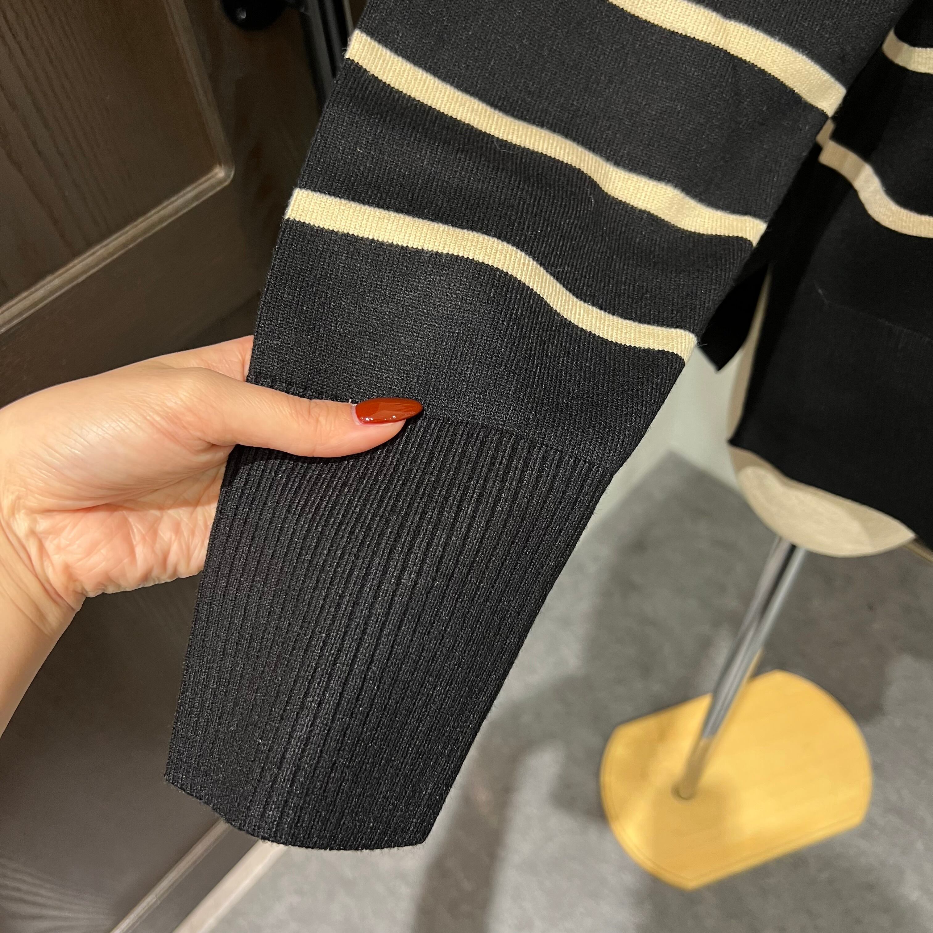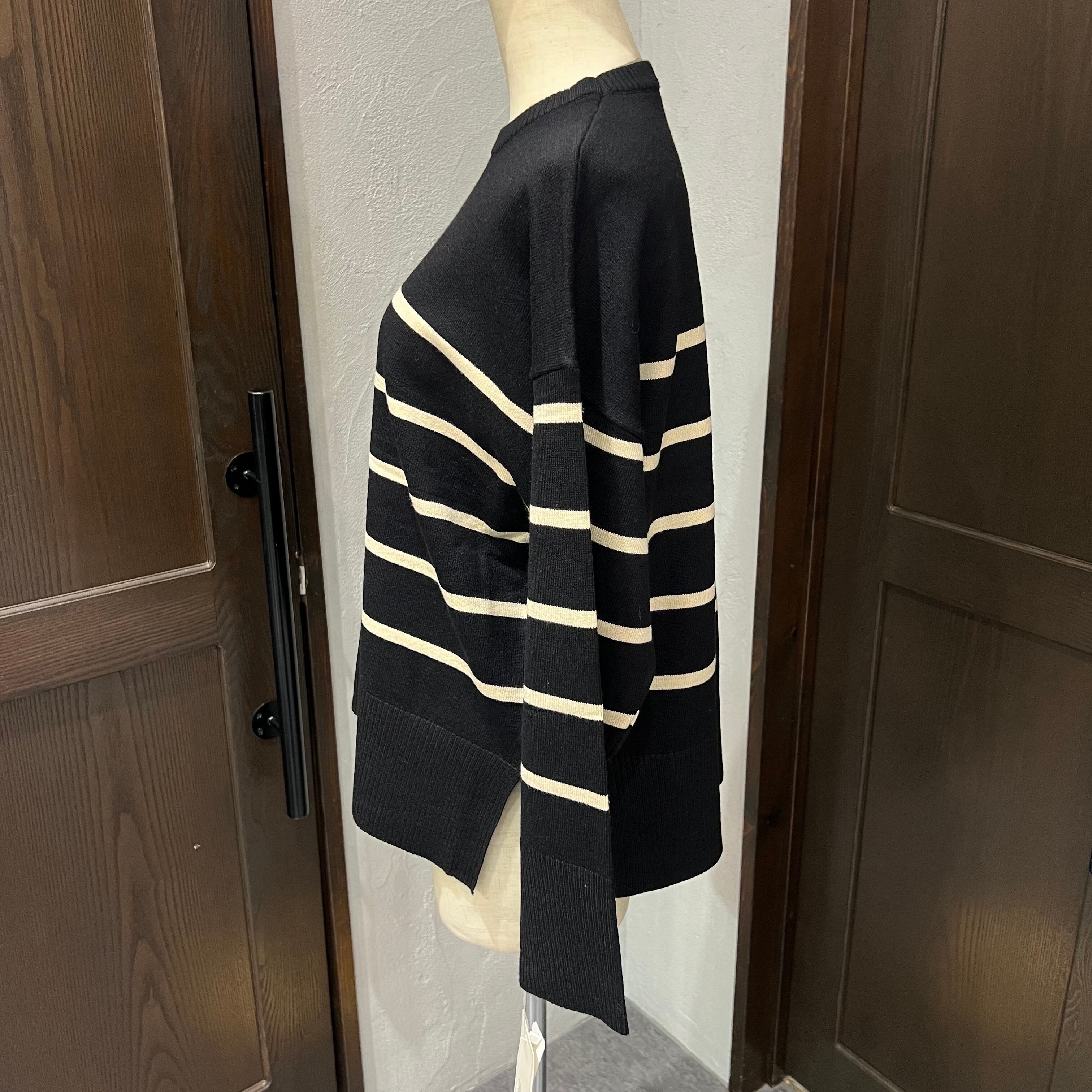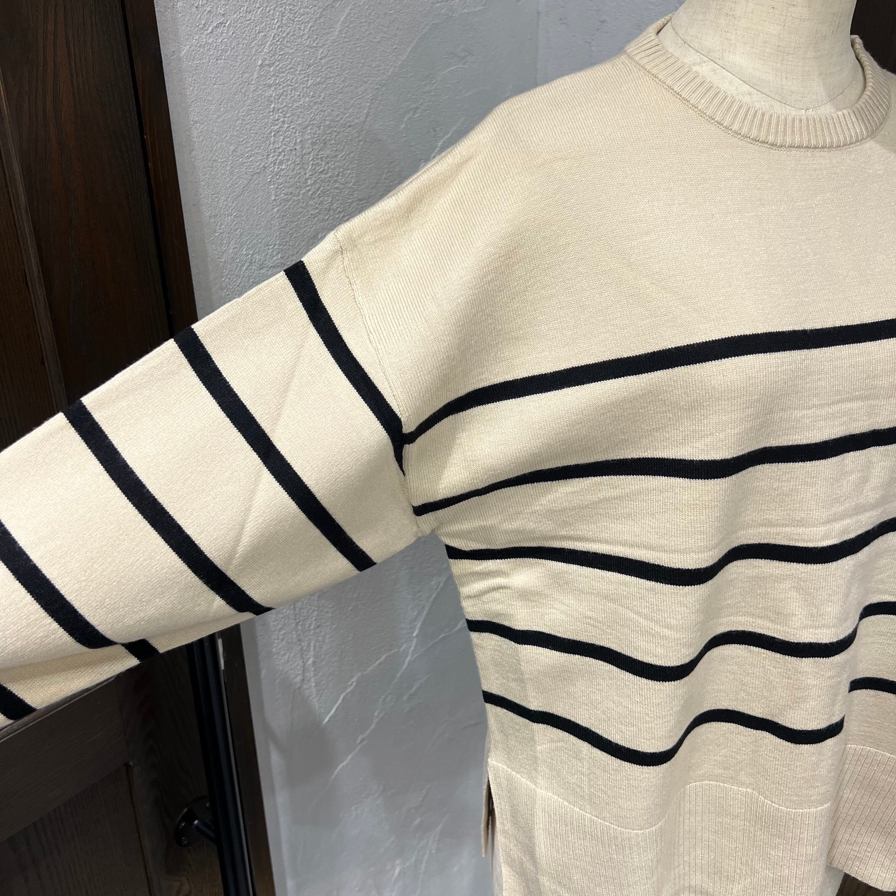 ややゆったりとしたサイズ感のボーダーニット。