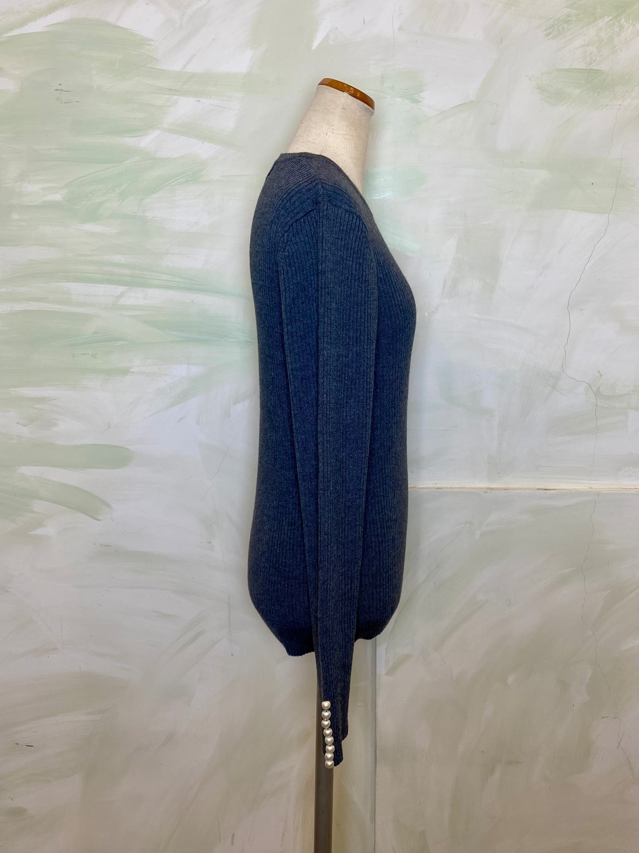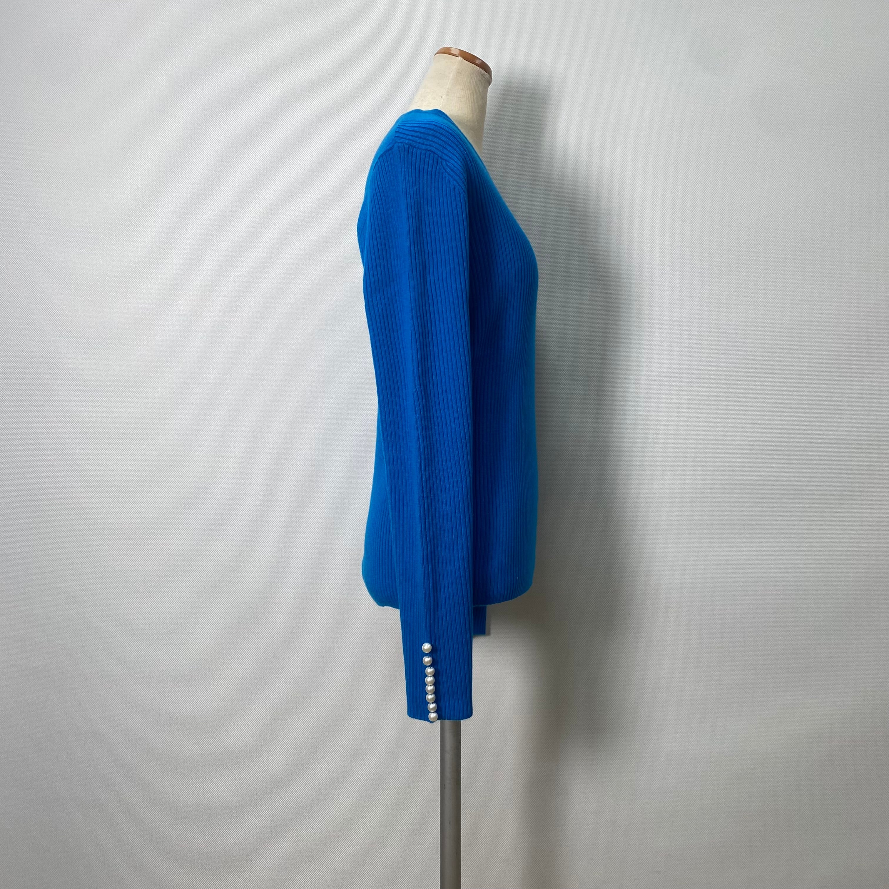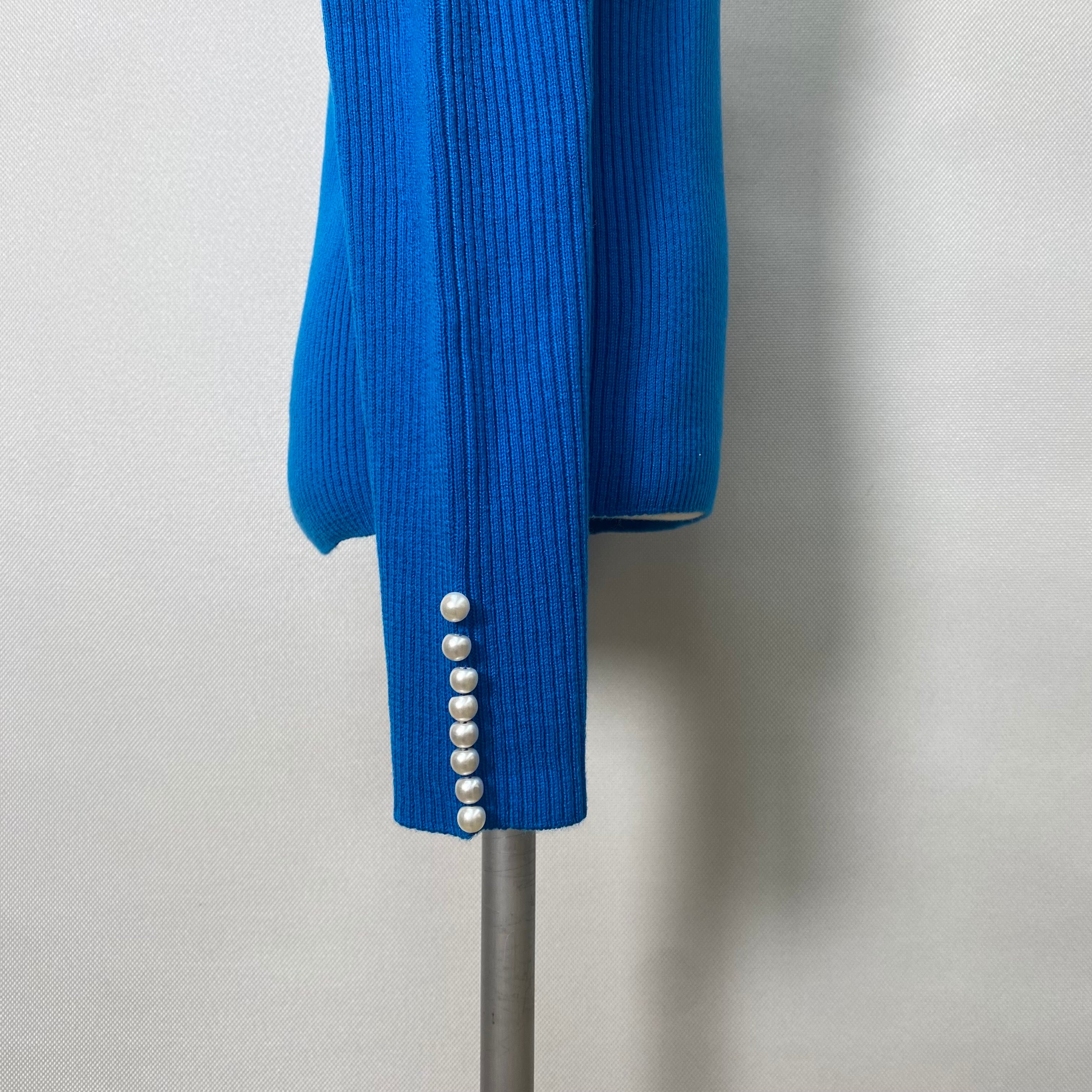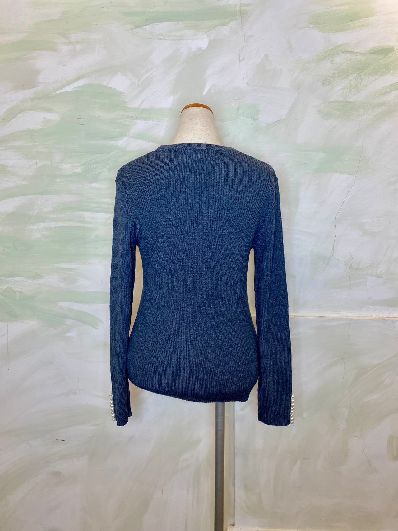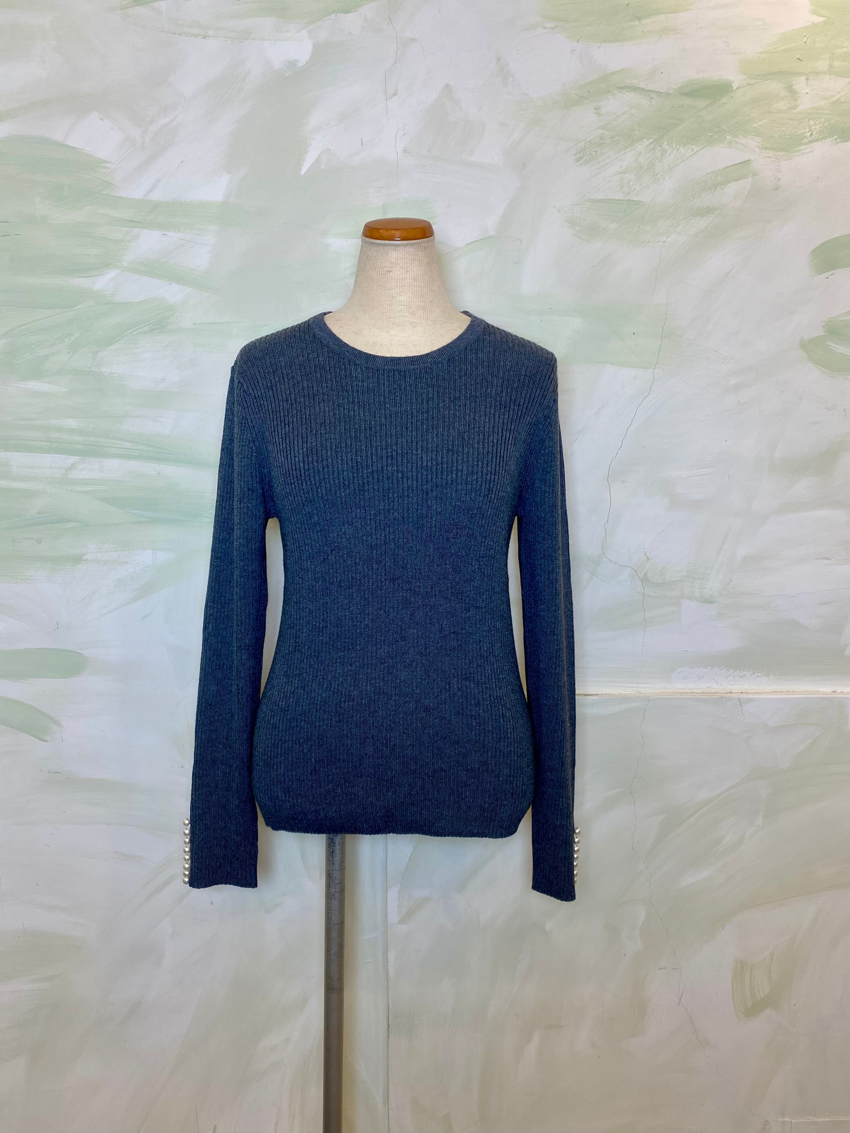 シンプルながら華やかさを演出する、LILLY LYNQUEの袖パールクルーネックリブニットが登場!