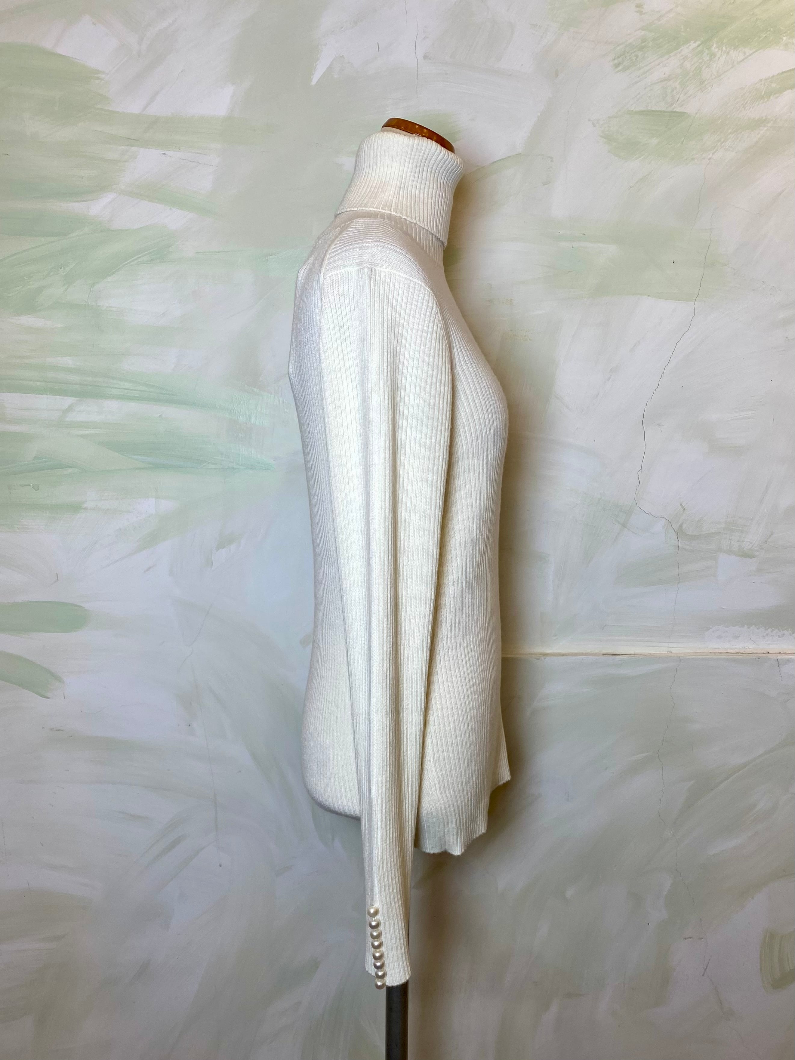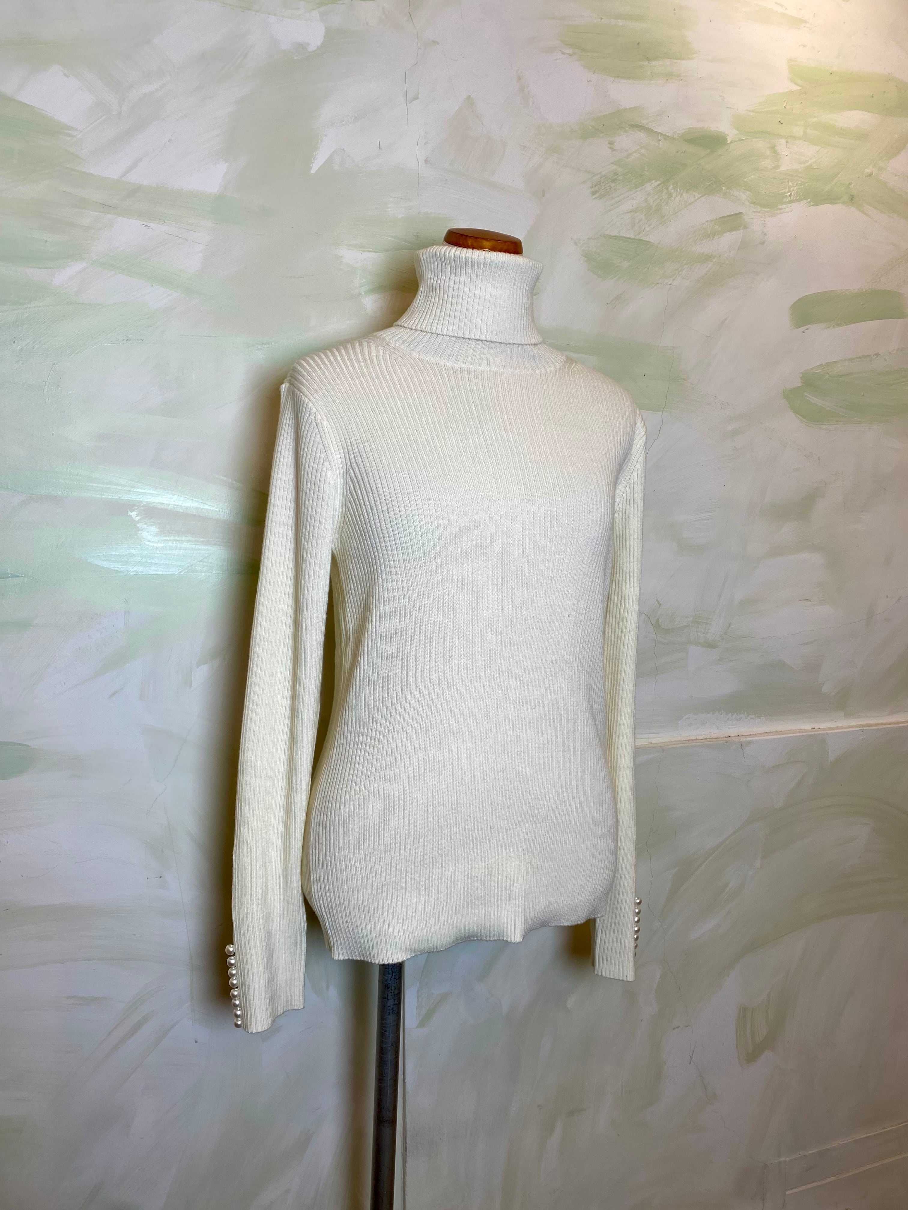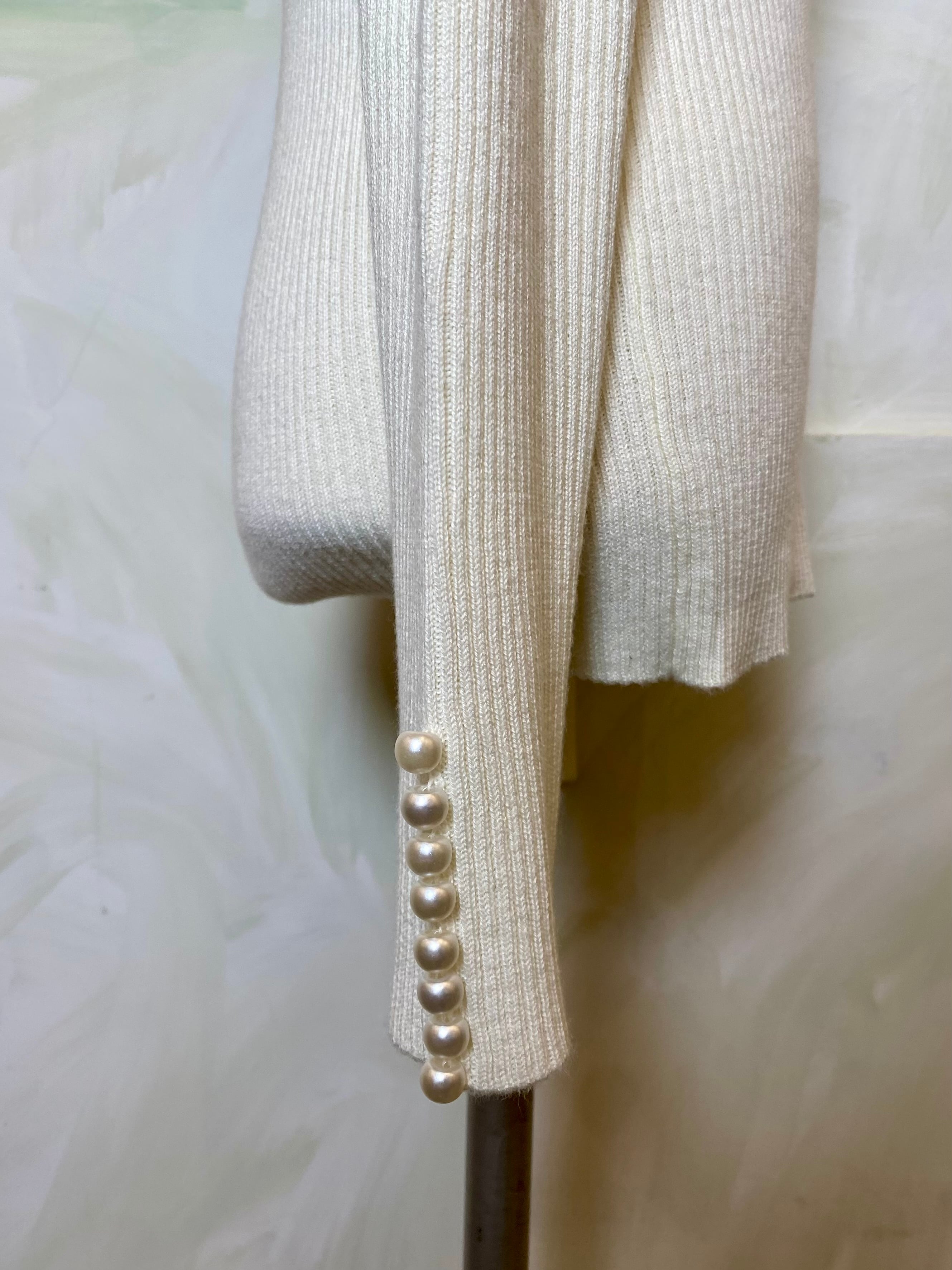 が新登場! 上品な袖口のパールがアクセントとなり、ベーシックなタートルネックながら