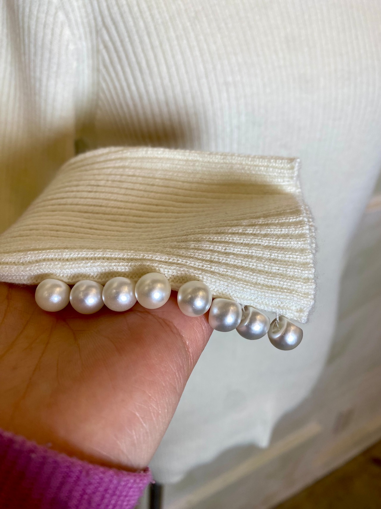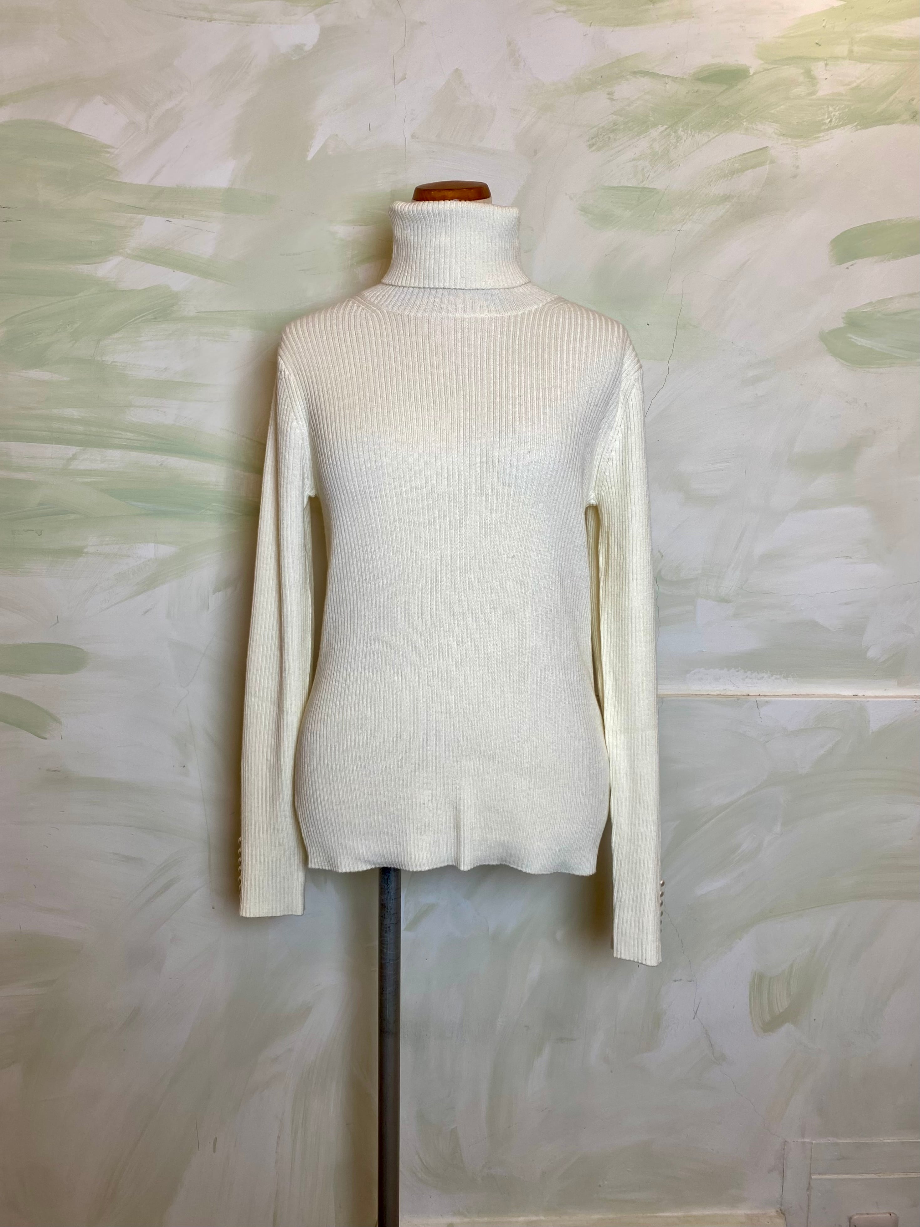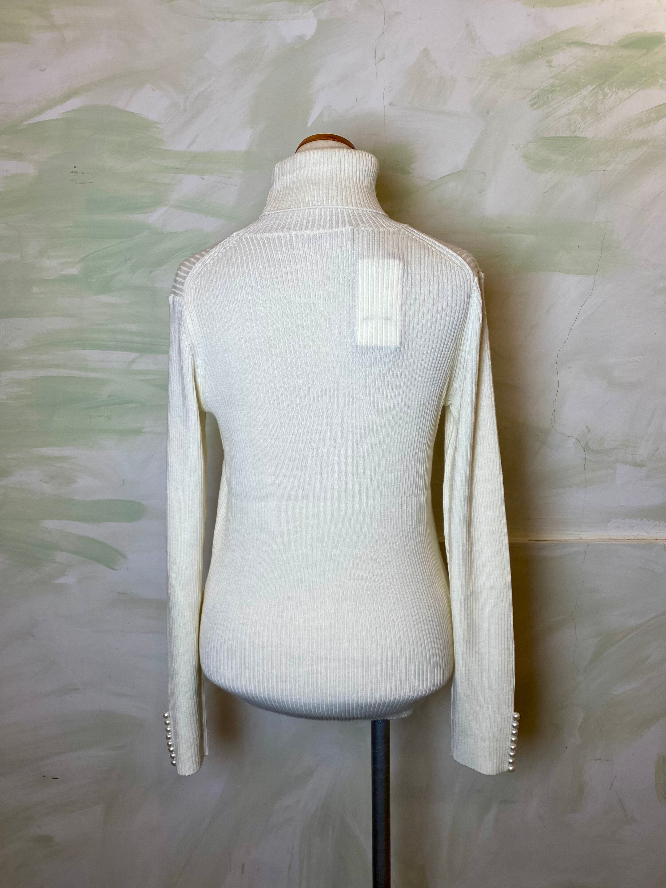 が新登場! 上品な袖口のパールがアクセントとなり、ベーシックなタートルネックながら