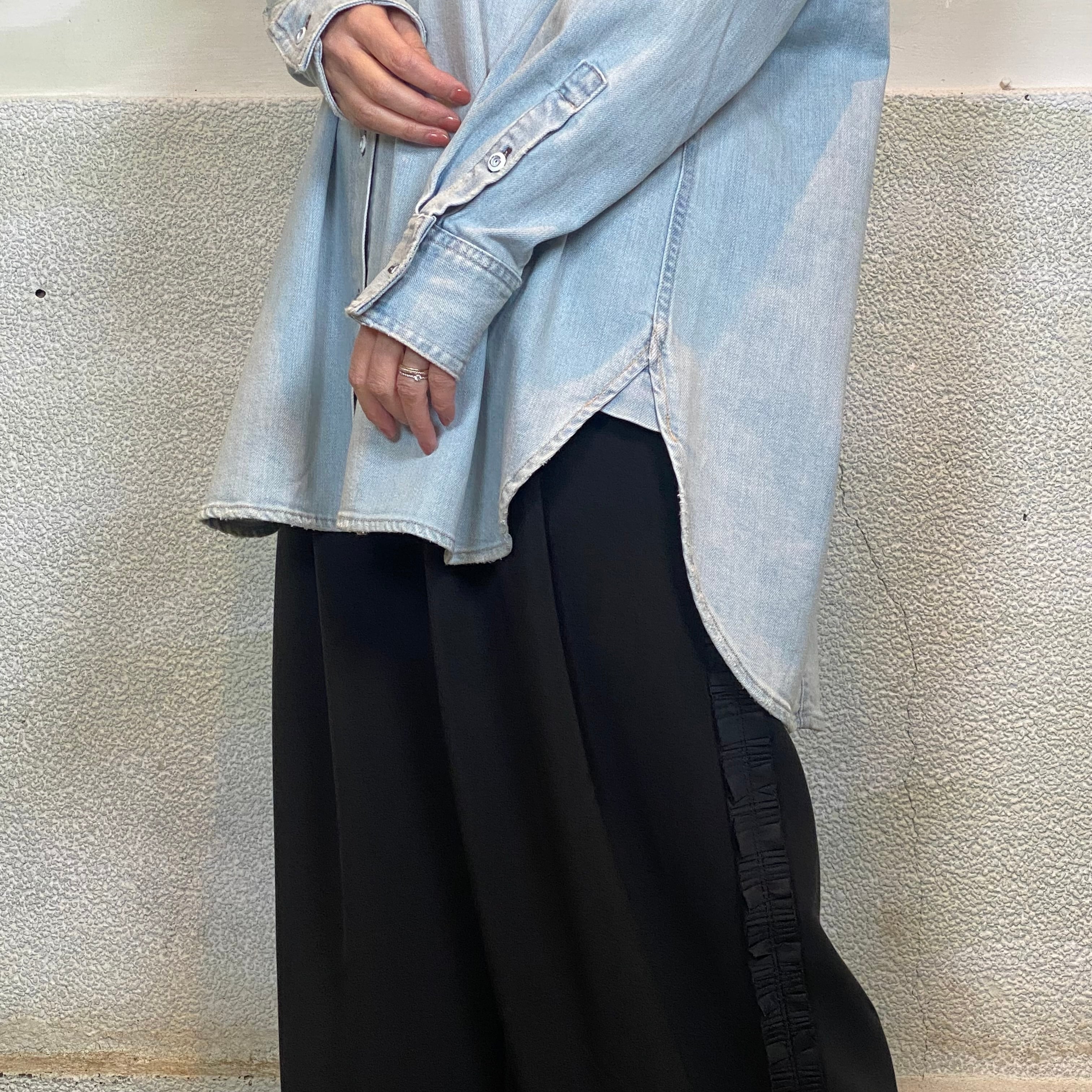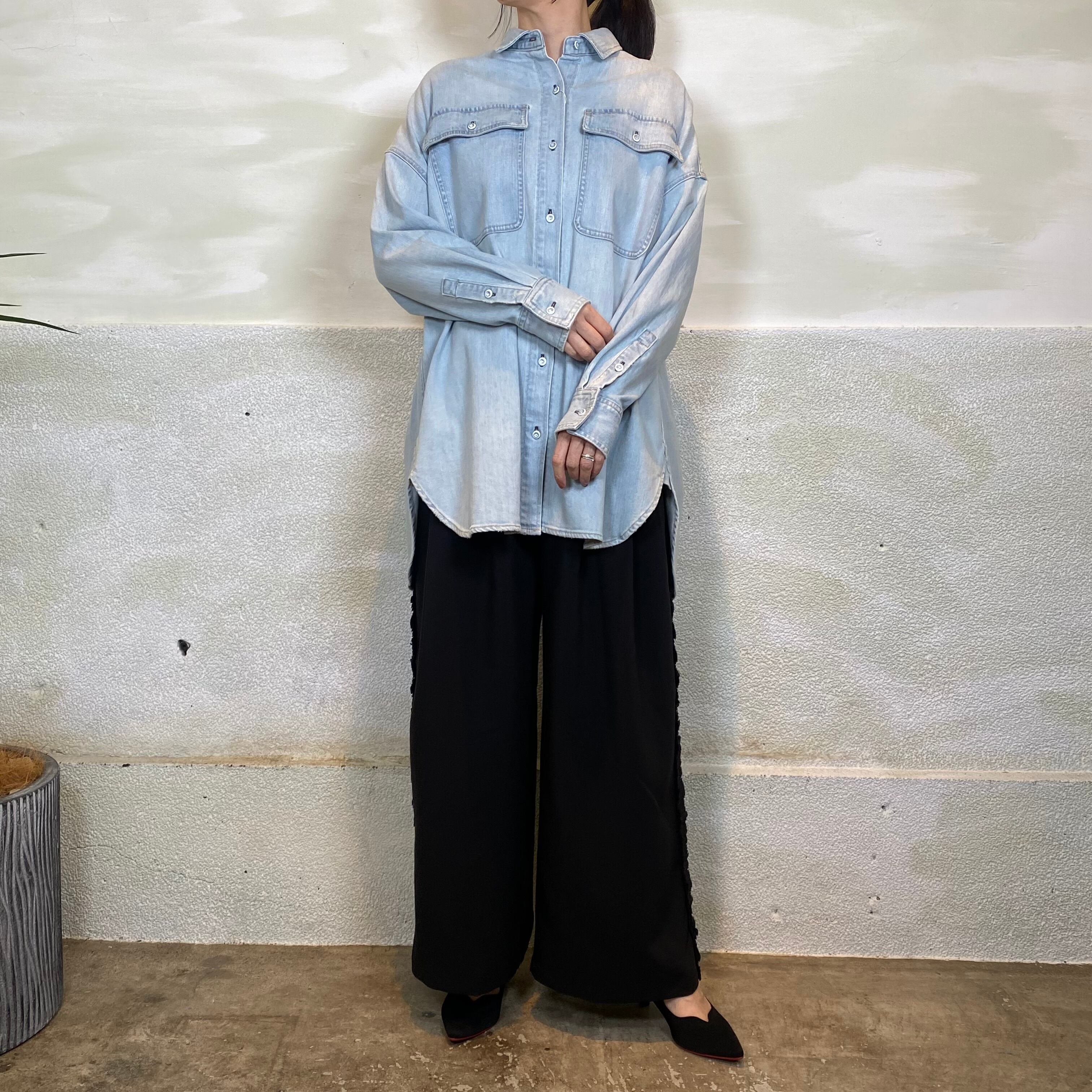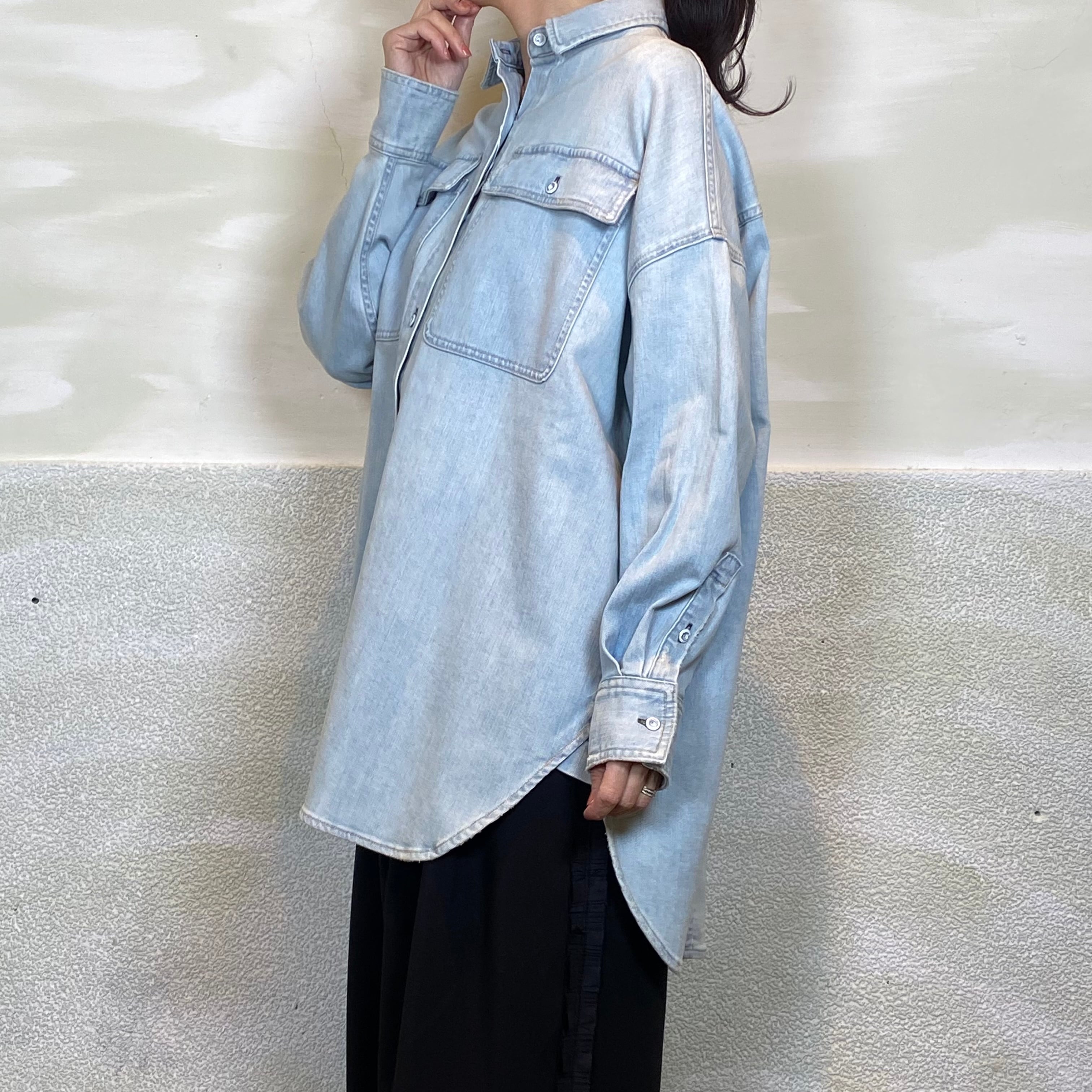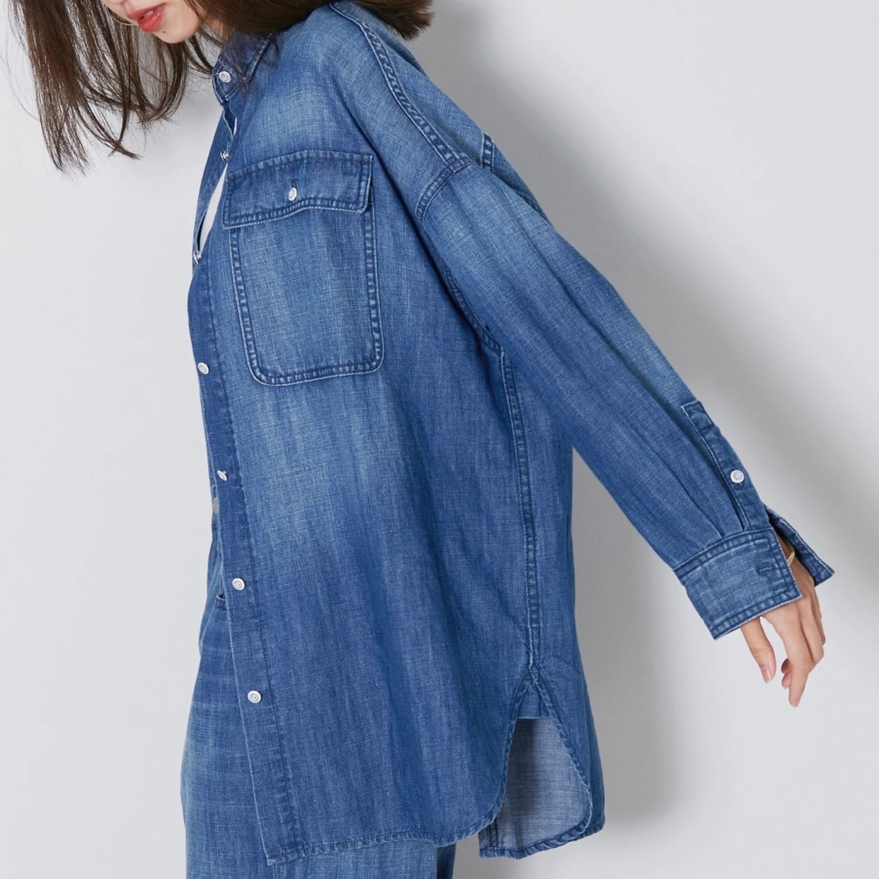 1枚でも着用OK、また軽いアウターとしても着回しのきく便利アイテム。スタイリングはチュニックのような感覚で裾をアウトにしてボトムを合わせるもよし、前裾をボトムにタックインして着用するもよし、フロントを全開して羽織として着用してもよし、様々な着こなしが可能。コットンリネン素材のライトオンスの生地を使用しているため、風通しが良いので真夏もべたつかず快適に着用いただけます。