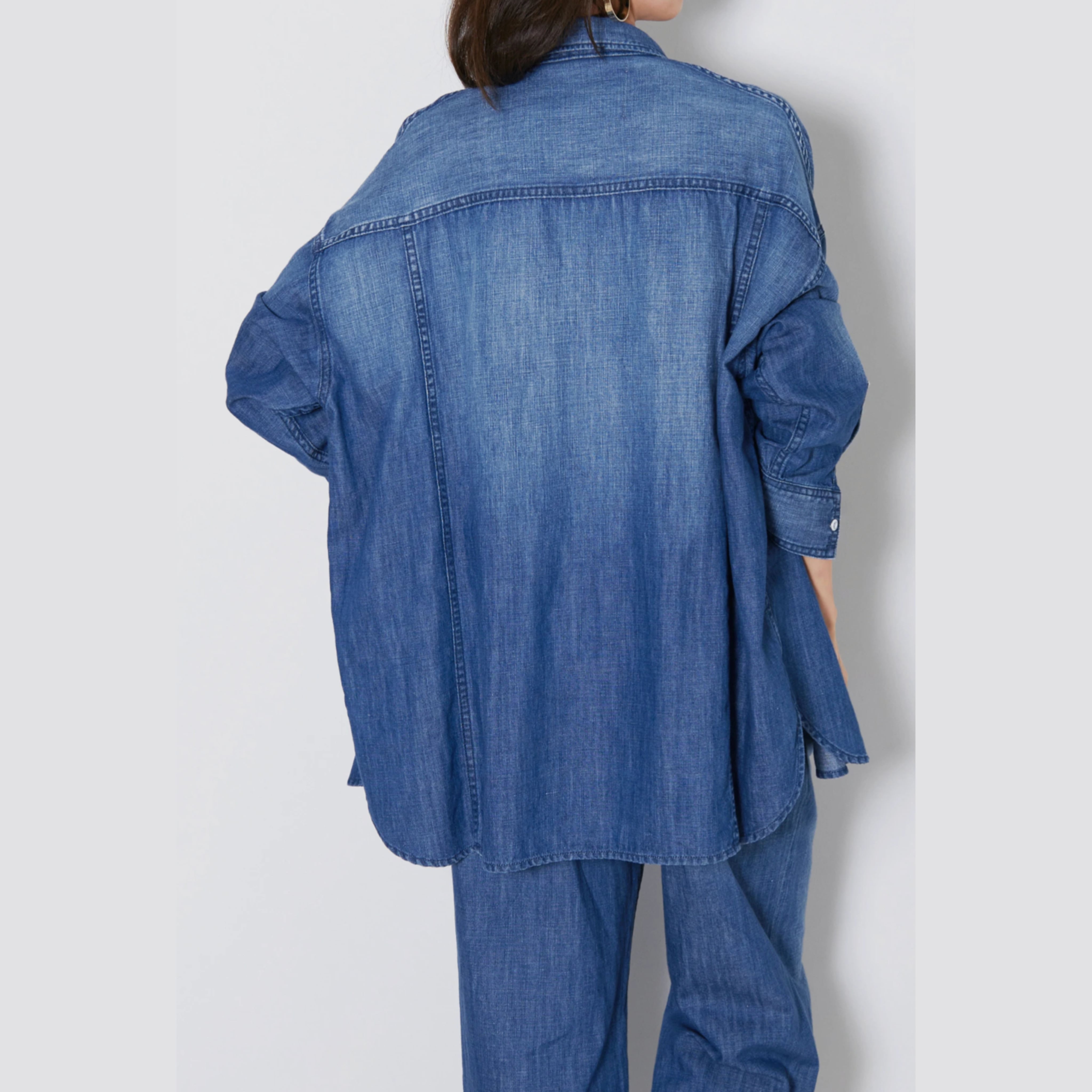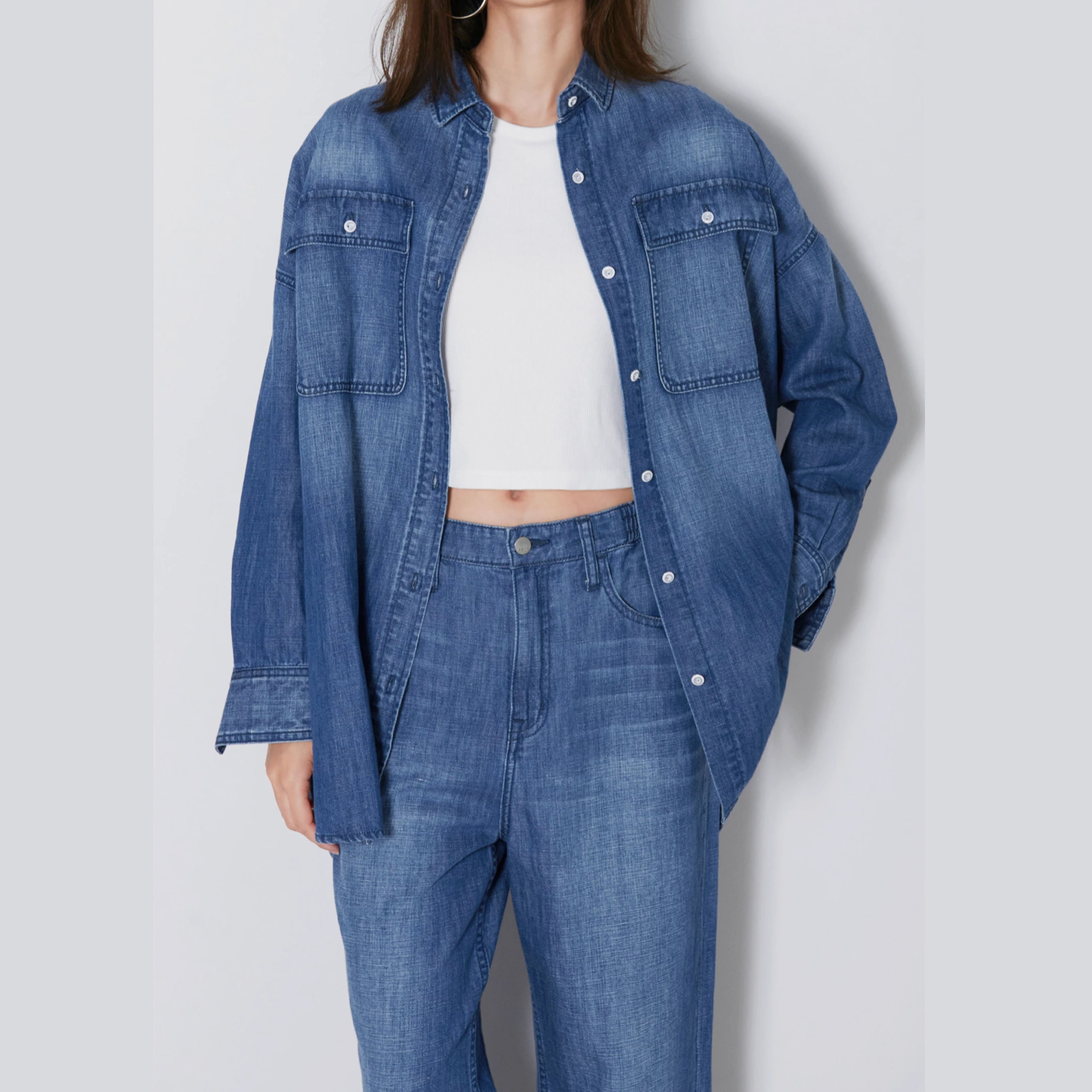 Healthy denimの体を包み込まれるようなサイズ感がデザインポイントになっているスーパービッグ・シャツ「Breezy Almond(ブリージー アーモンド)」