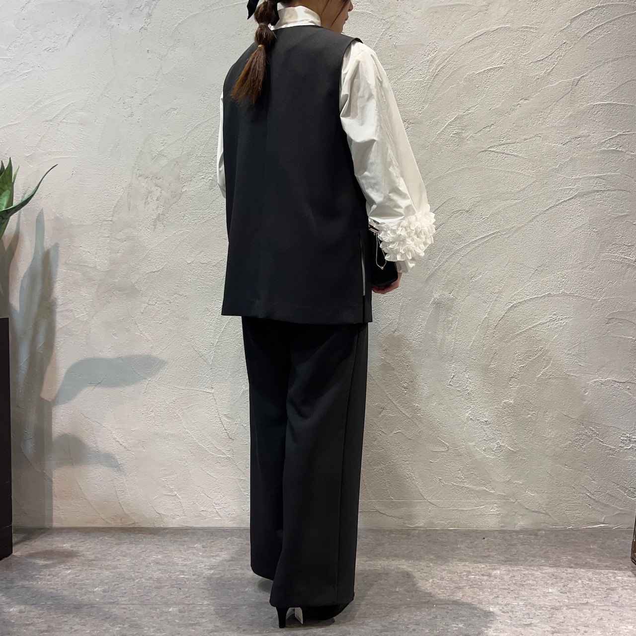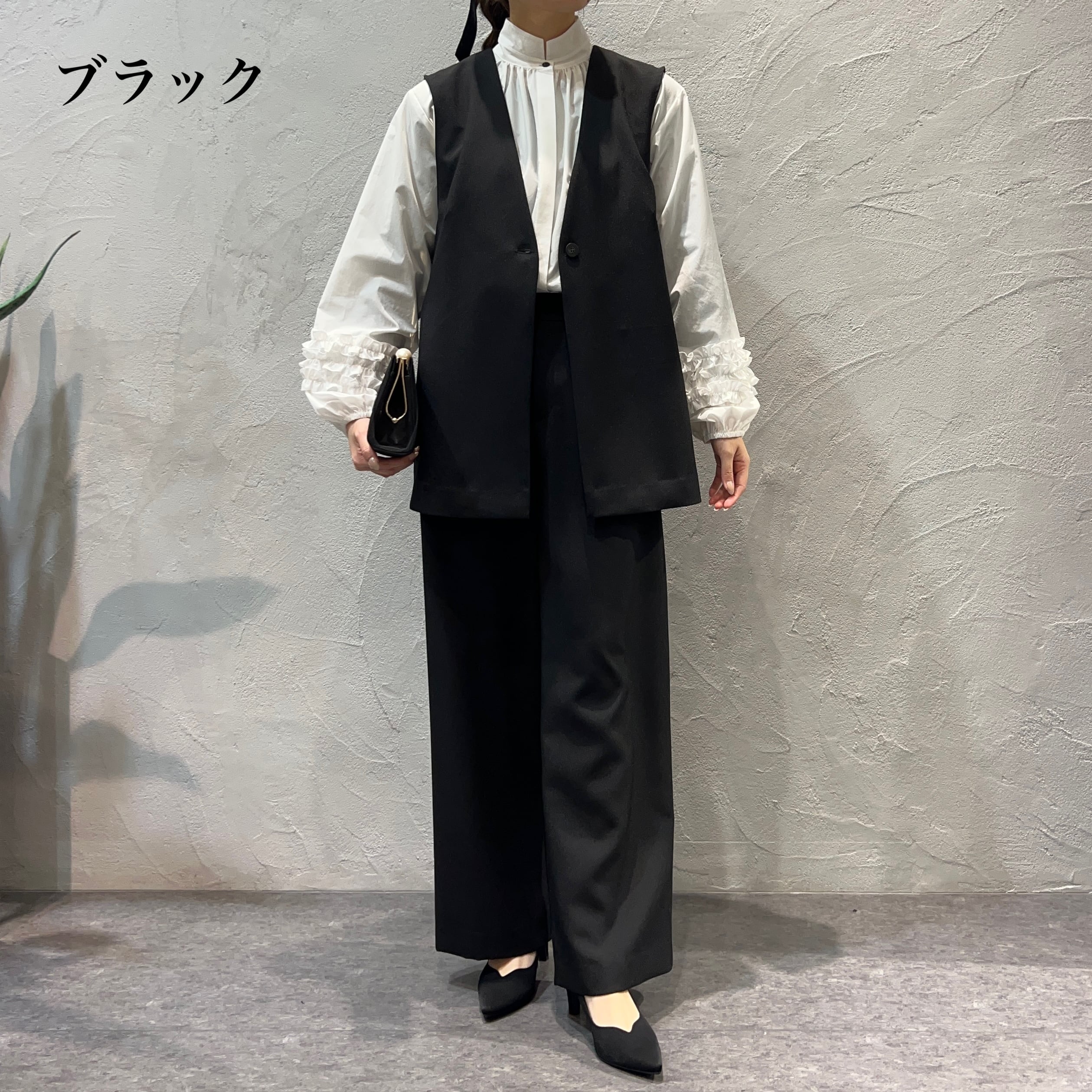 ジレもパンツの普段使いしやすいシンプルなものをセレクトしました。