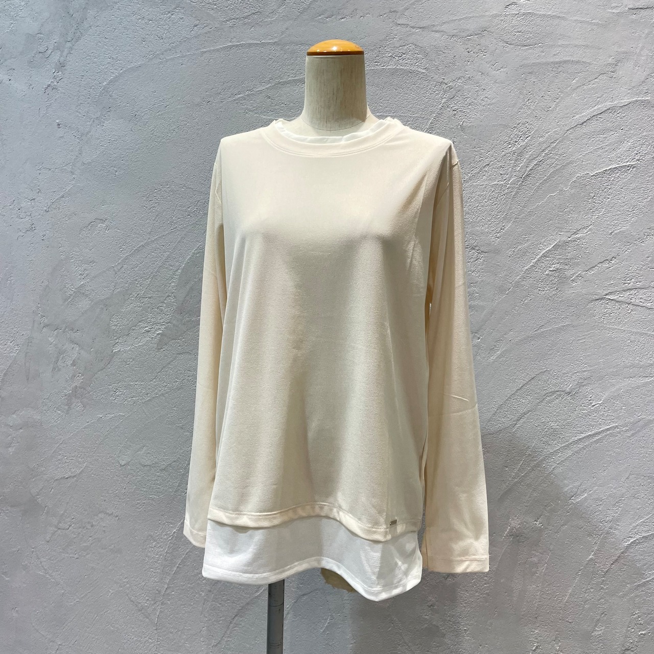 やわからい綿×ナイロンの生地を使用した配色デザインが鮮度あるカットソー。