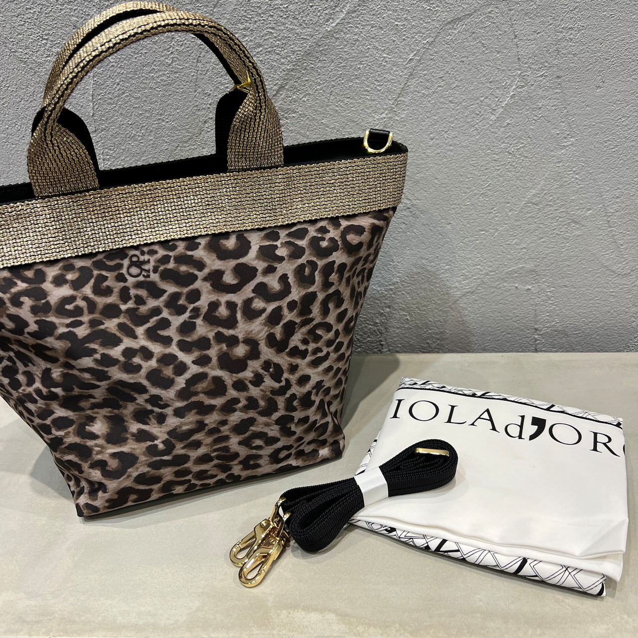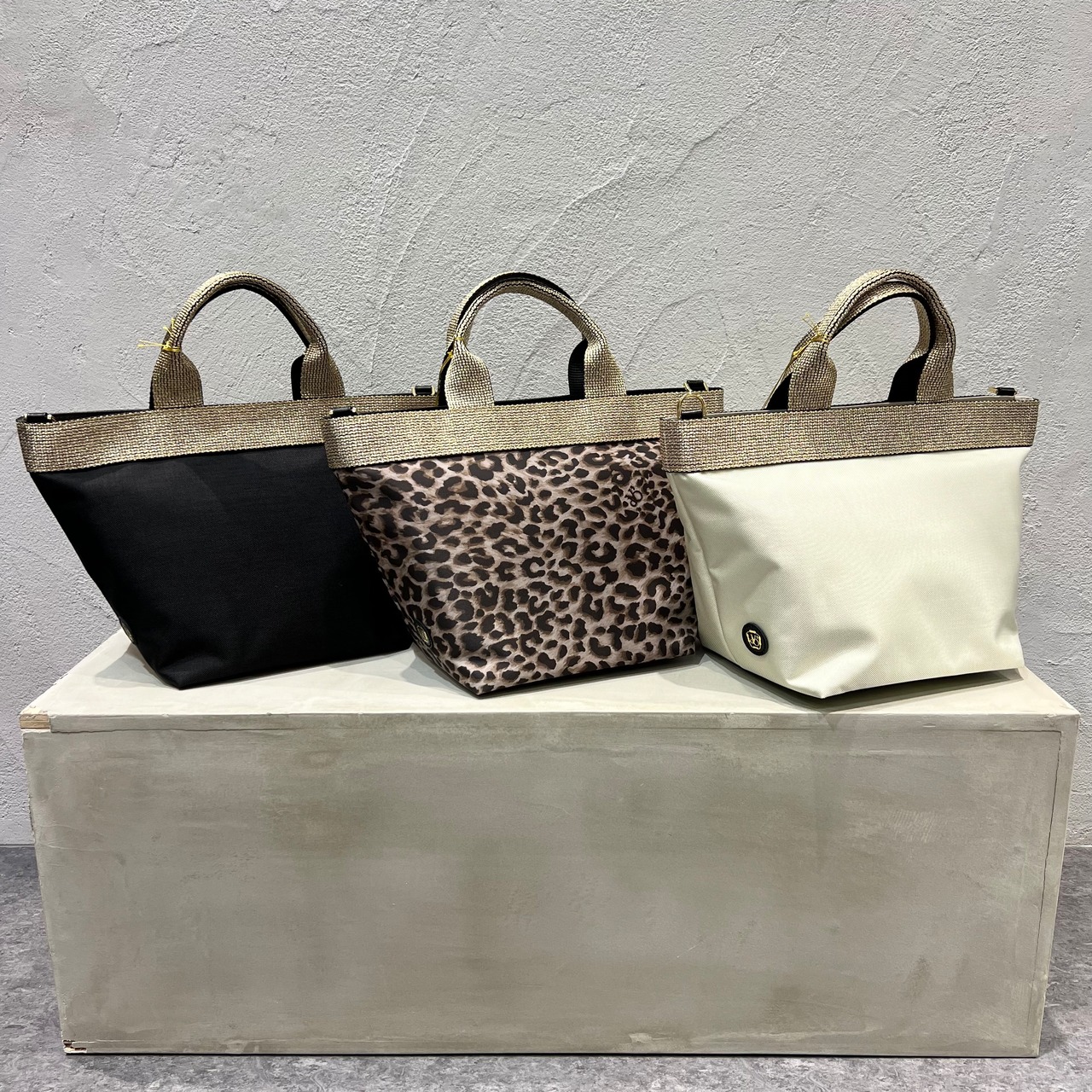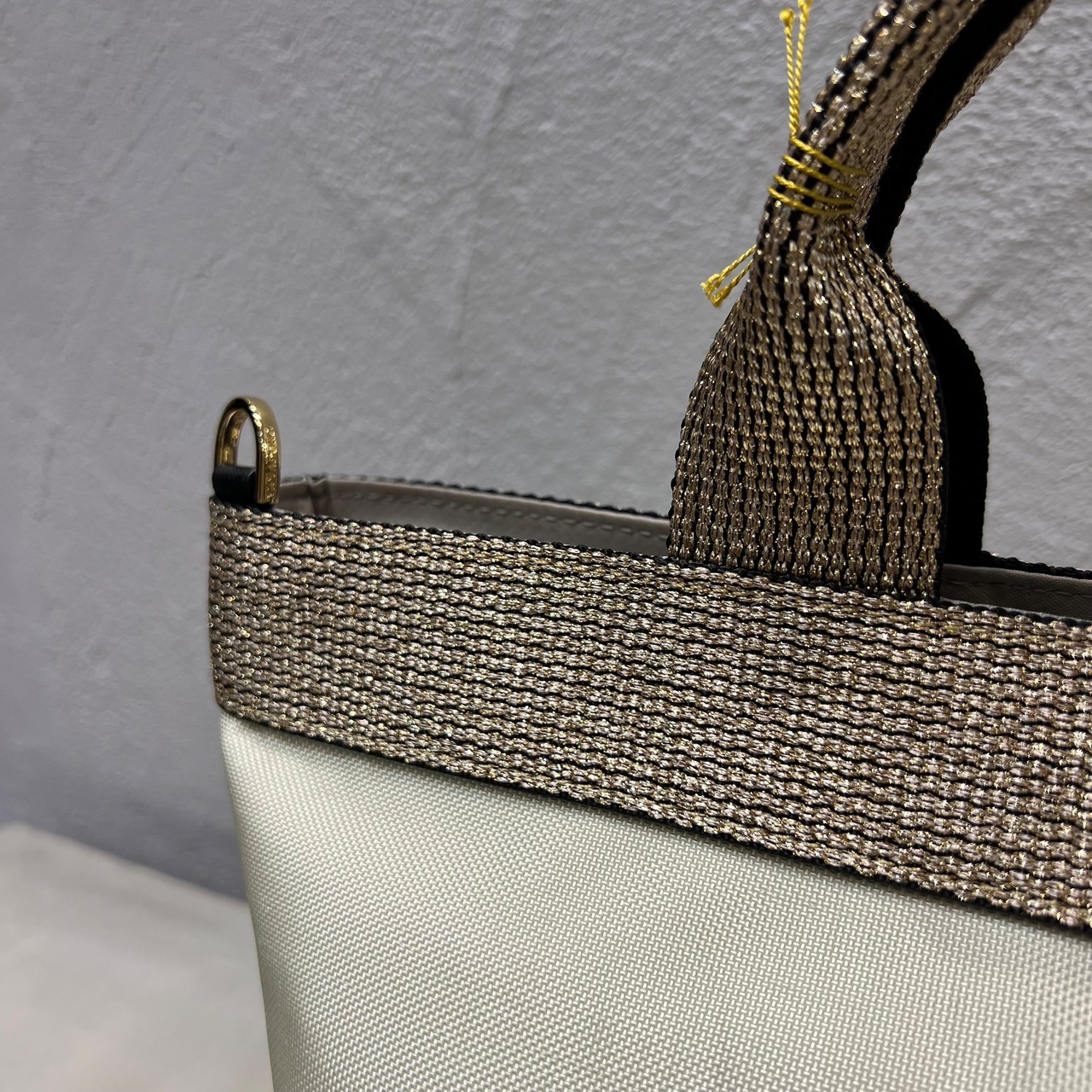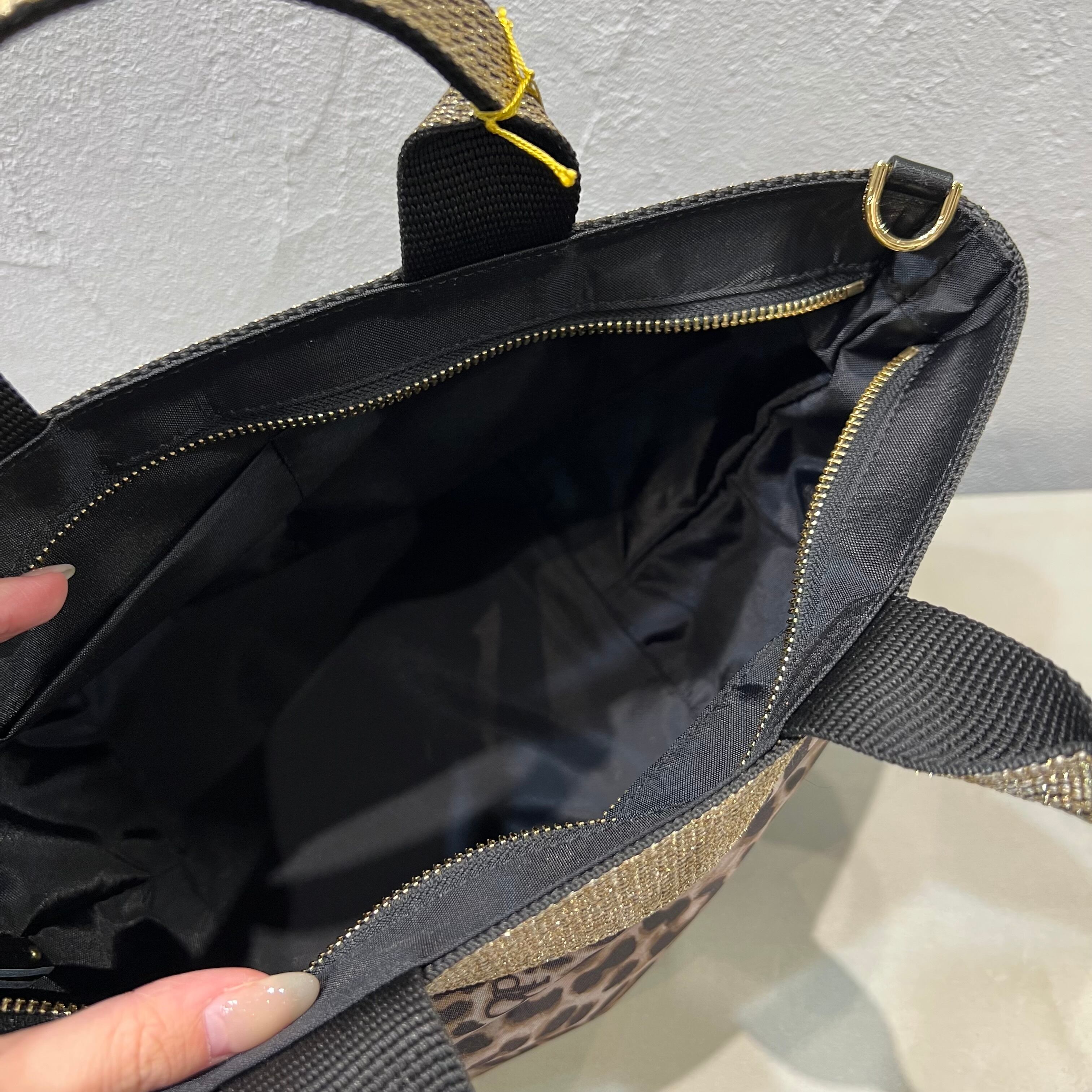 ムラ感と凹凸のあるナイロン生地は丈夫で上品なカジュアル感があり、ゴールドのテープハンドルが女性らしい雰囲気です。