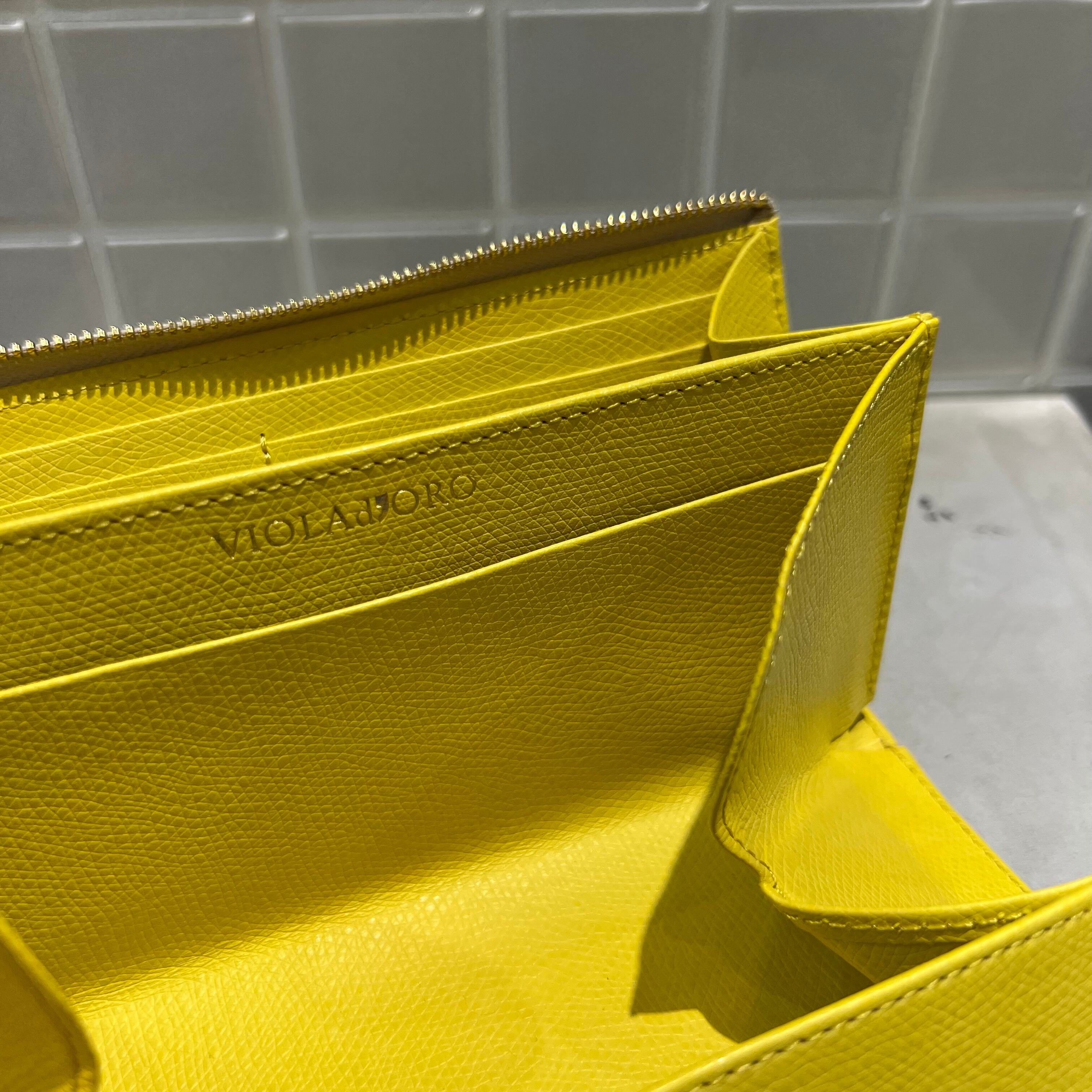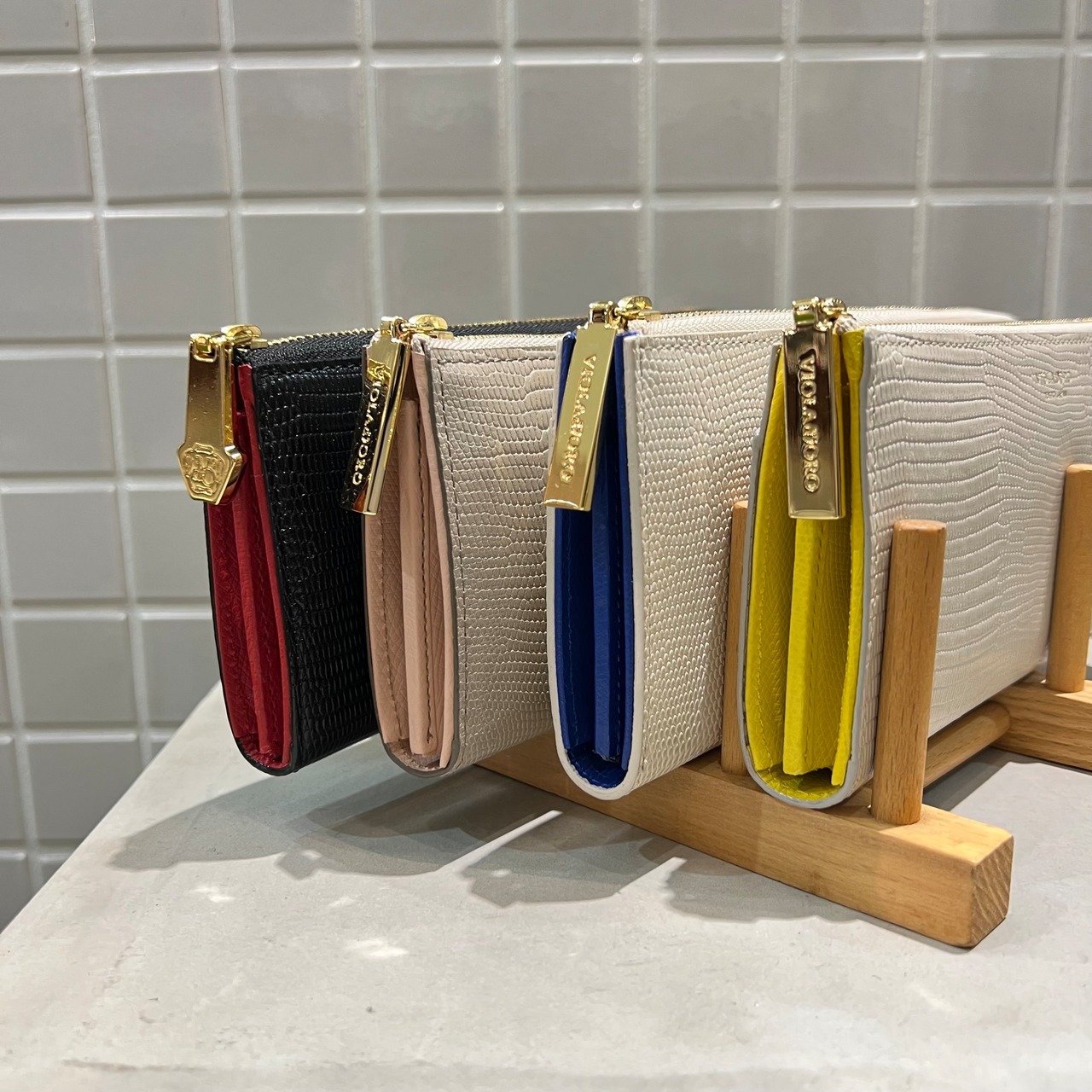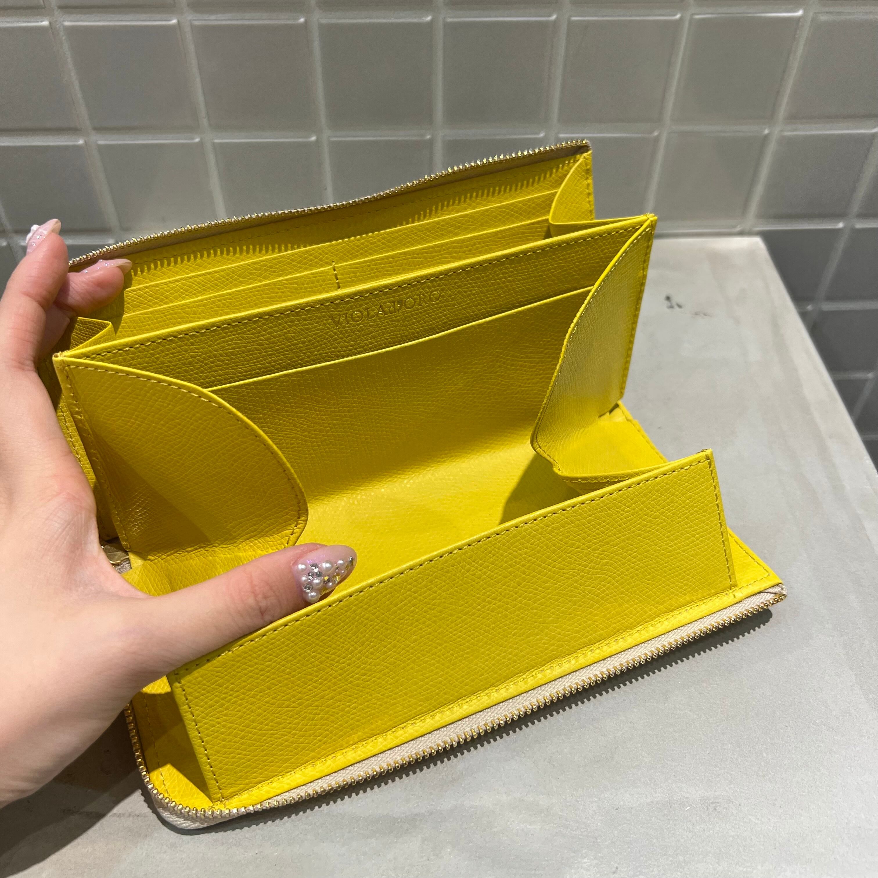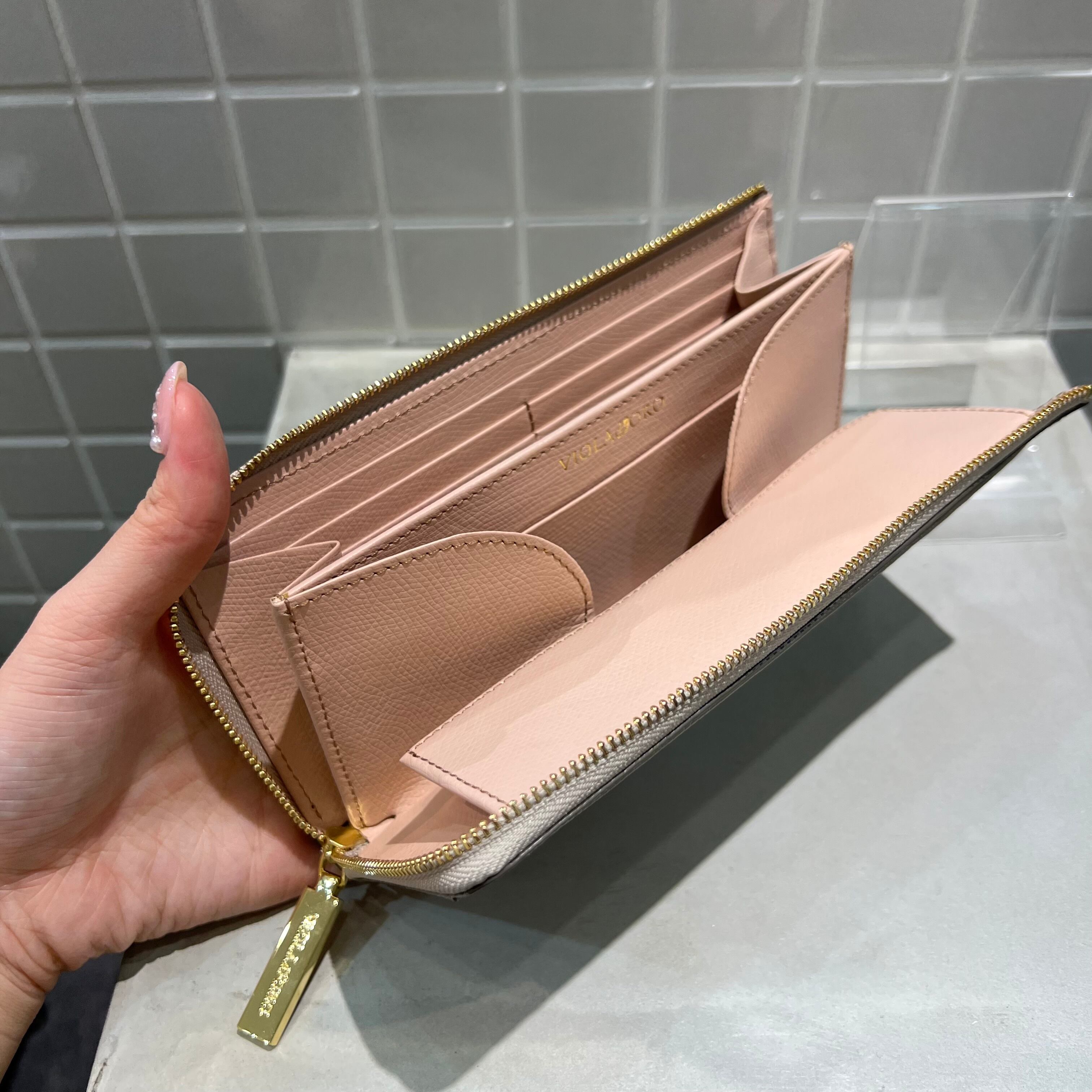 インナーカラーは表面と色を変えている為、開けた時にもオシャレな細部まで上品な作りです。