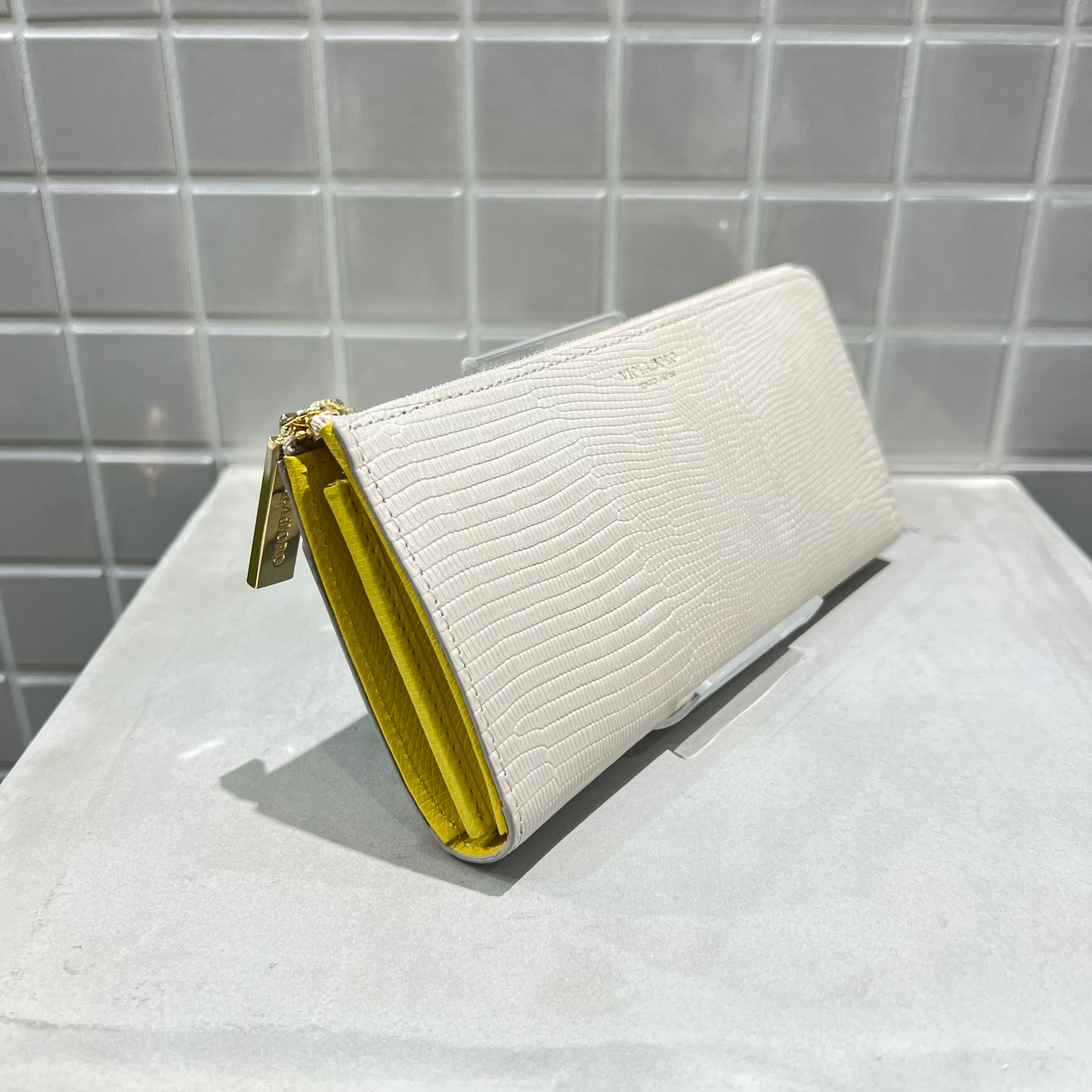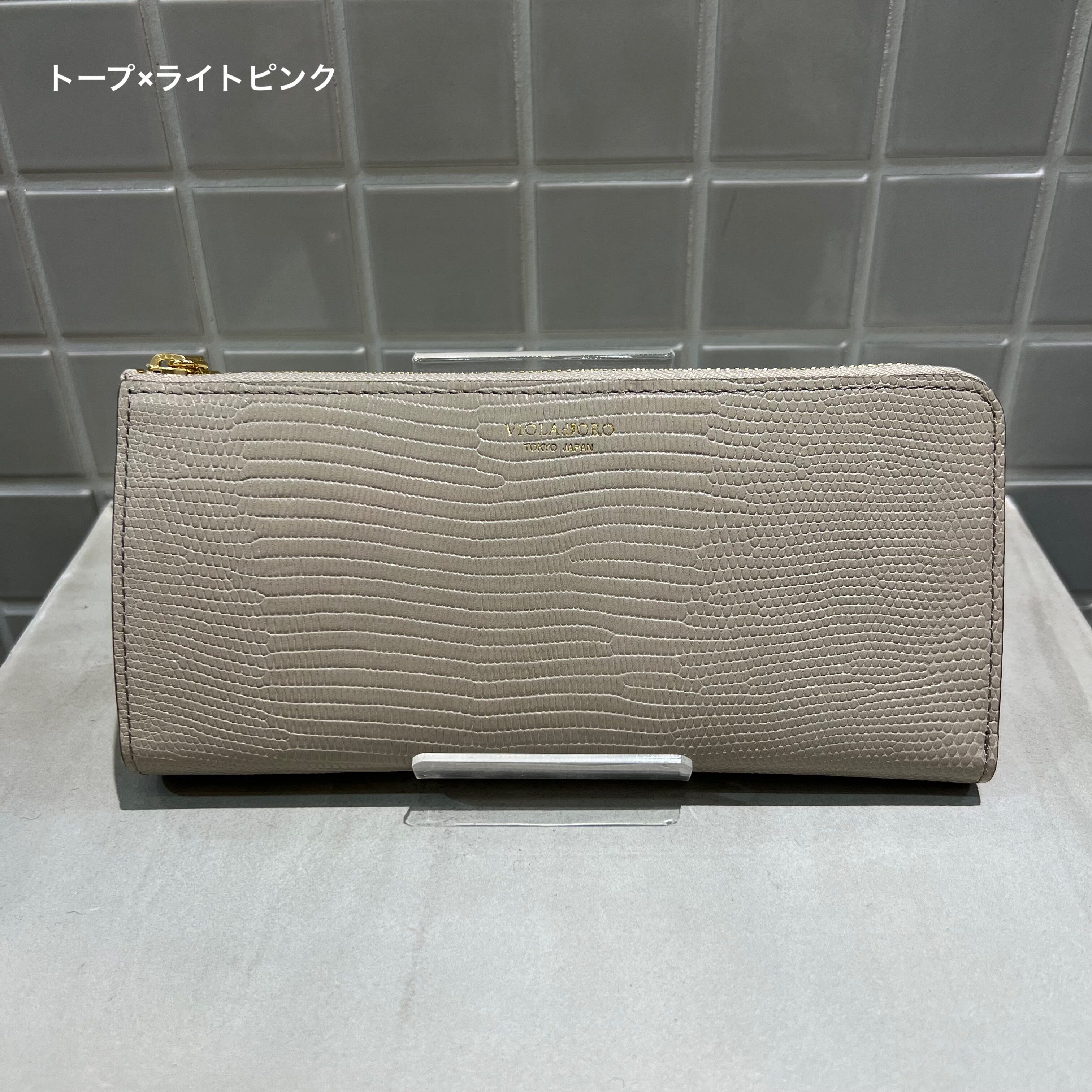 表面はリザード型押しを施した牛革を使用し、ラグジュアリーな仕上げに。